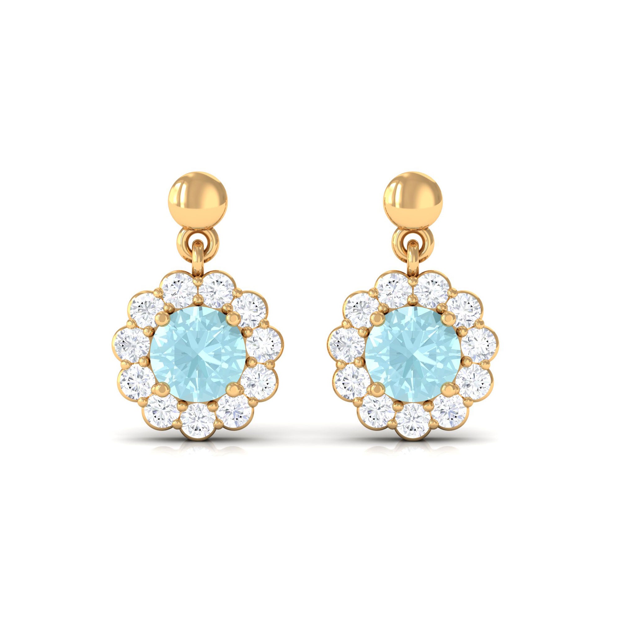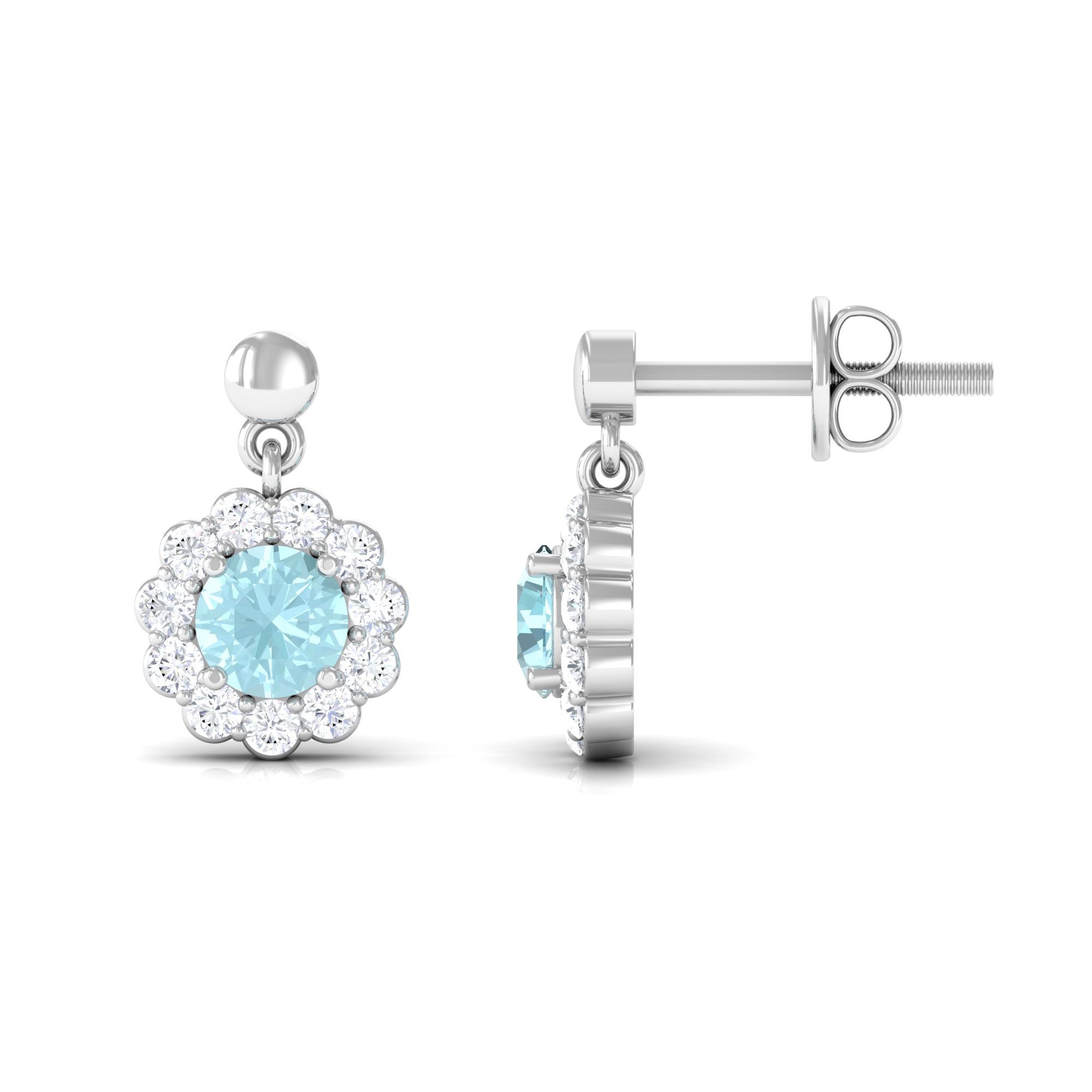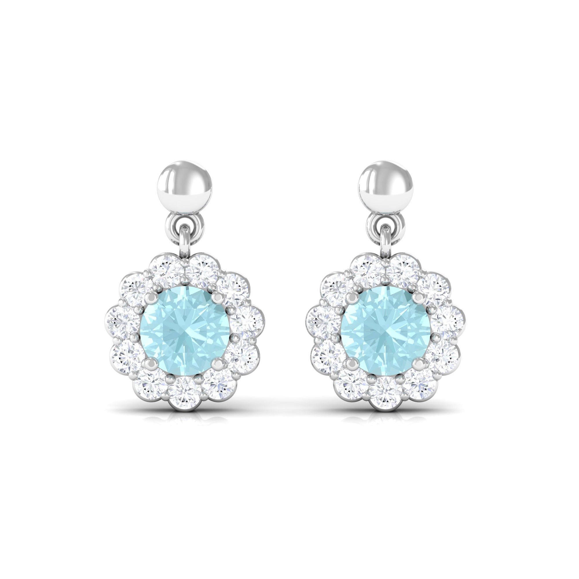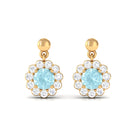 1.25 CT Sky Blue Topaz and Diamond Floral Halo Drop Earrings