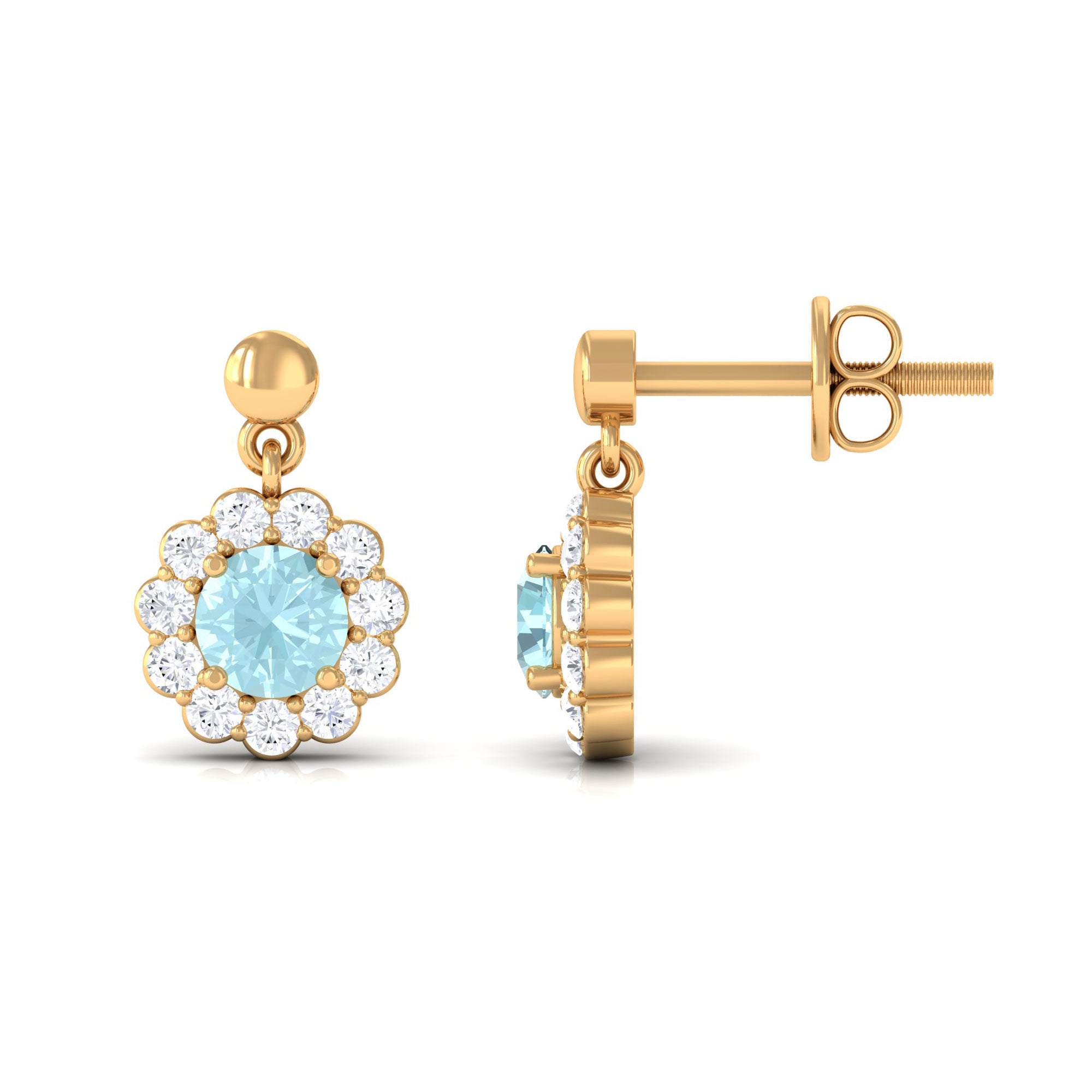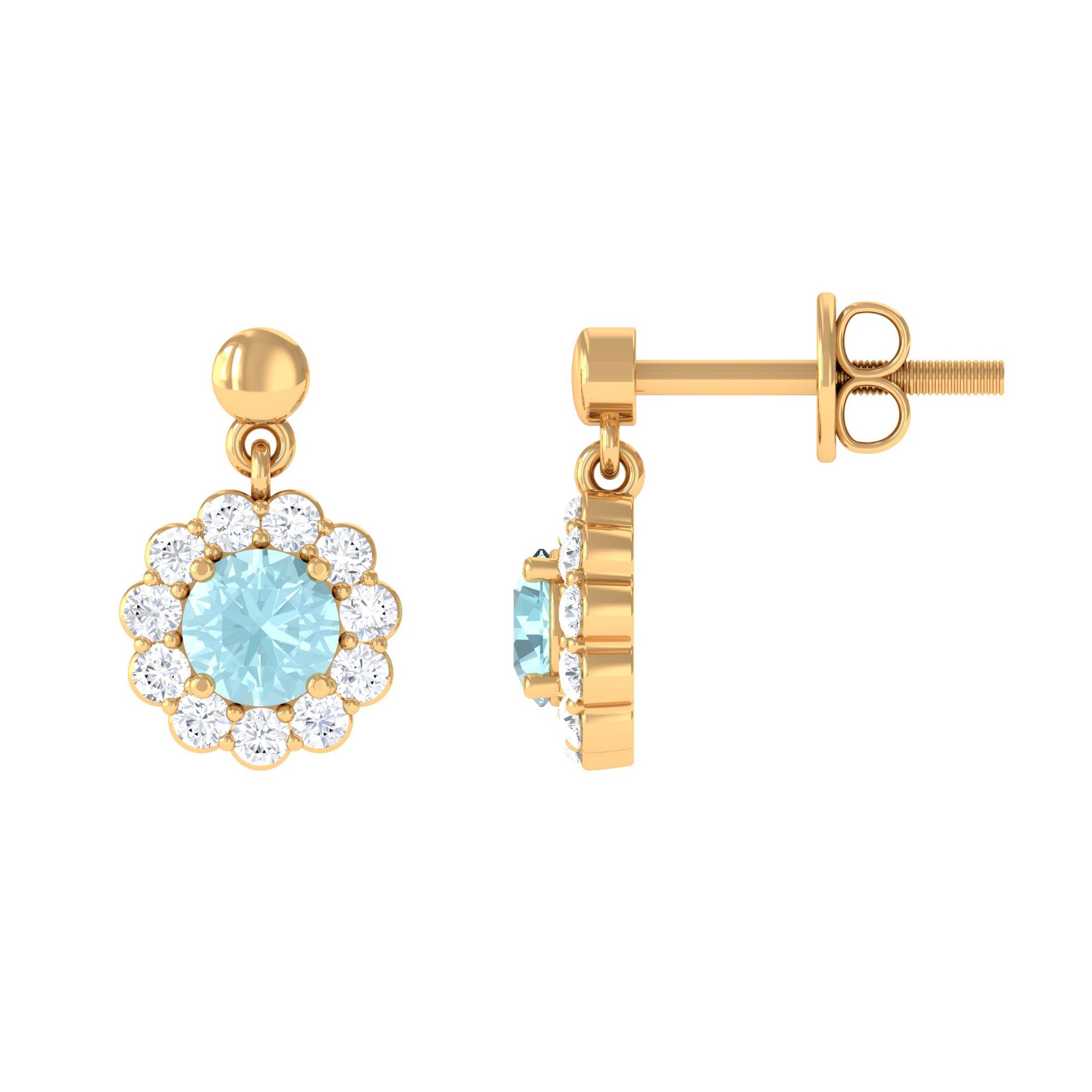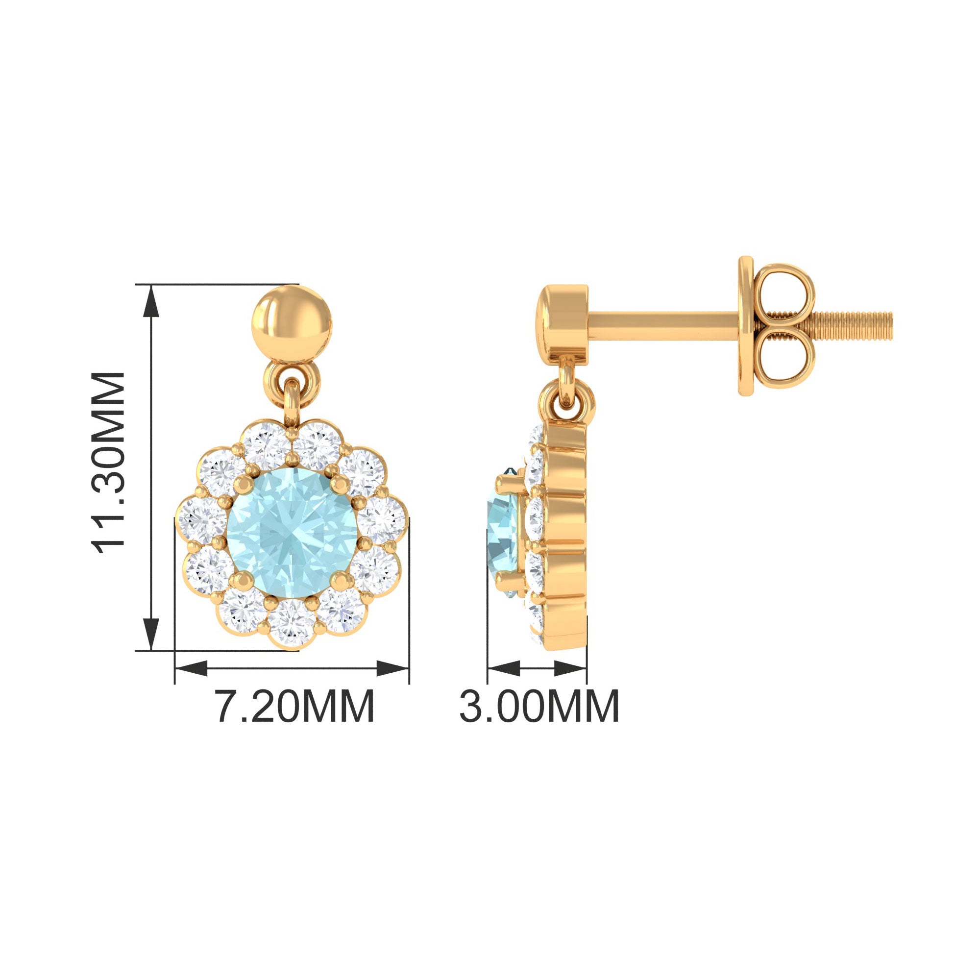 1.25 CT Sky Blue Topaz and Diamond Floral Halo Drop Earrings