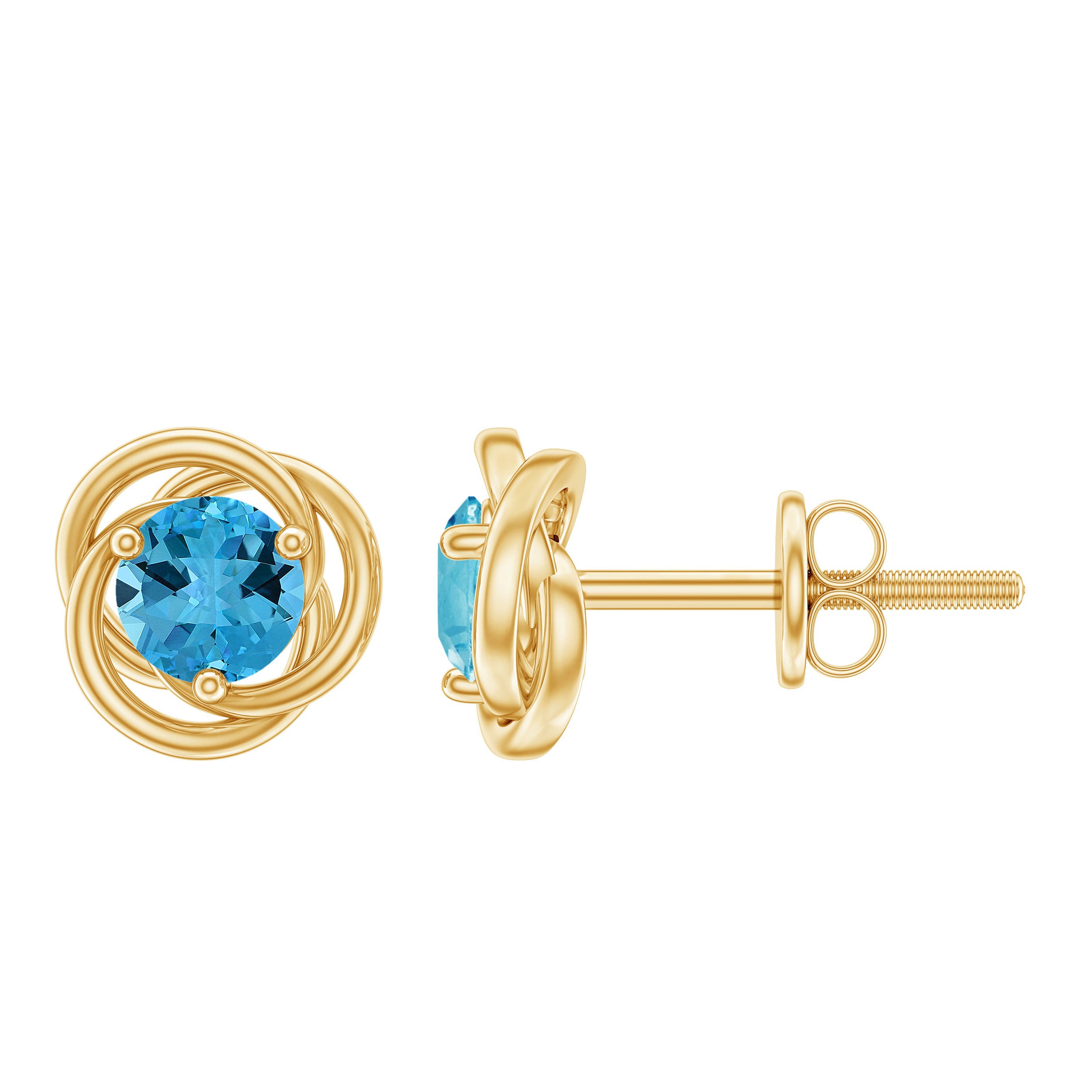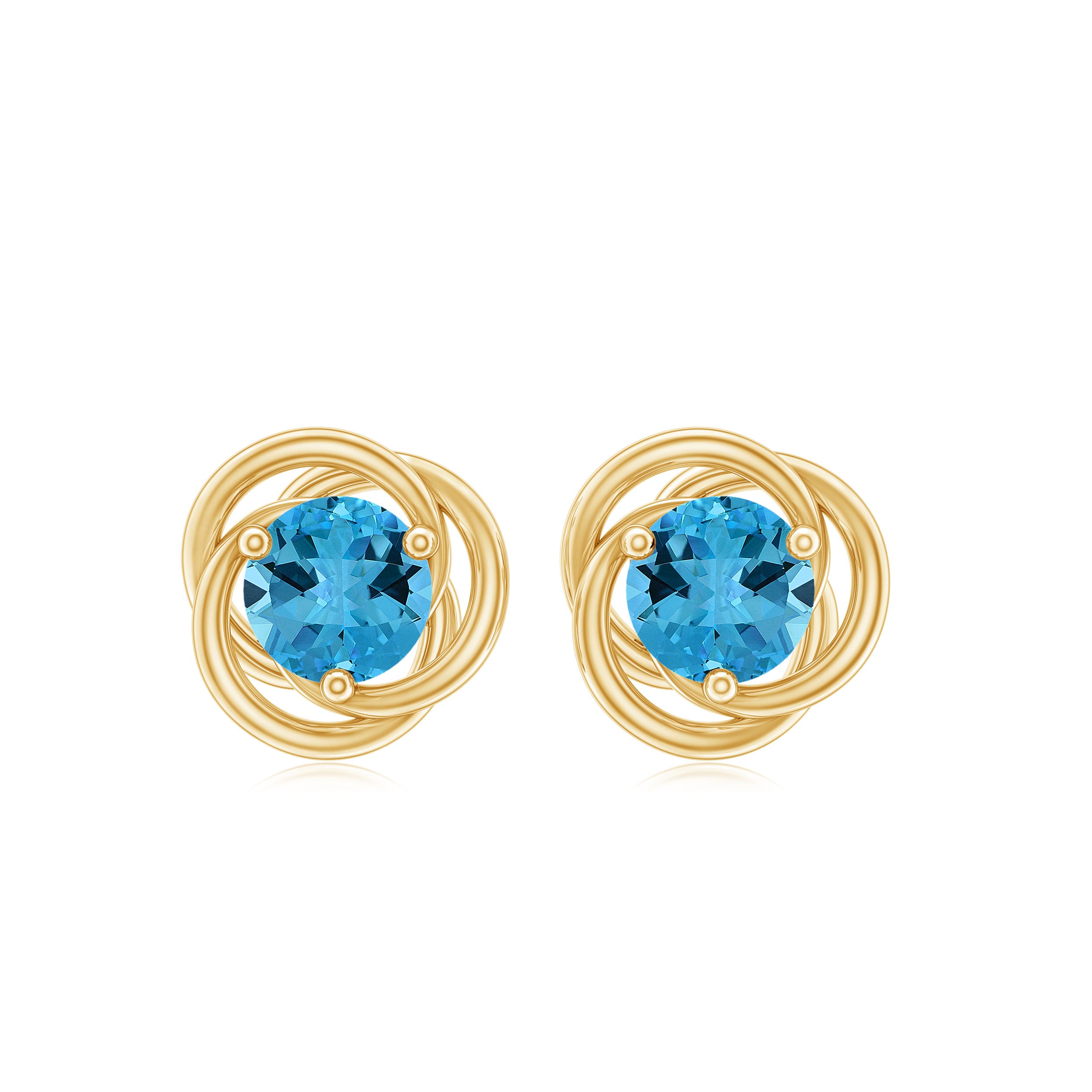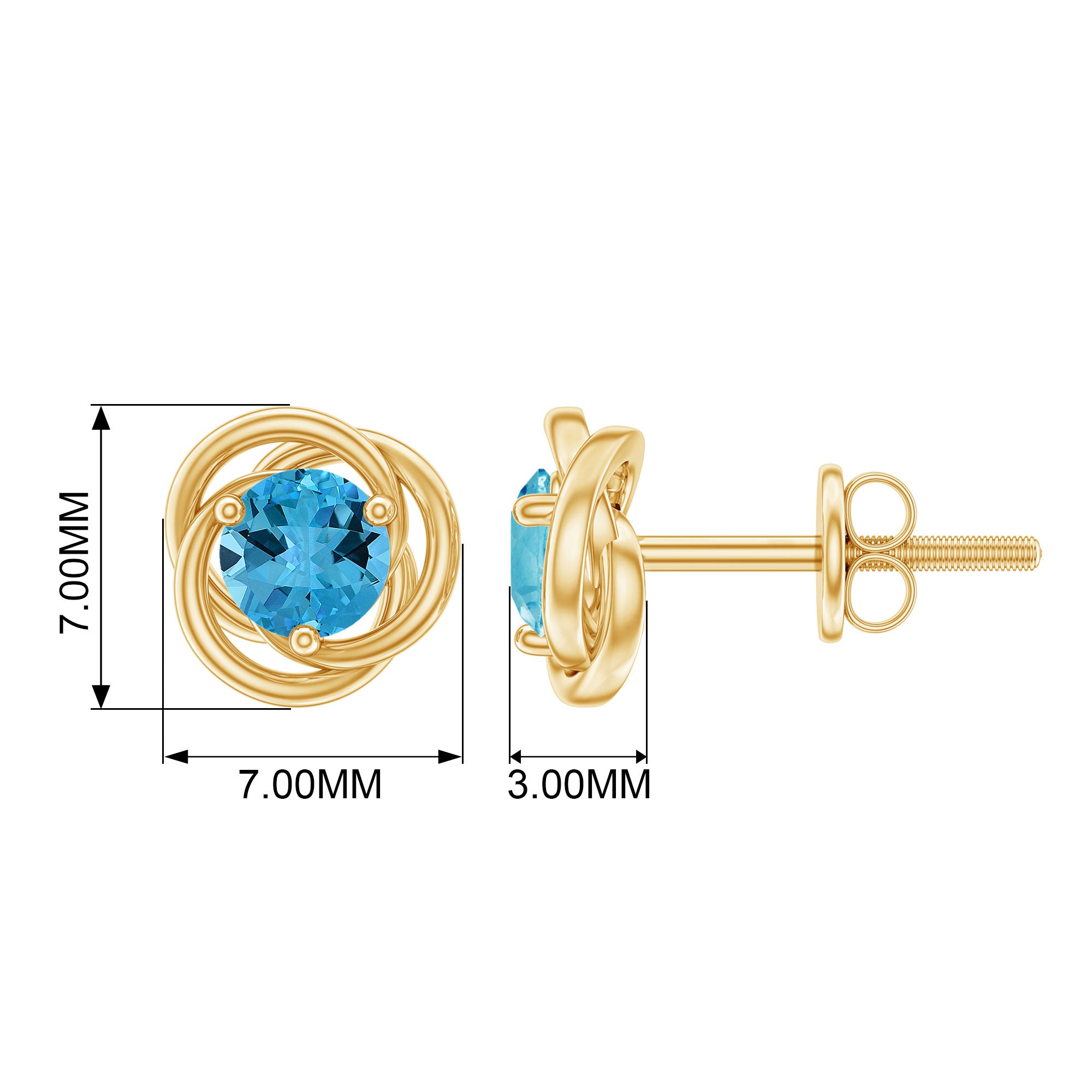 These Swirl Stud Earrings would be the great gift to give to your love on this valentines day. These stunning Stud Earrings are adorned with Round Shape Swiss Blue Topaz Gemstone set as a Solitaire in Prong Setting and lovingly crafted in Solid Gold Metal