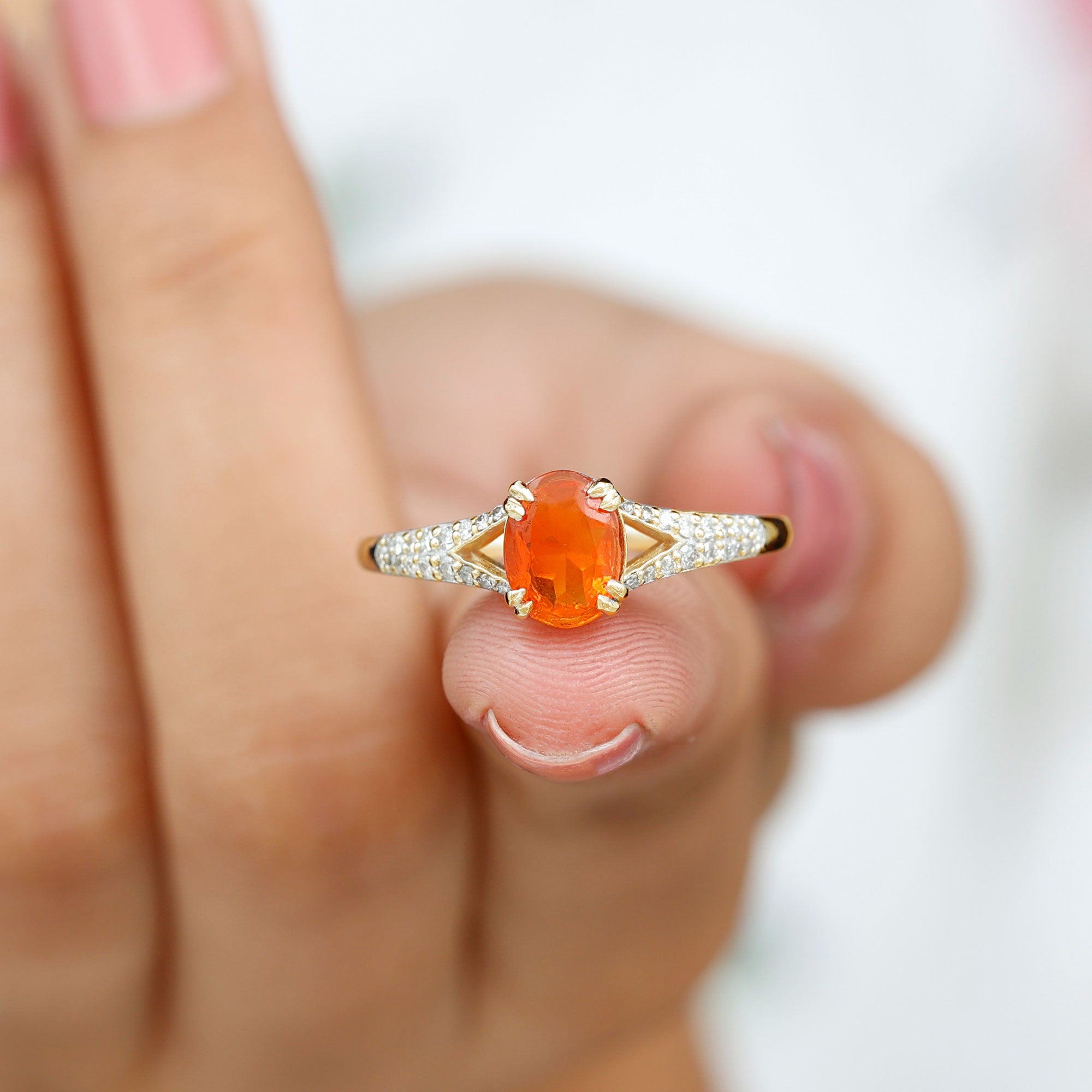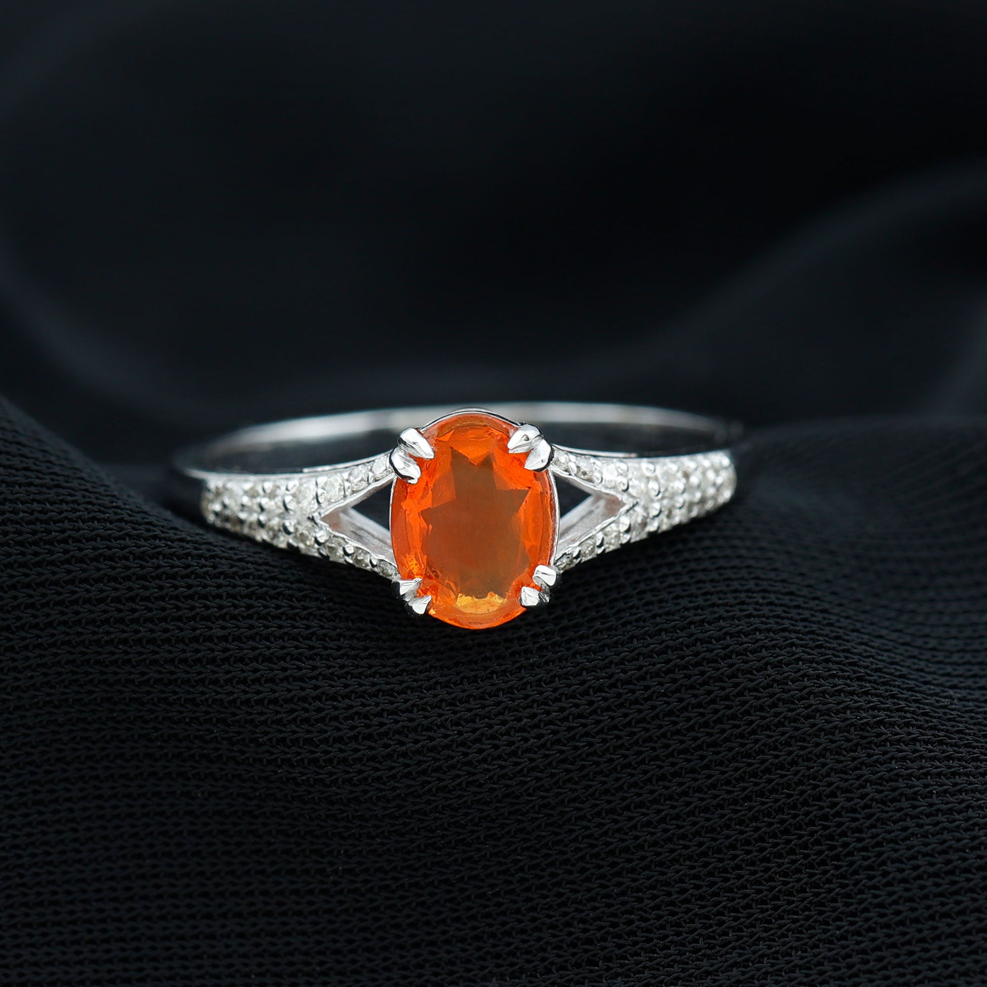 1.25 CT Split Shank Oval Fire Opal Solitaire Engagement Ring with Diamond