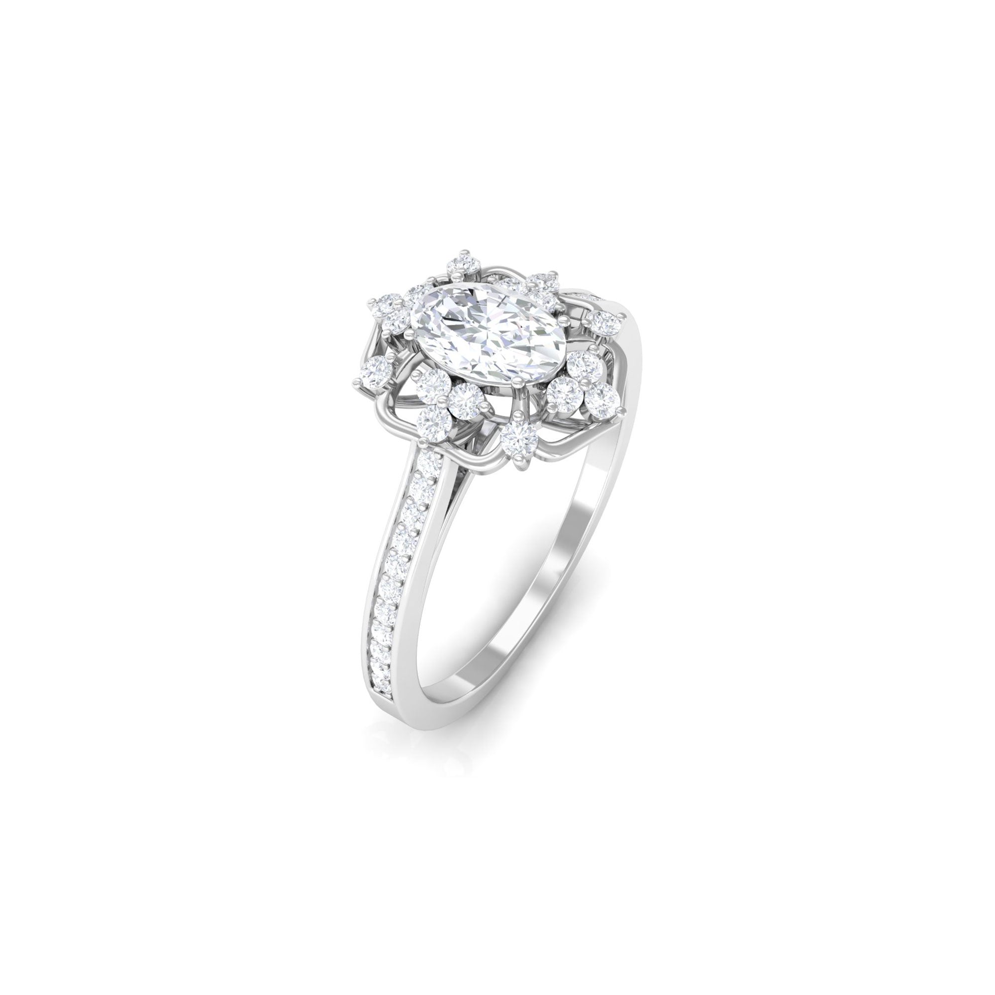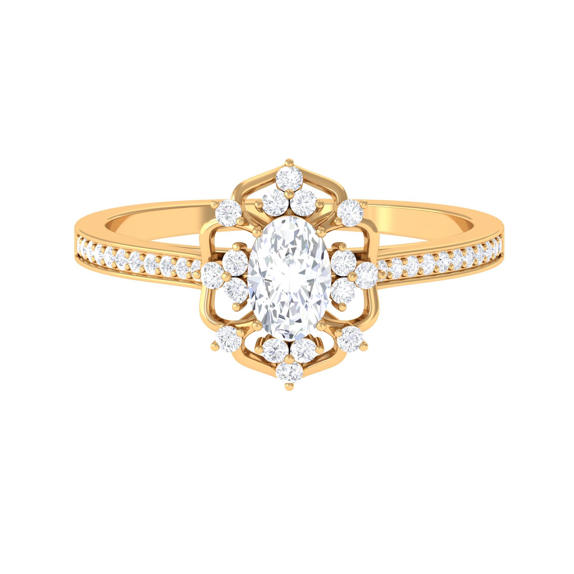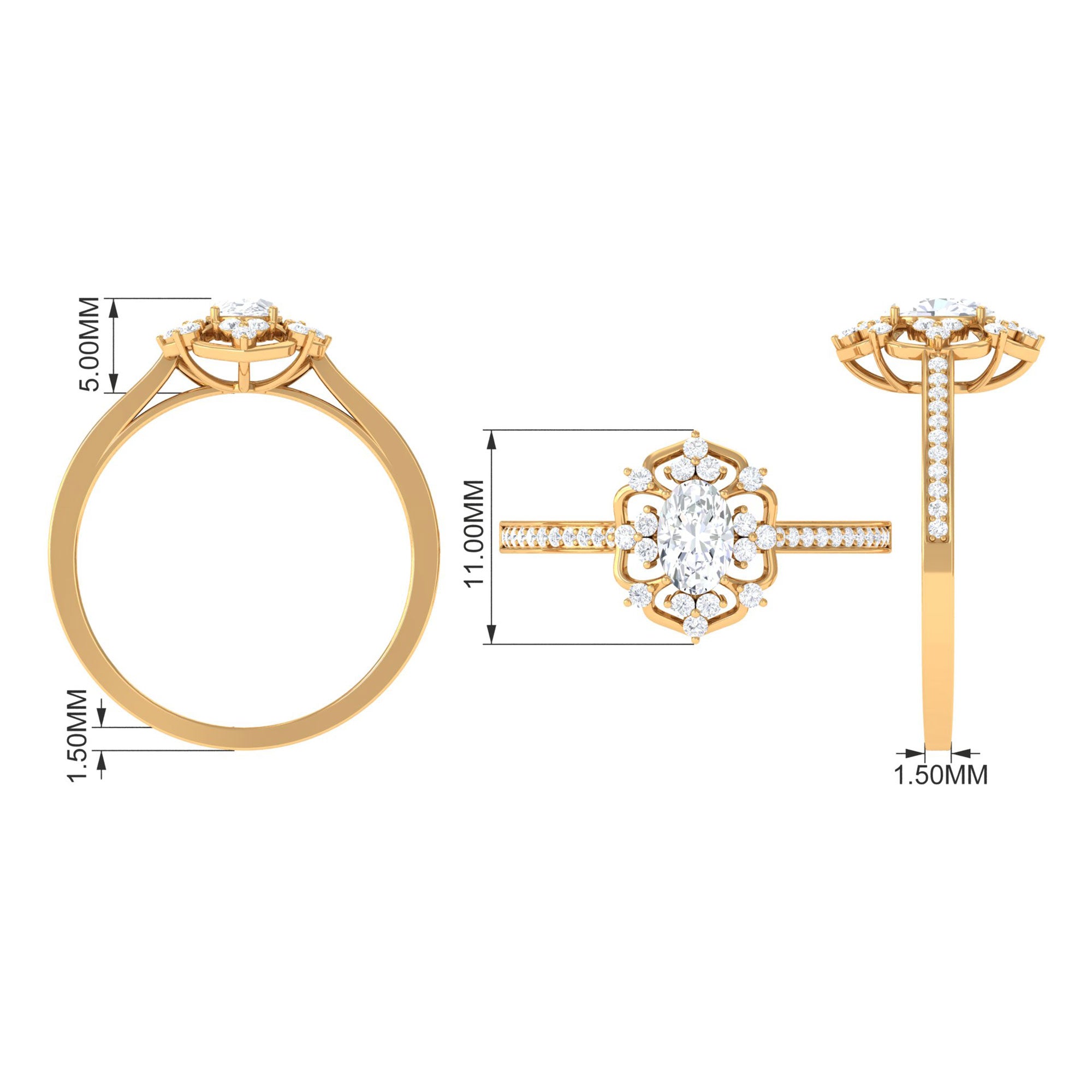 Make your special day unforgettable with this unique Vintage Engagement Ring. Featuring an Oval Cut Cubic Zirconia at the center, surrounded by Round Zirconia accents and more gemstones on the shank. Expertly crafted in gold for a luxurious look, this ring has a total weight of 1.25 Carats. Our gemstones are certified and undergo strict quality checks for your peace of mind.