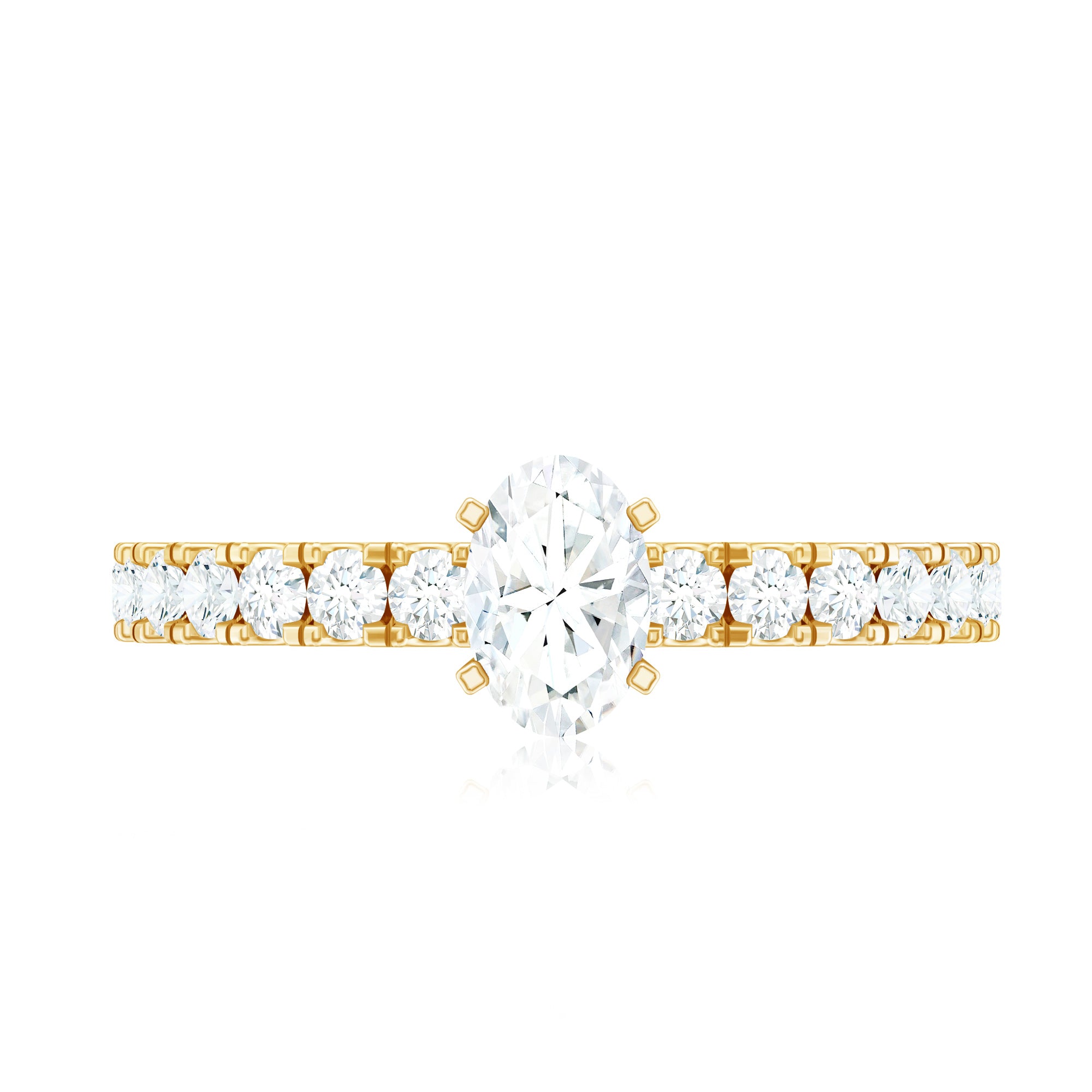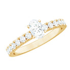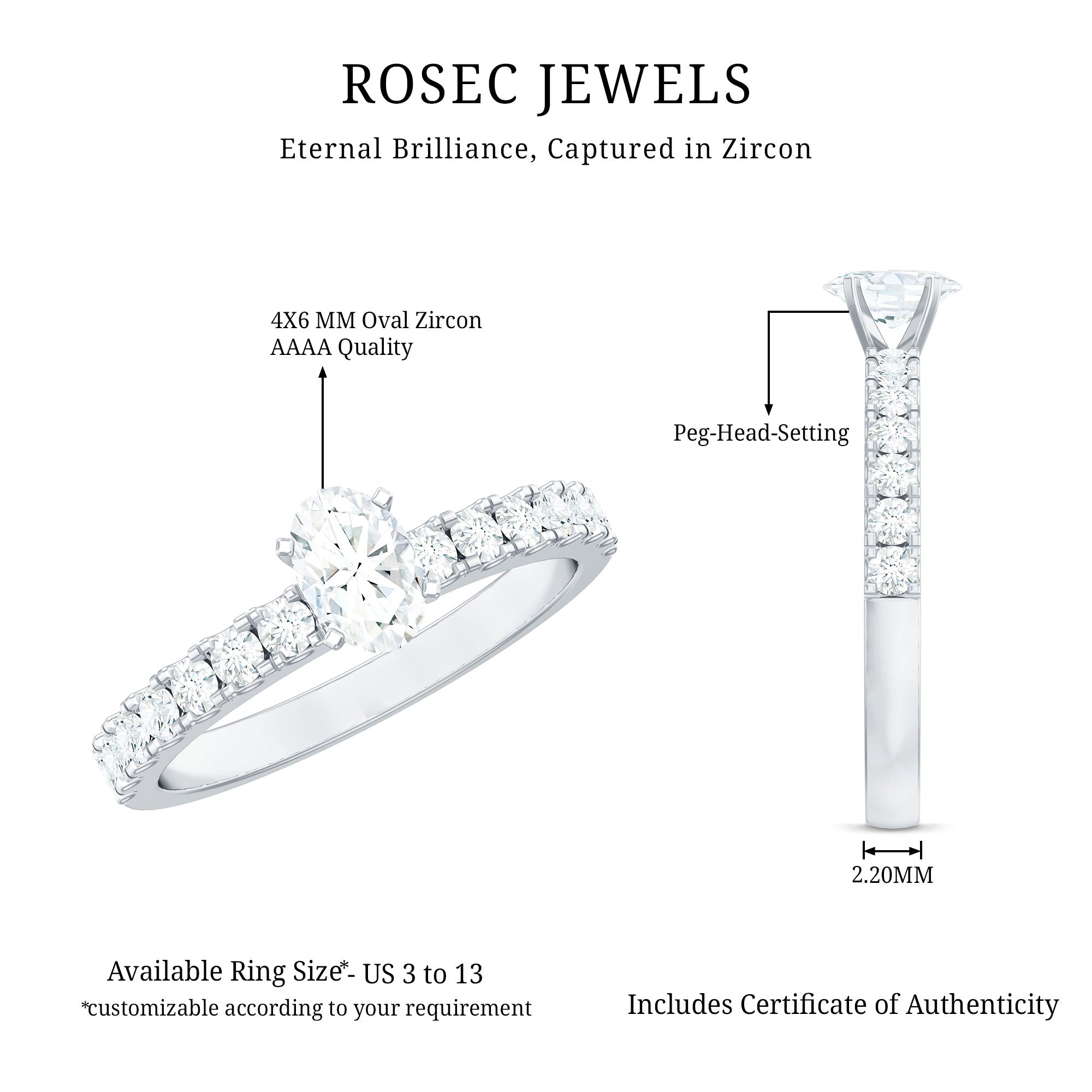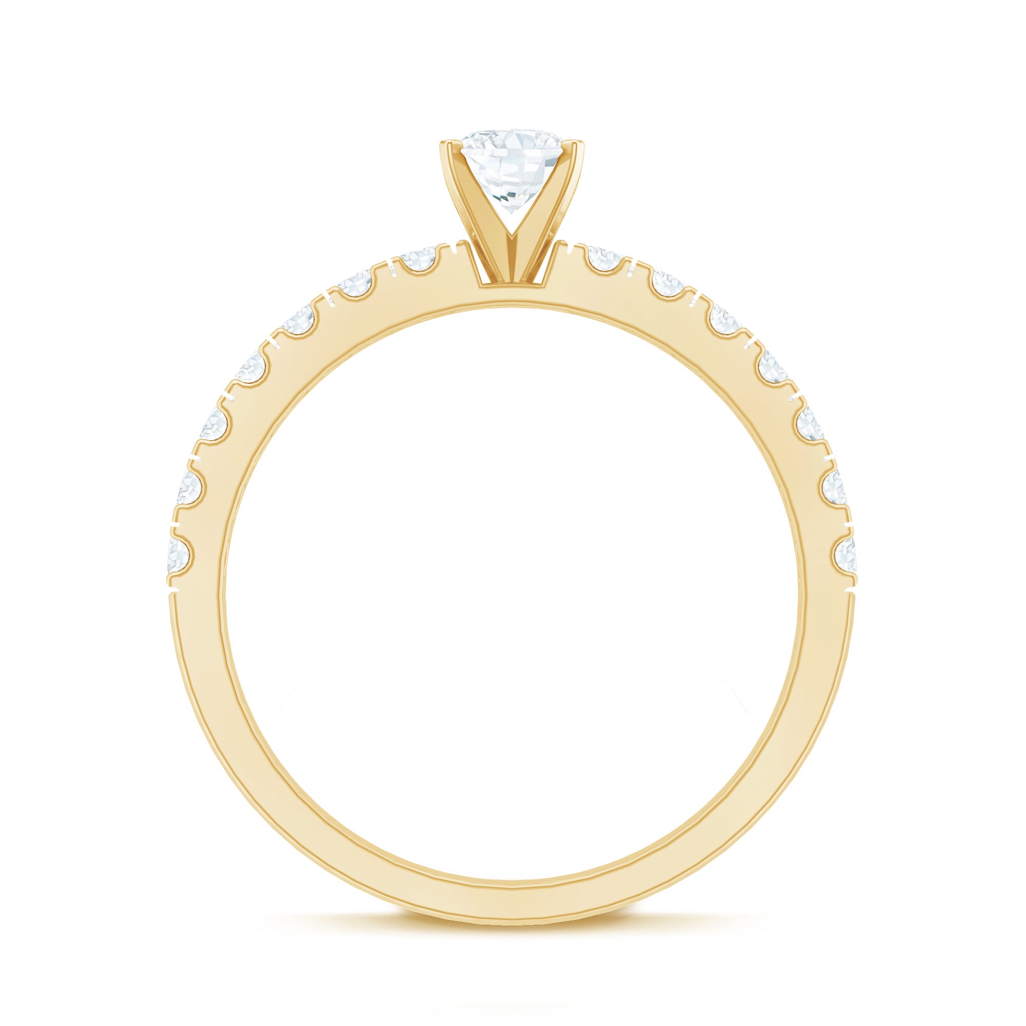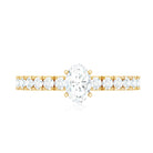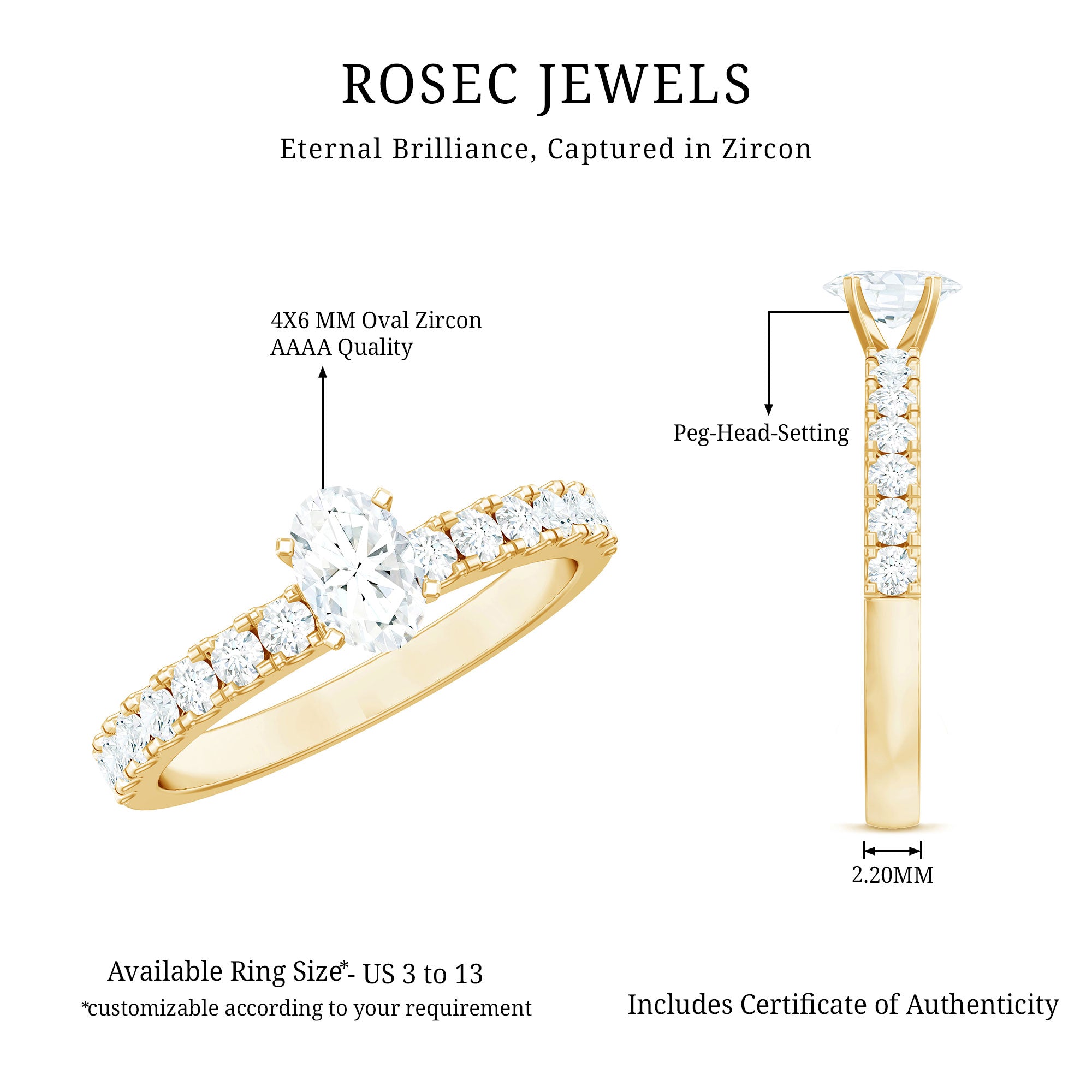 Bring out your look to the next level by wearing this admirable Solitaire Ring which is embellished with Oval Cut Zircon in the Center in Peg Head Setting along with Round Cut Zircon Side Stones. Crafted with Solid Gold, this Zircon Solitaire Ring will create a luxurious appearance.
