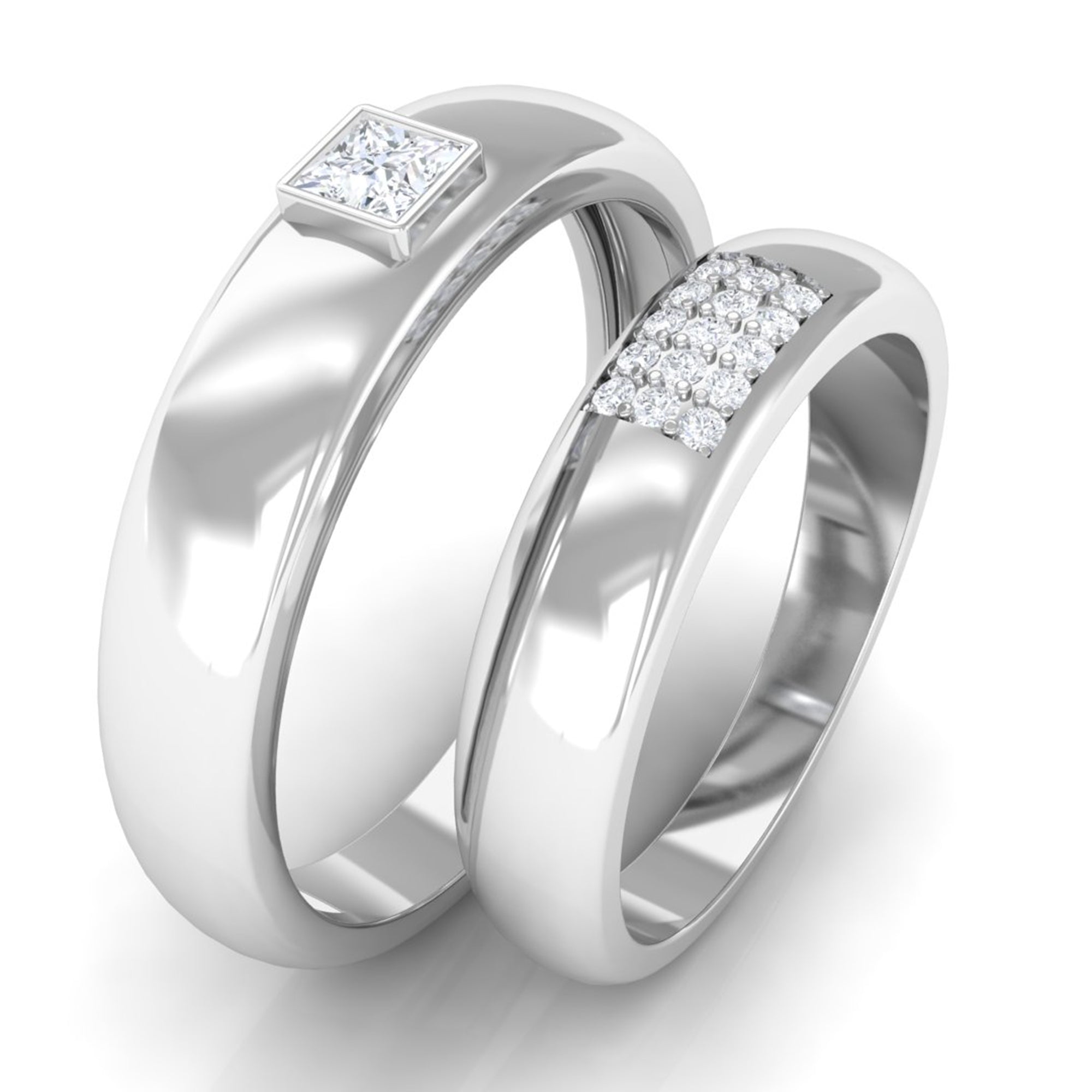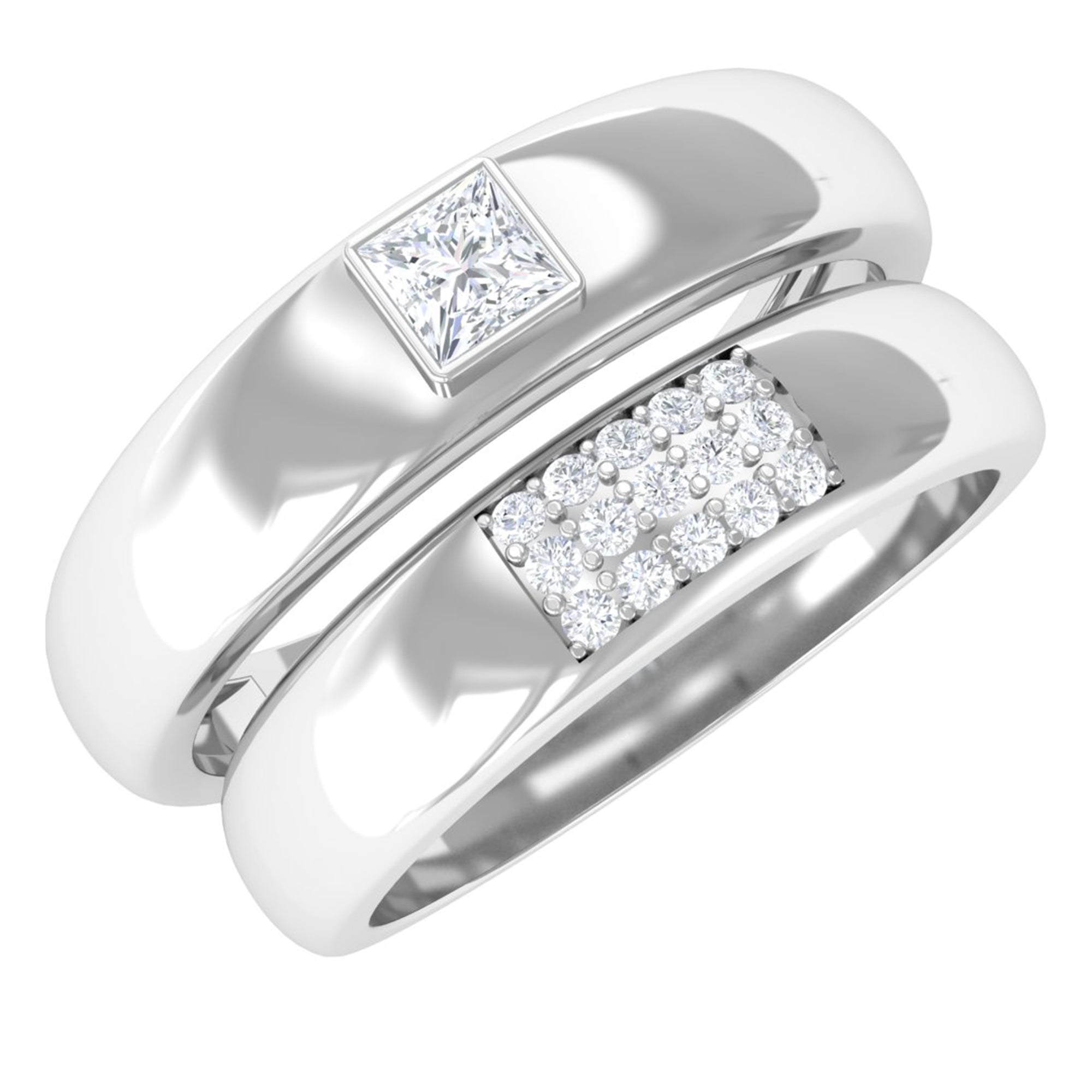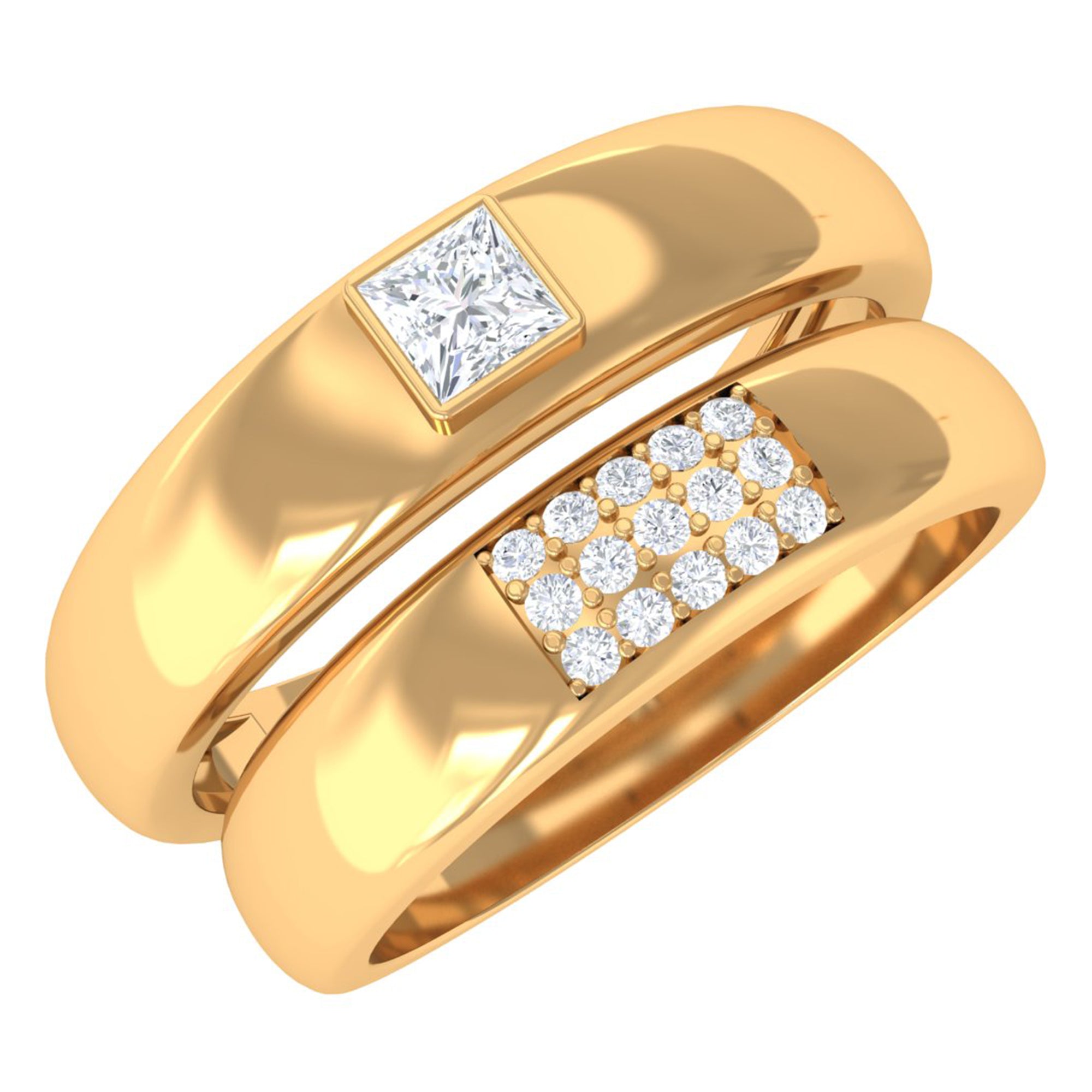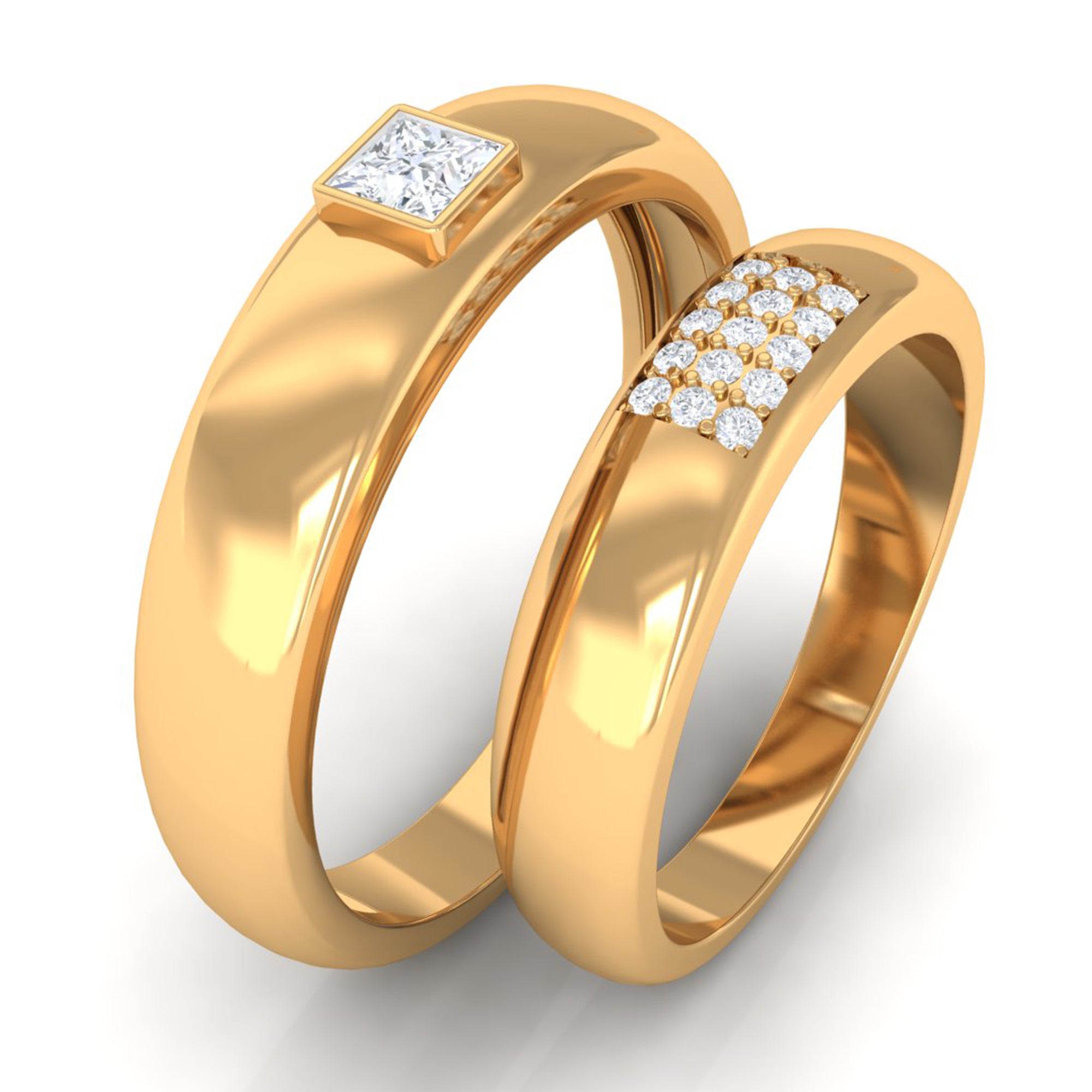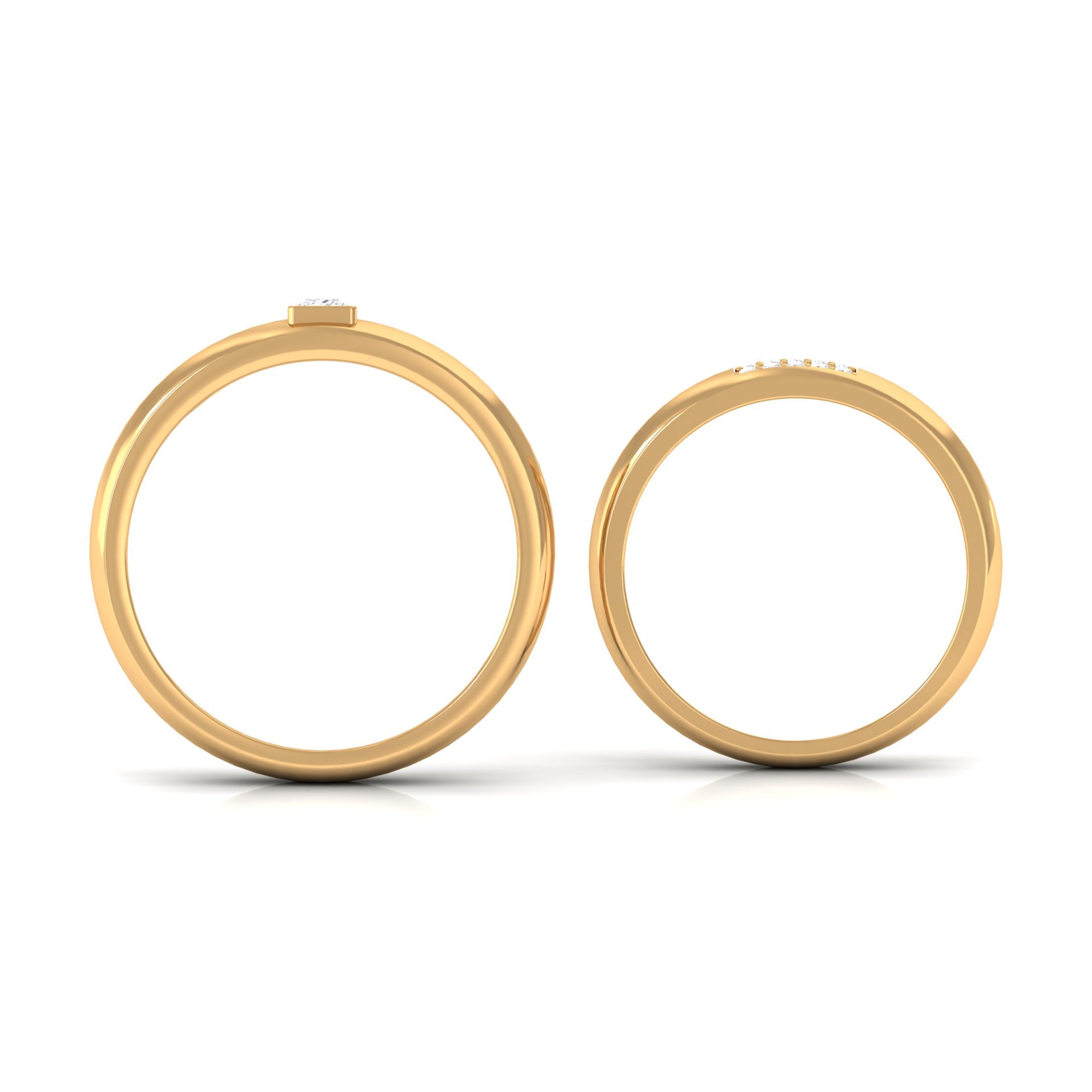 Glamorous and Stunning Diamond Couple Bands give you an amazing and dazzling look. These Adorable Matching Diamond Ring Set are available in Solid Gold Metal. Show your love and make his and her precious day extra special with this unique and classic ring set.