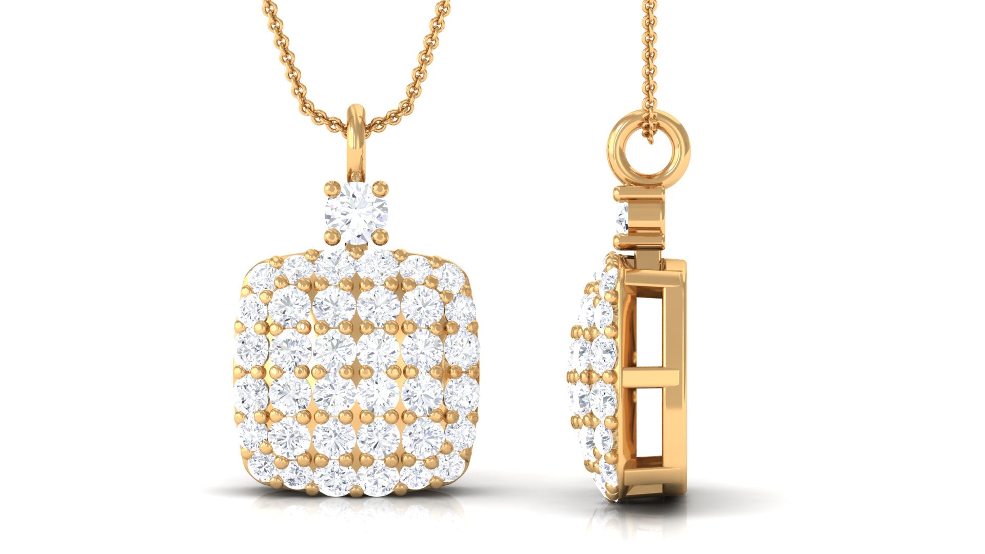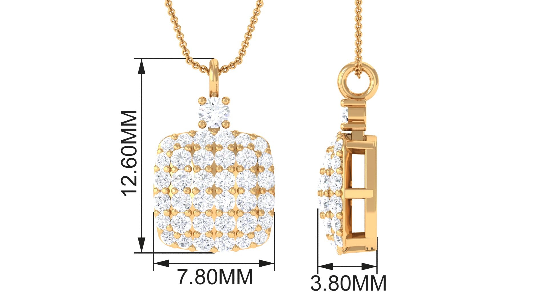 This pendant featuring a round cut Moissanite in a prong setting on a cluster pendant necklace is a versatile accessory suitable for any occasion. Crafted in gold and certified for quality, this piece of jewelry is sure to make a statement. The Moissanite stones brilliance and fire are unparalleled, and its prong setting ensures maximum light reflection. Wear this pendant with confidence, knowing that it is of the highest quality and is sure to draw compliments wherever you go.