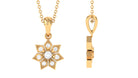 Discover elegance and simplicity with the adorable Flower Pendant, adorned with Round Cut Moissanite. This Moissanite Floral Pendant is a chic and charming accessory, perfect for any woman. Embrace its timeless appeal and add a touch of sophistication to your style with this delightful pendant.