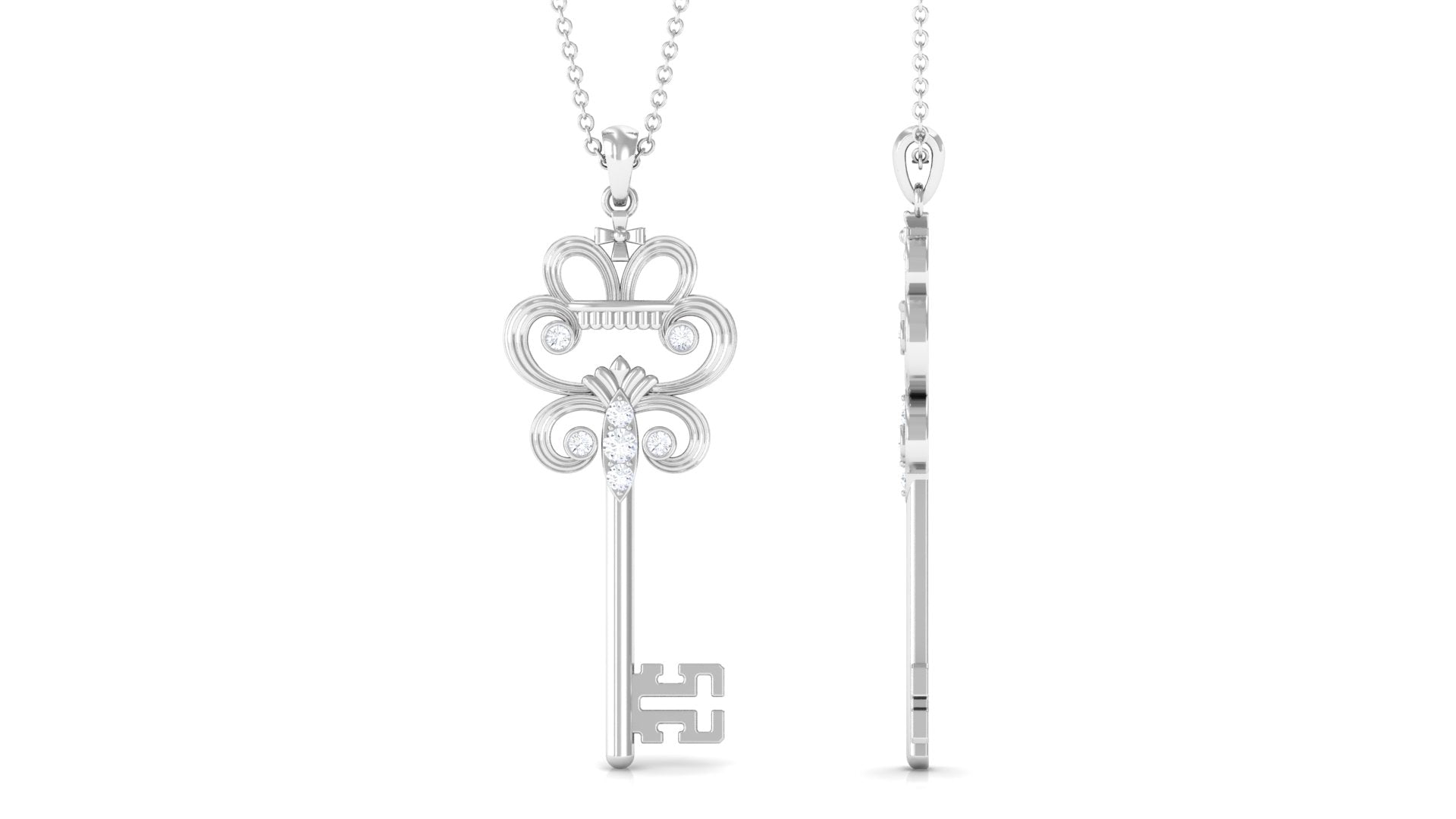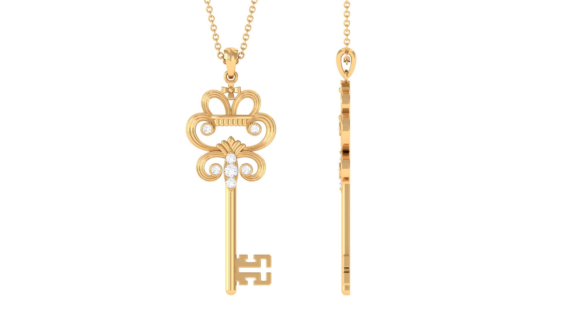 1/4 CT Certified Moissanite Vintage Gold Key Pendant Necklace