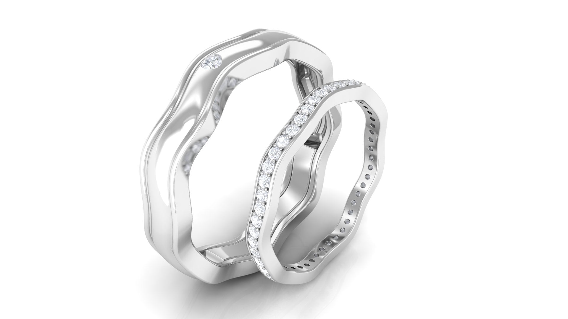 Be a Trendsetter with our Rings for Him and Her featuring Round Cut Diamond set in Other Setting with Curved Zig-Zag details, adorned in Solid Gold.