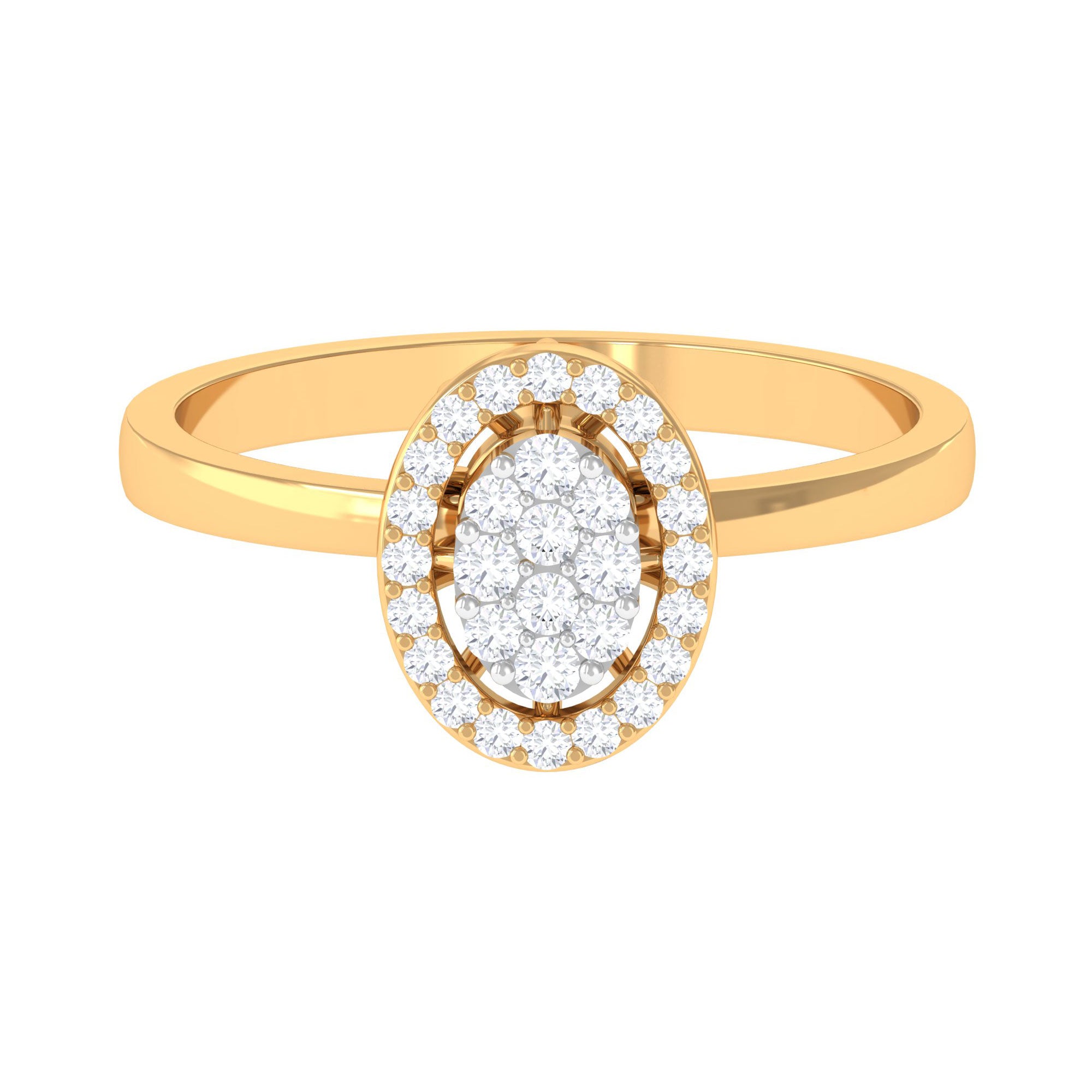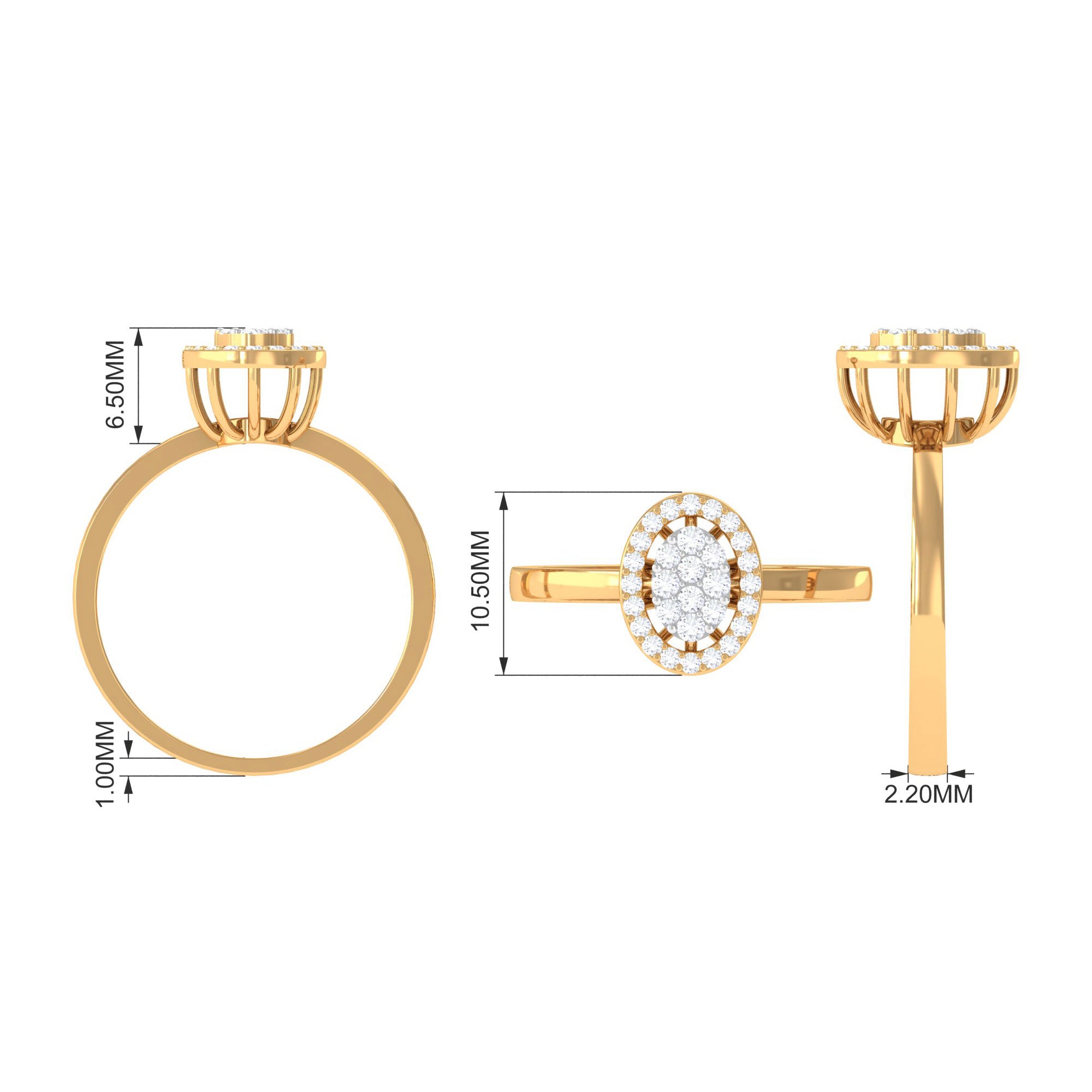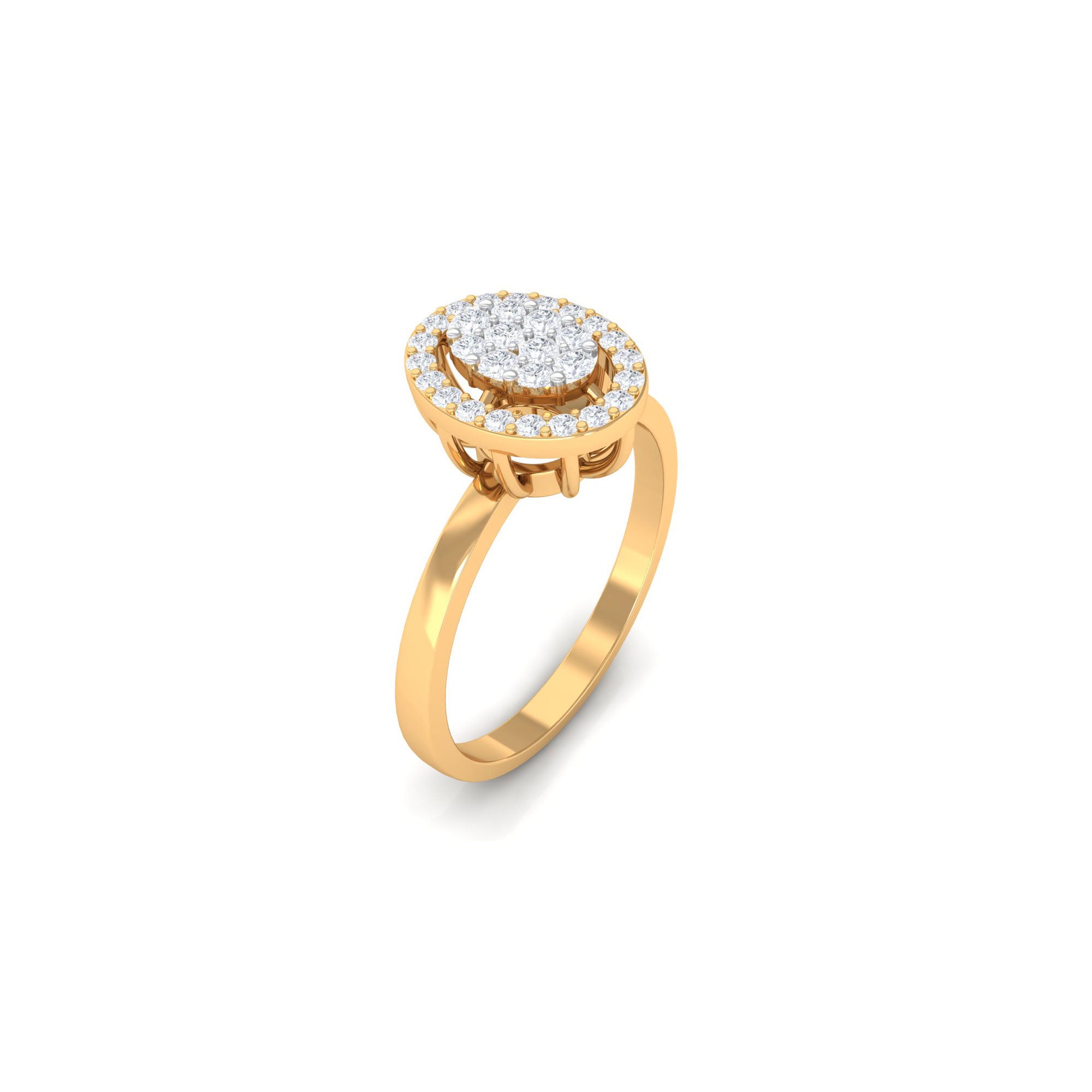 It is a timeless classic and radiant Diamond Cluster Ring. Oval shape is the illusion of sparkles with the Brilliant Round Diamonds in the cluster set. The shimmer is enhance by halo setting of Round Diamonds in Halo Diamond Wedding Ring. This piece is composed in Solid Gold.