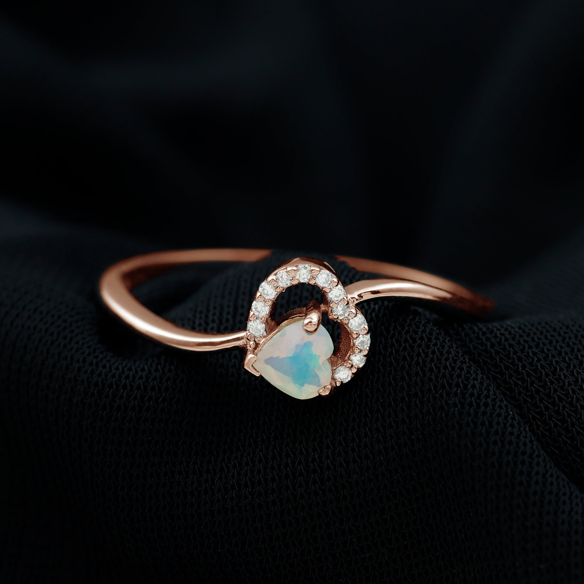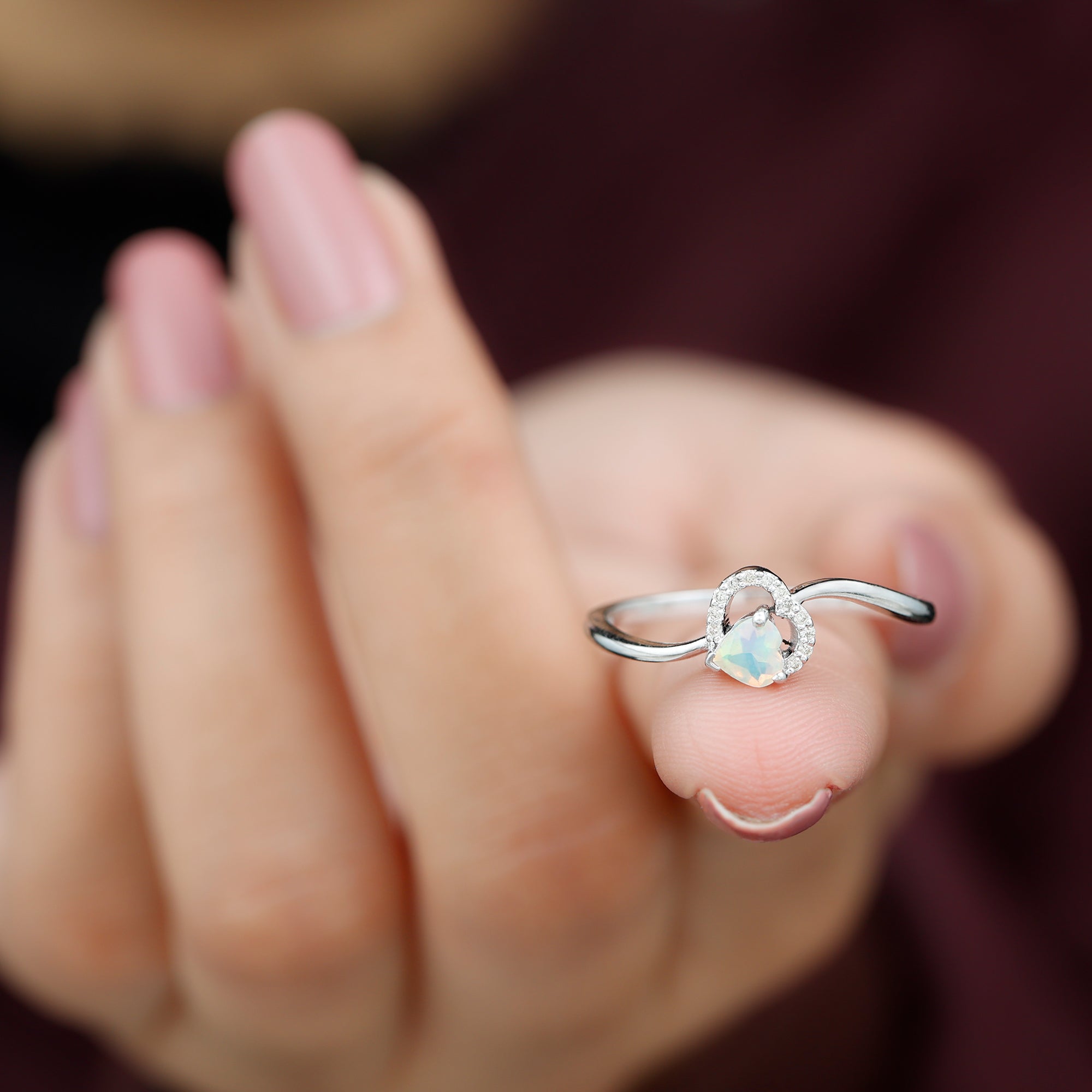 1/4 CT Ethiopian Opal Heart Promise Ring with Diamond