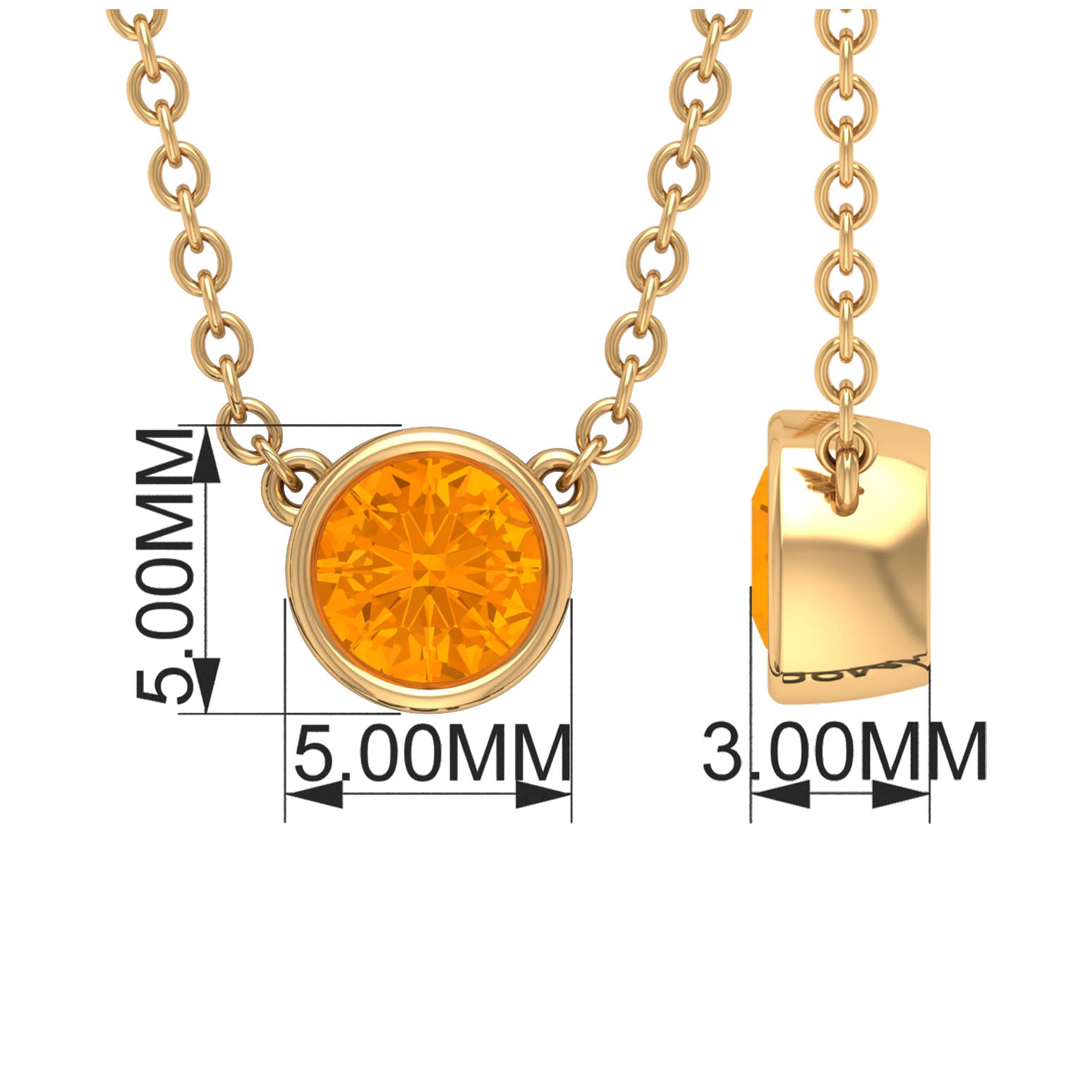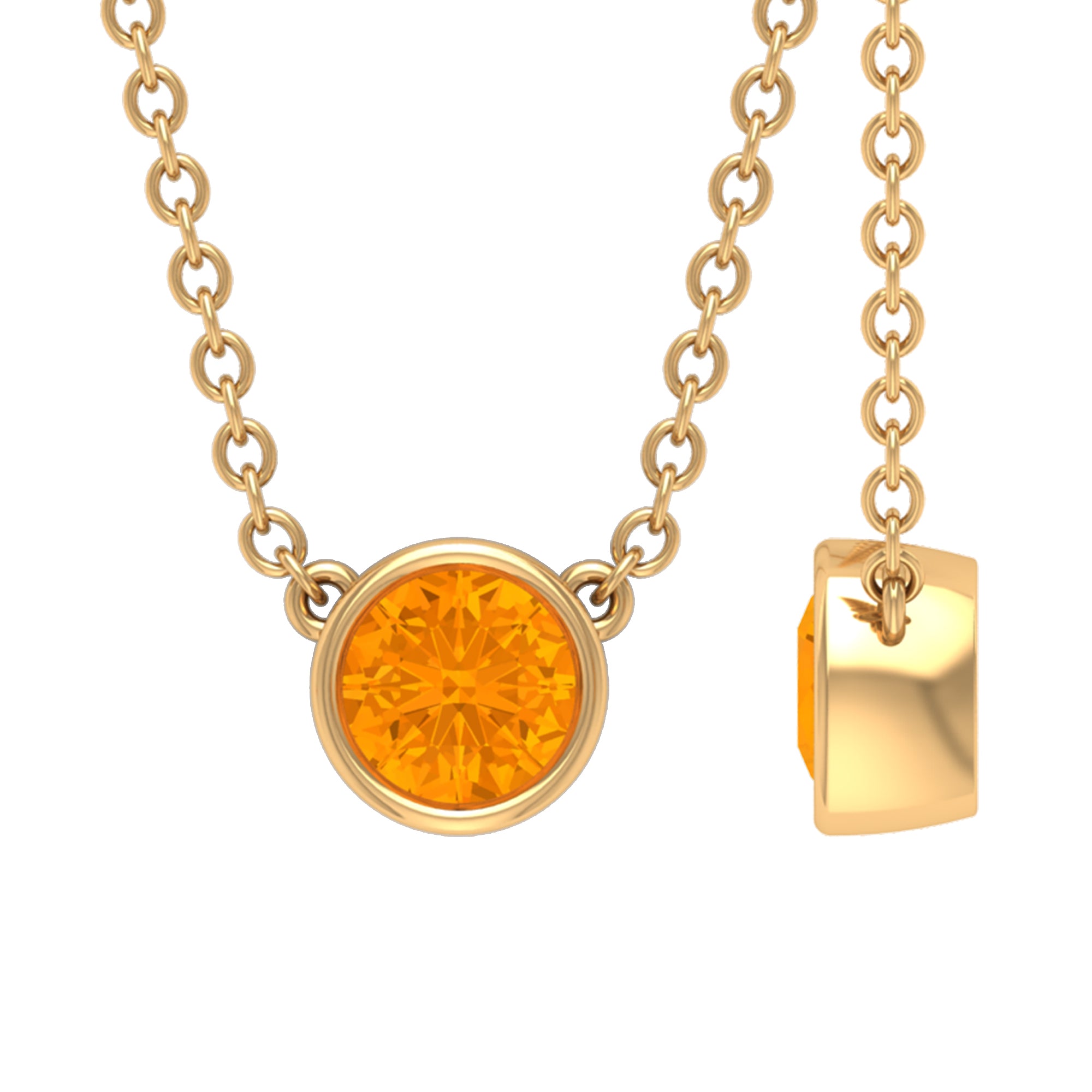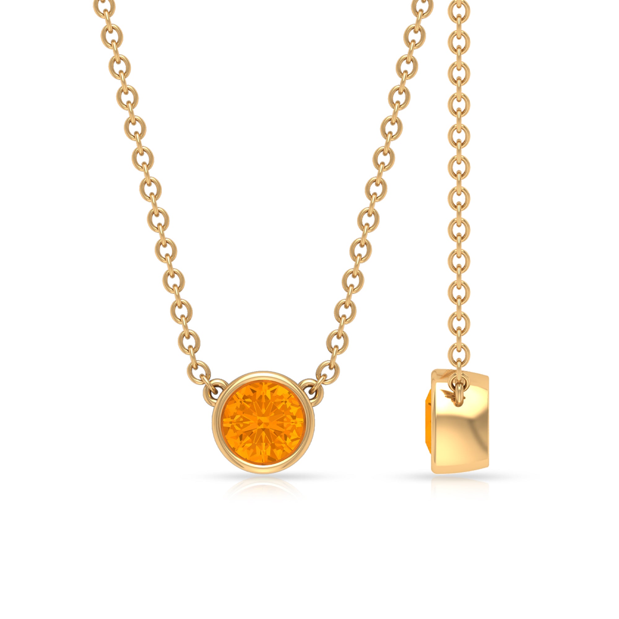 1/4 CT Genuine Orange Sapphire Solitaire Gold Necklace in Bezel Setting