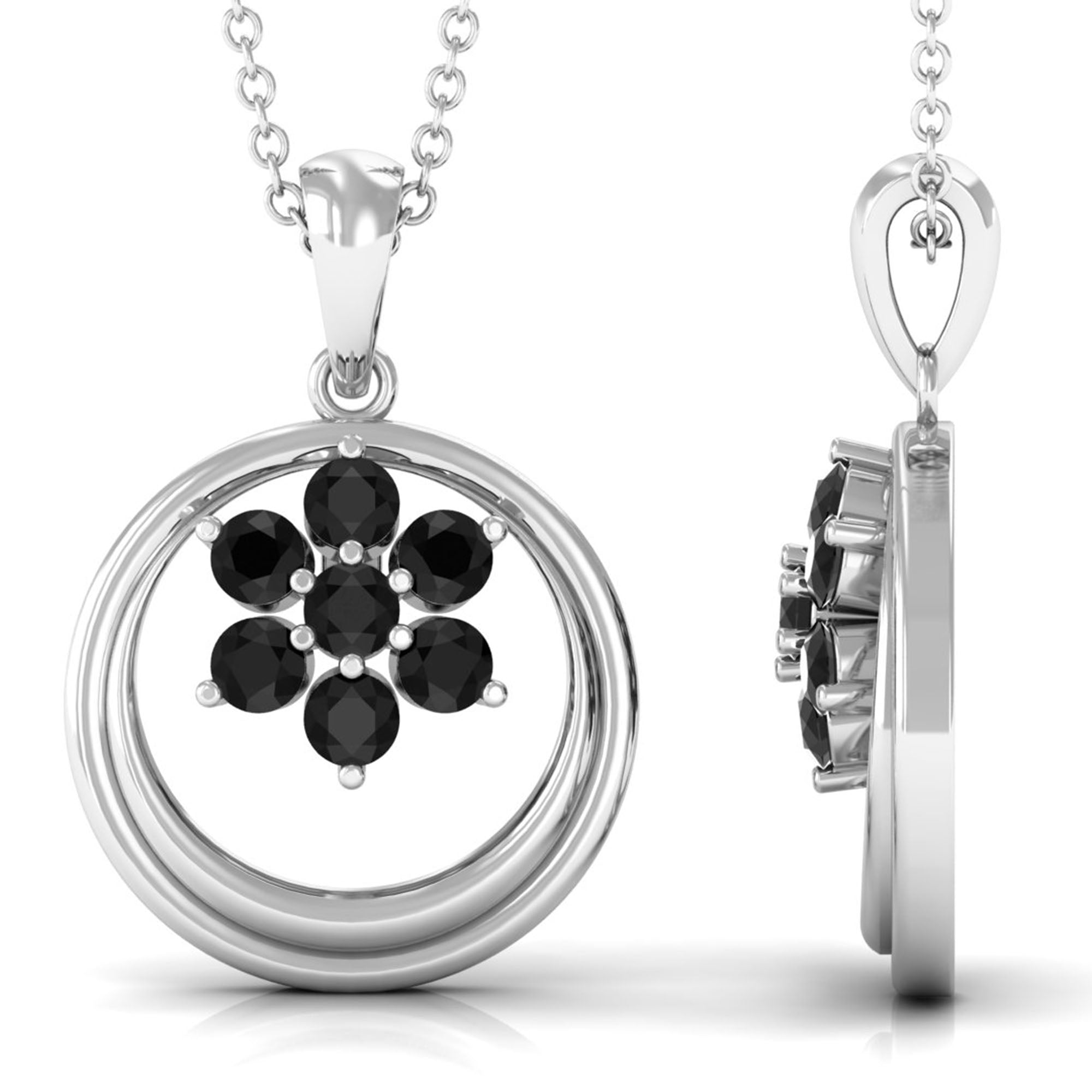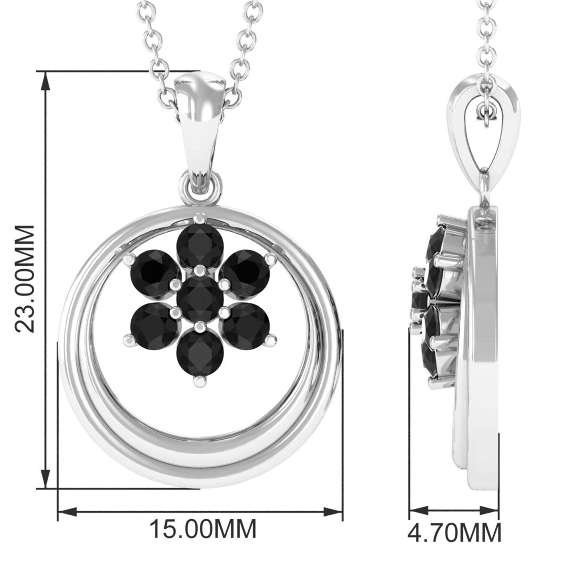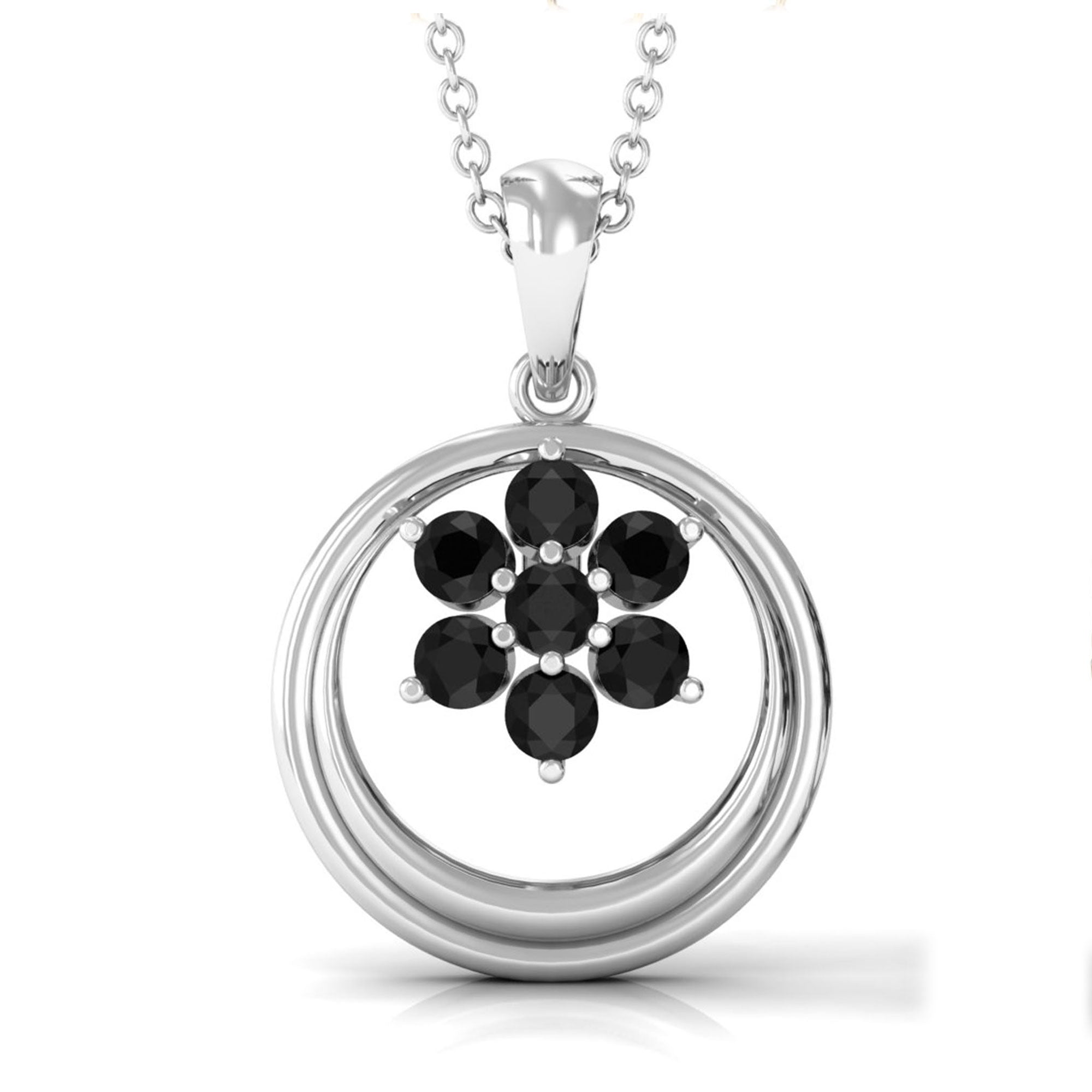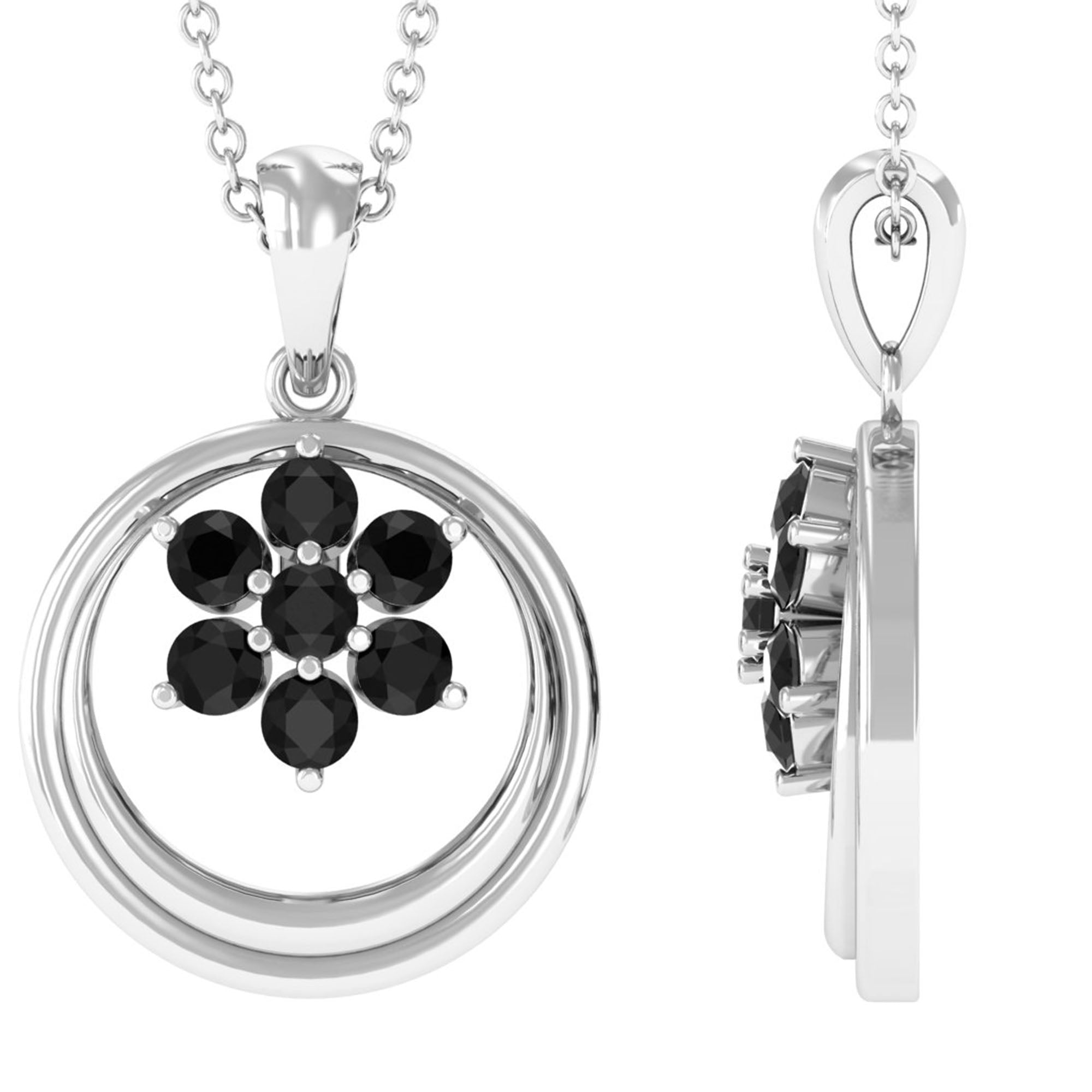 1/4 CT Minimal Black Spinel Cluster Open Circle Pendant