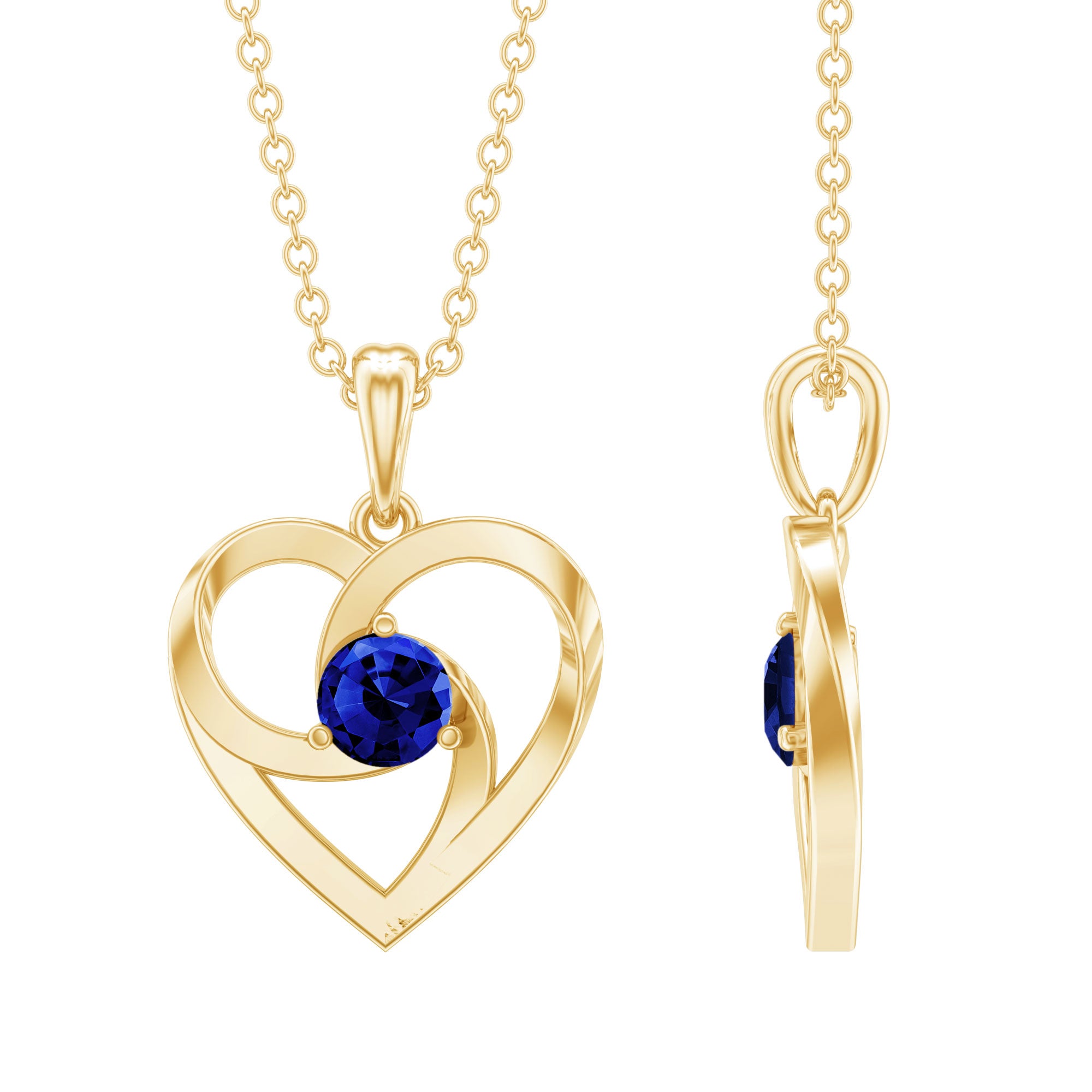 Minimal Pendant is the enchanting piece crafted in 10K, 14K 18K Solid Gold metal. Open Heart Necklace embellished with Solitaire Diffused Sapphire stone in the prong setting.