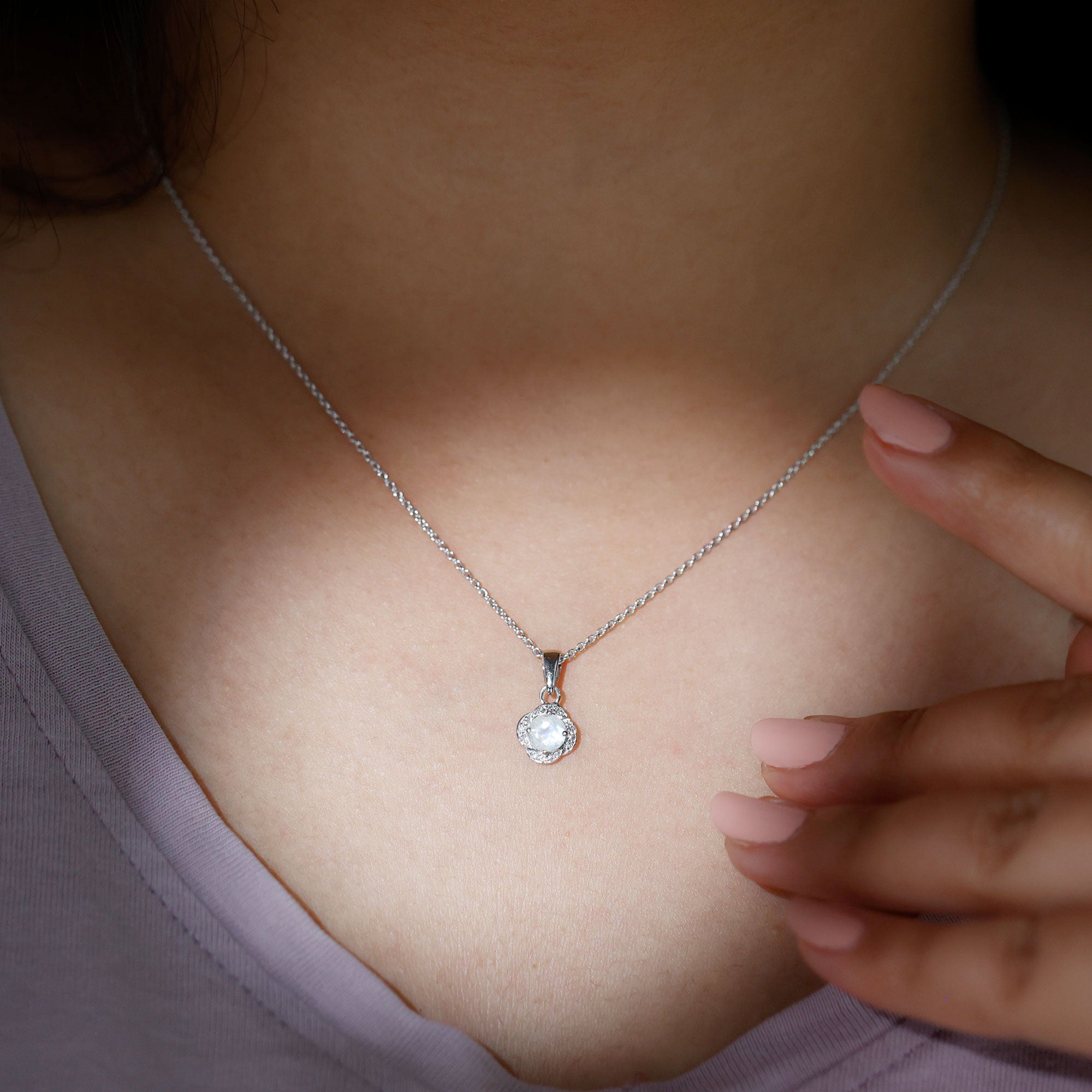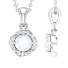 1/4 CT Moonstone and Diamond Solitaire Flower Pendant Necklace