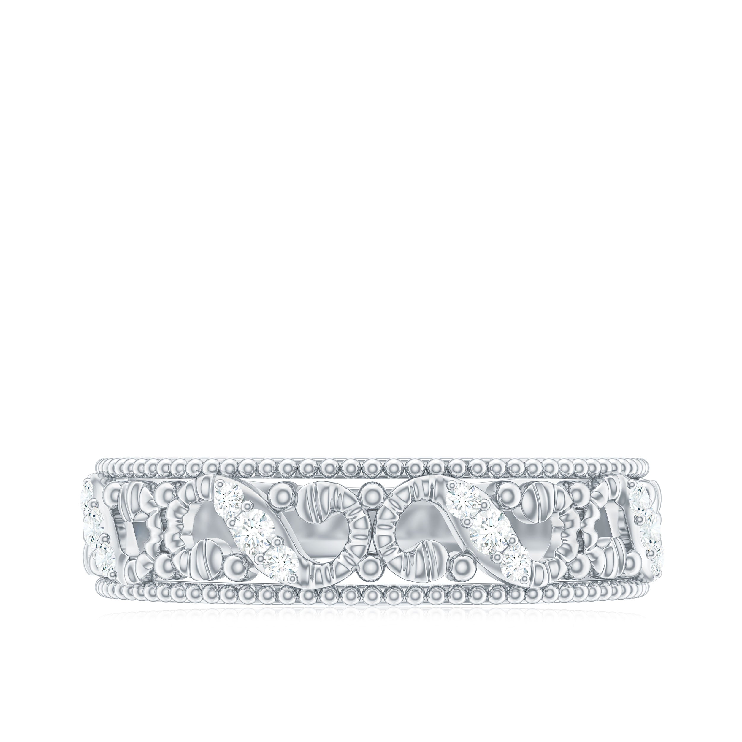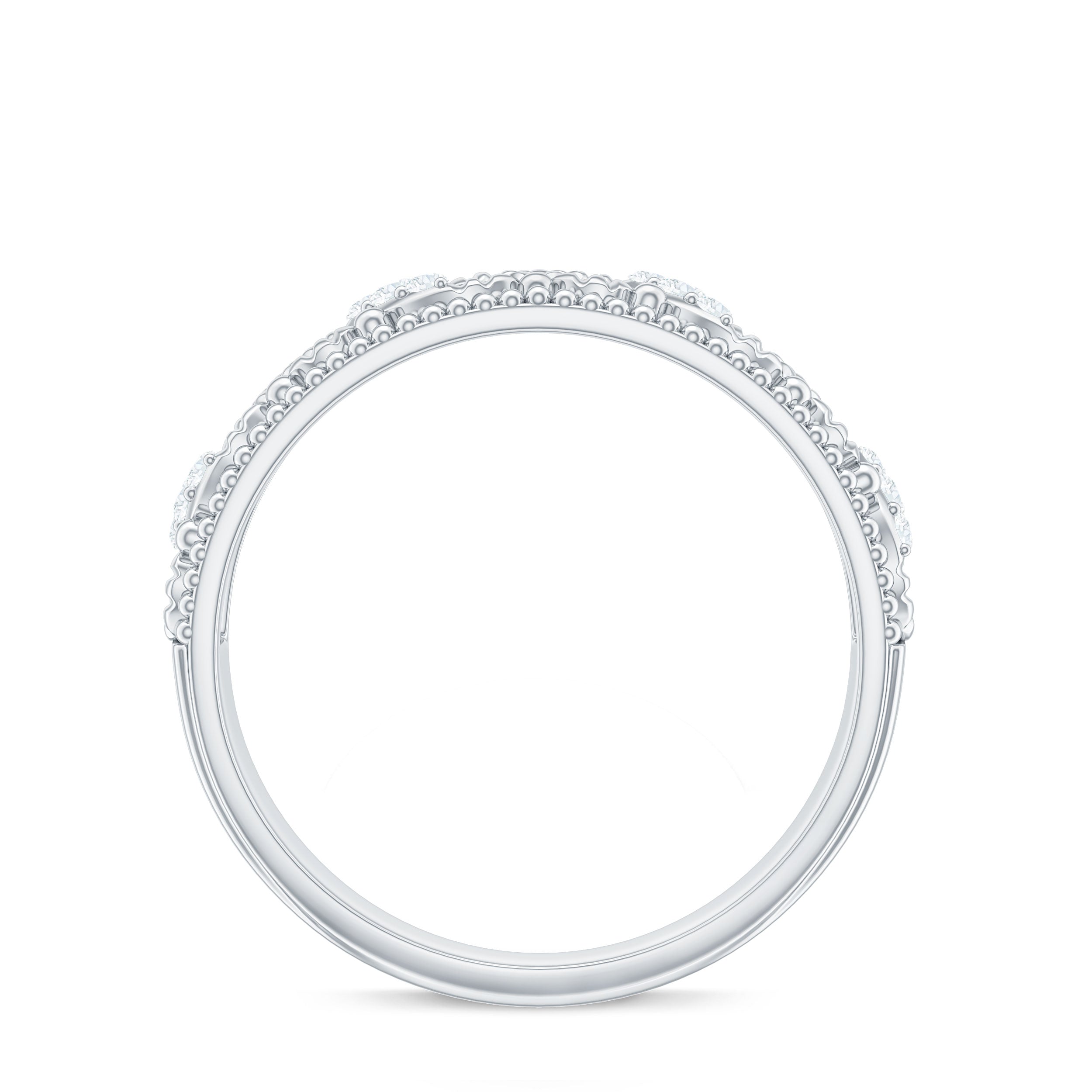 Shine all day long when you wear this Wedding Band Ring, adorned with Round Cut Diamond in Prong Setting with Beaded Details gives a mesmerizing look.
