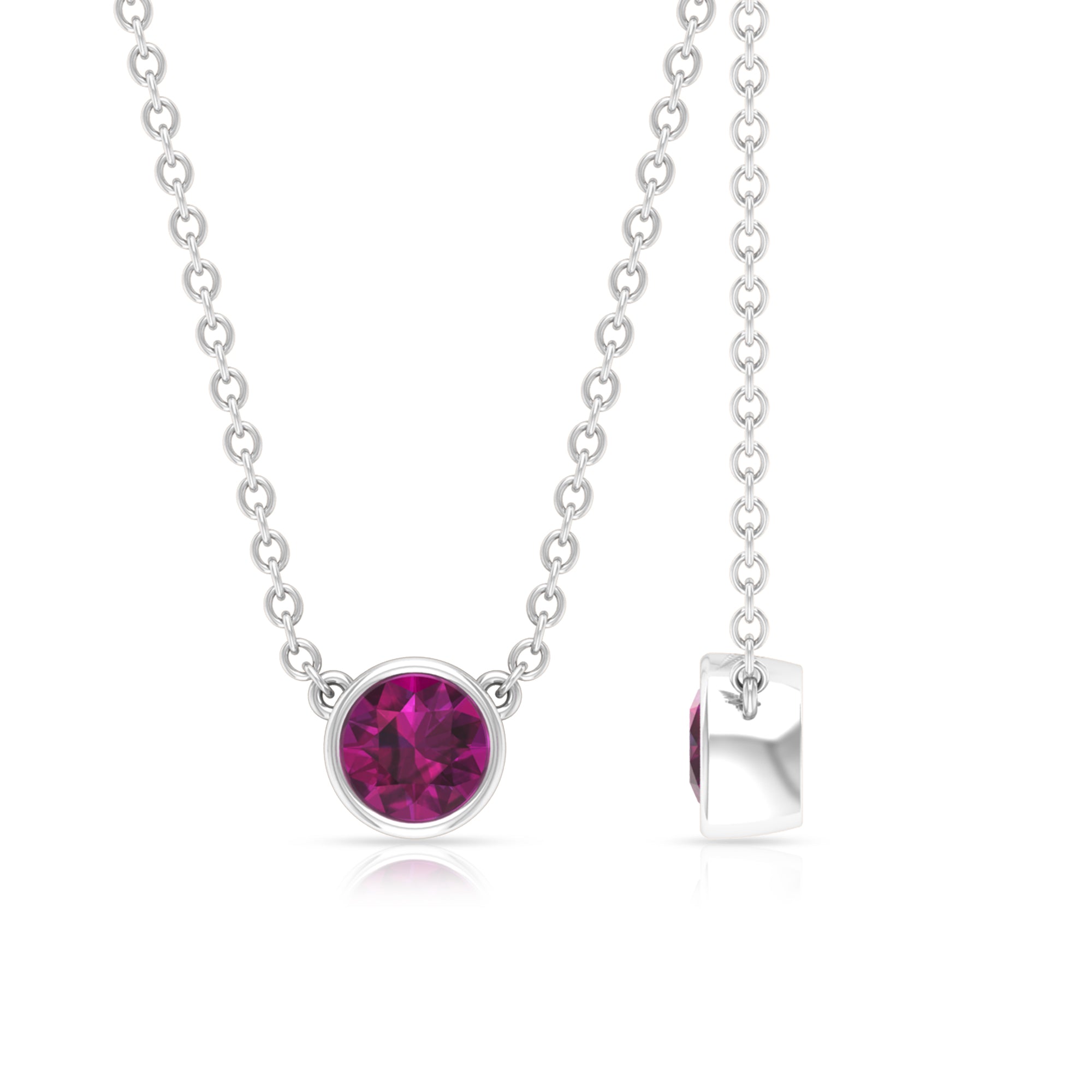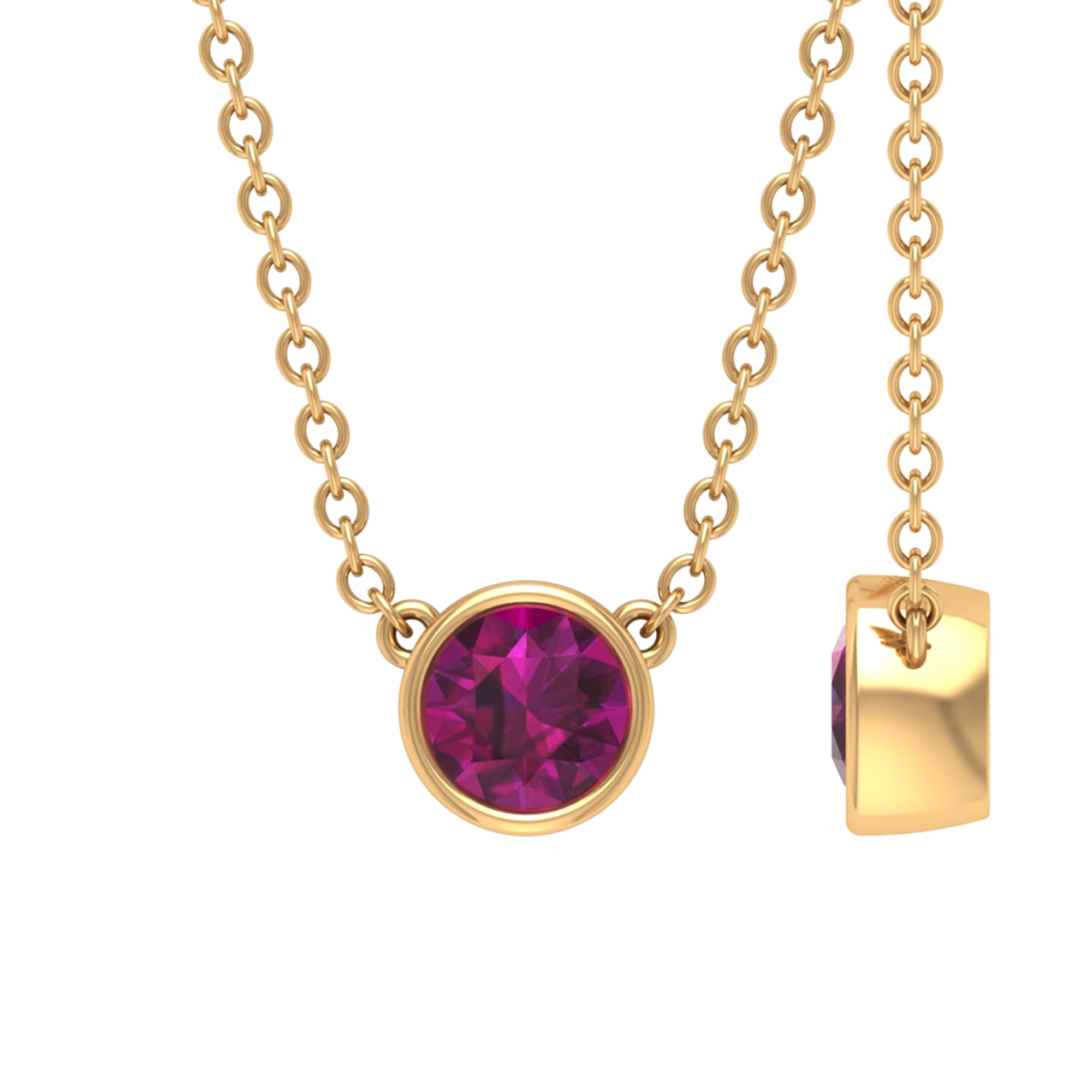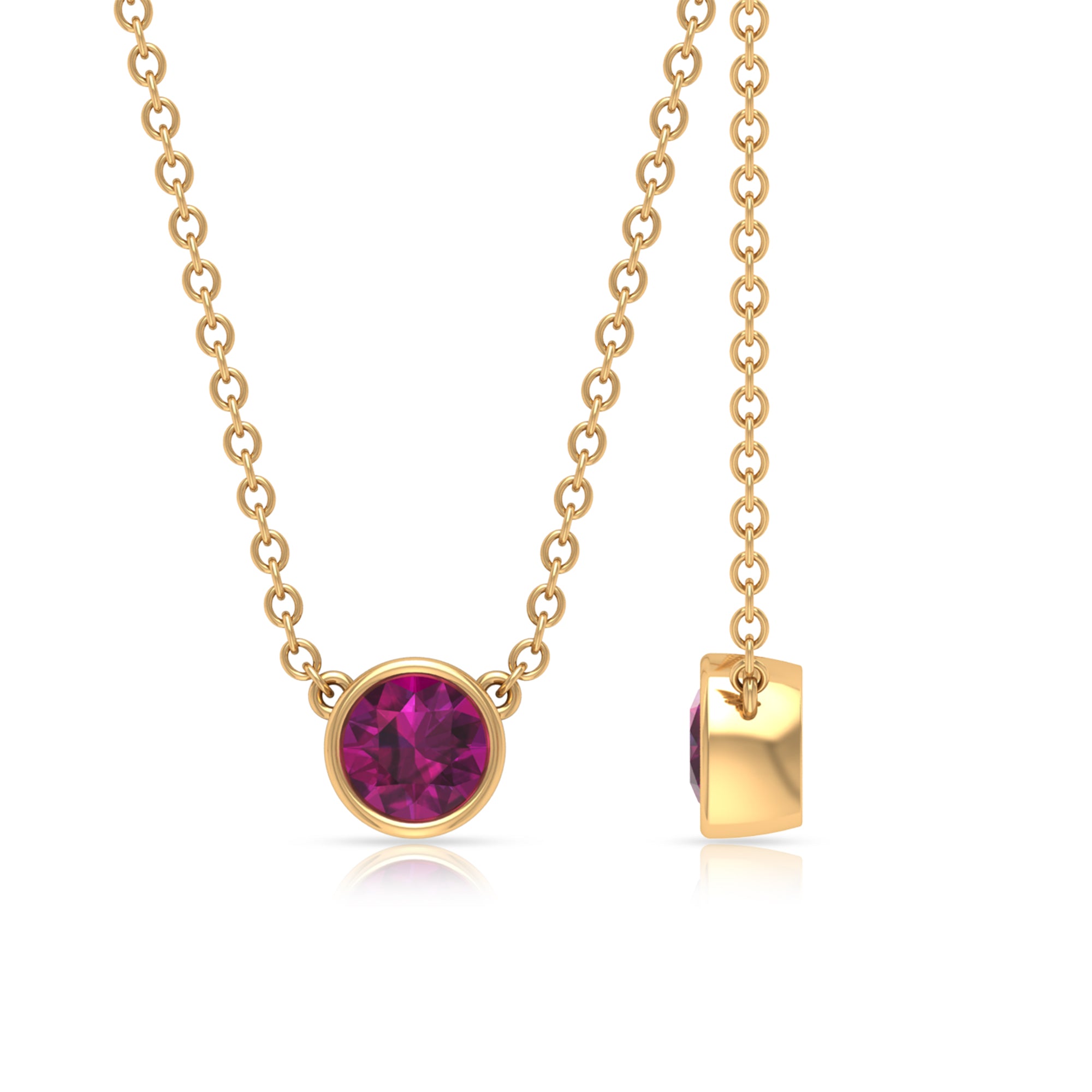 1/4 CT Natural Rhodolite Solitaire Gold Necklace in Bezel Setting