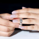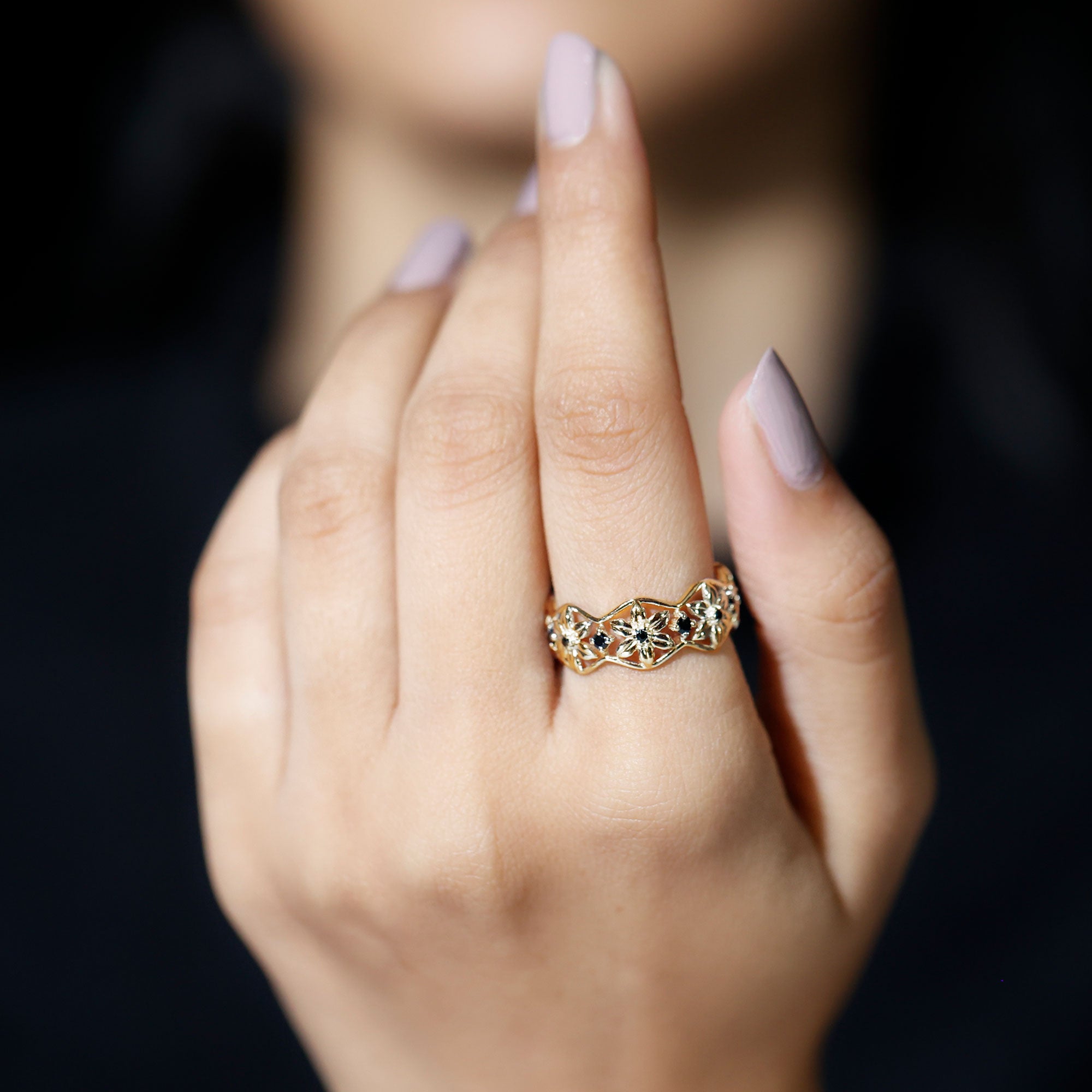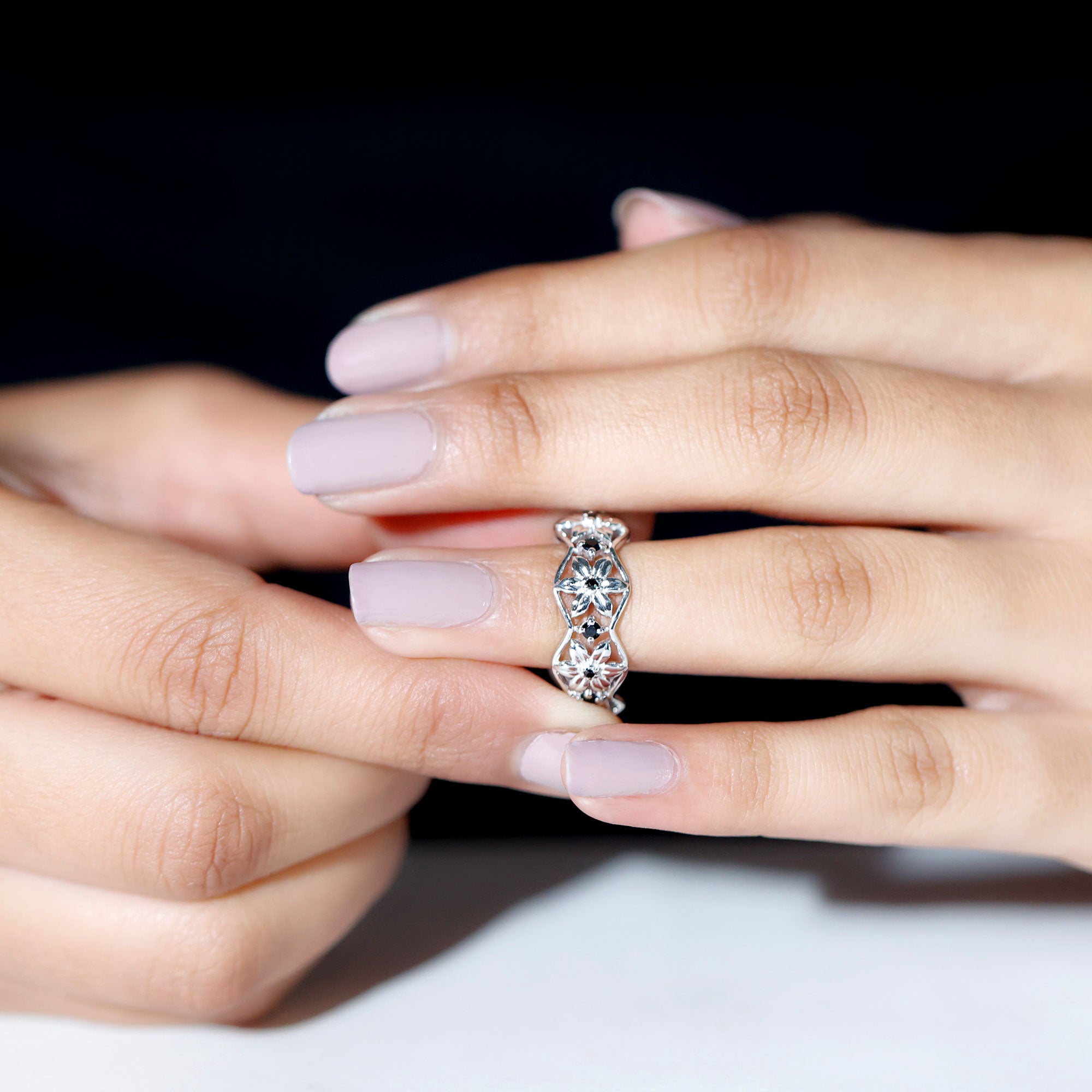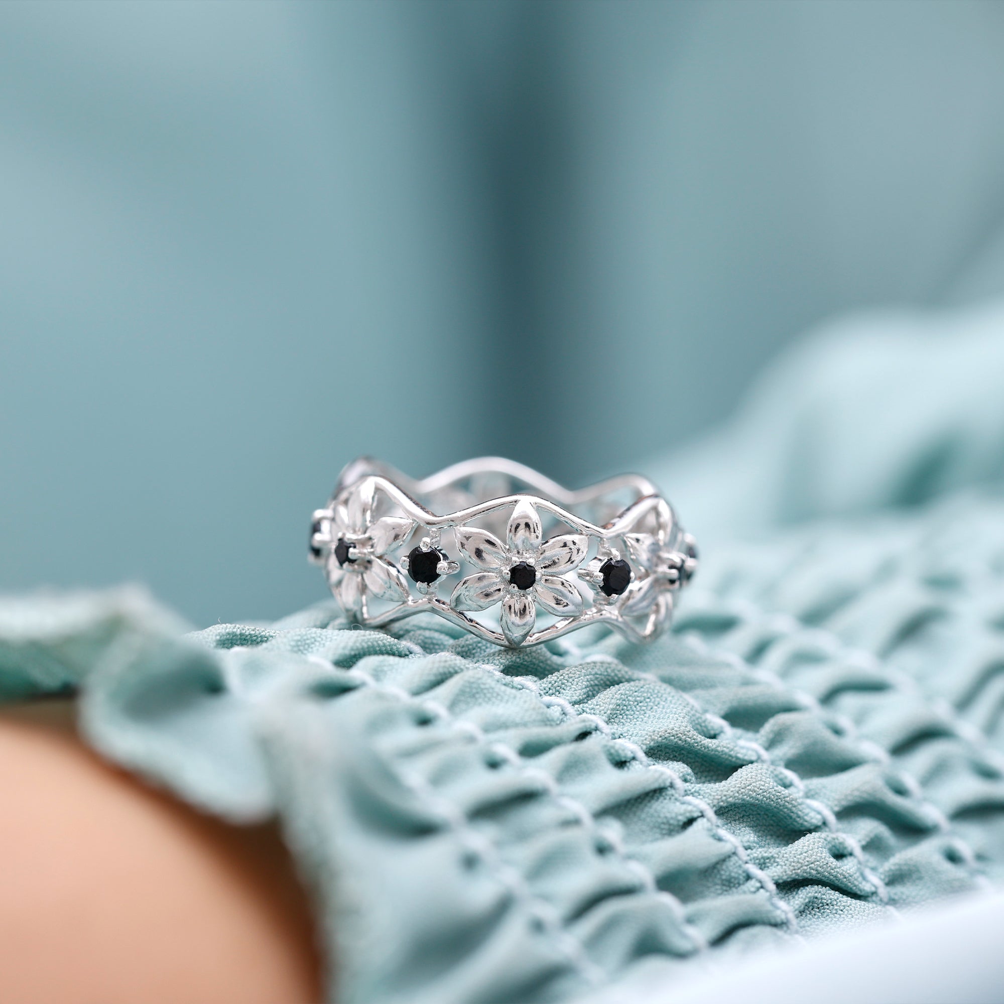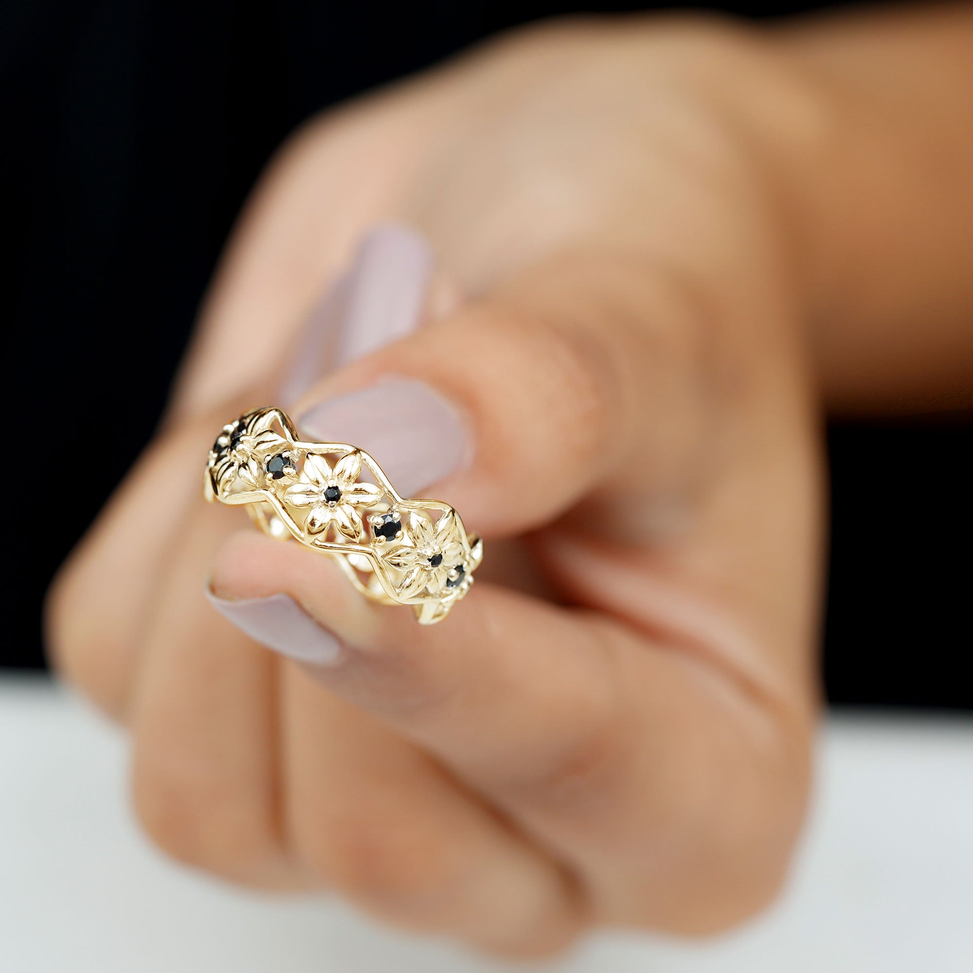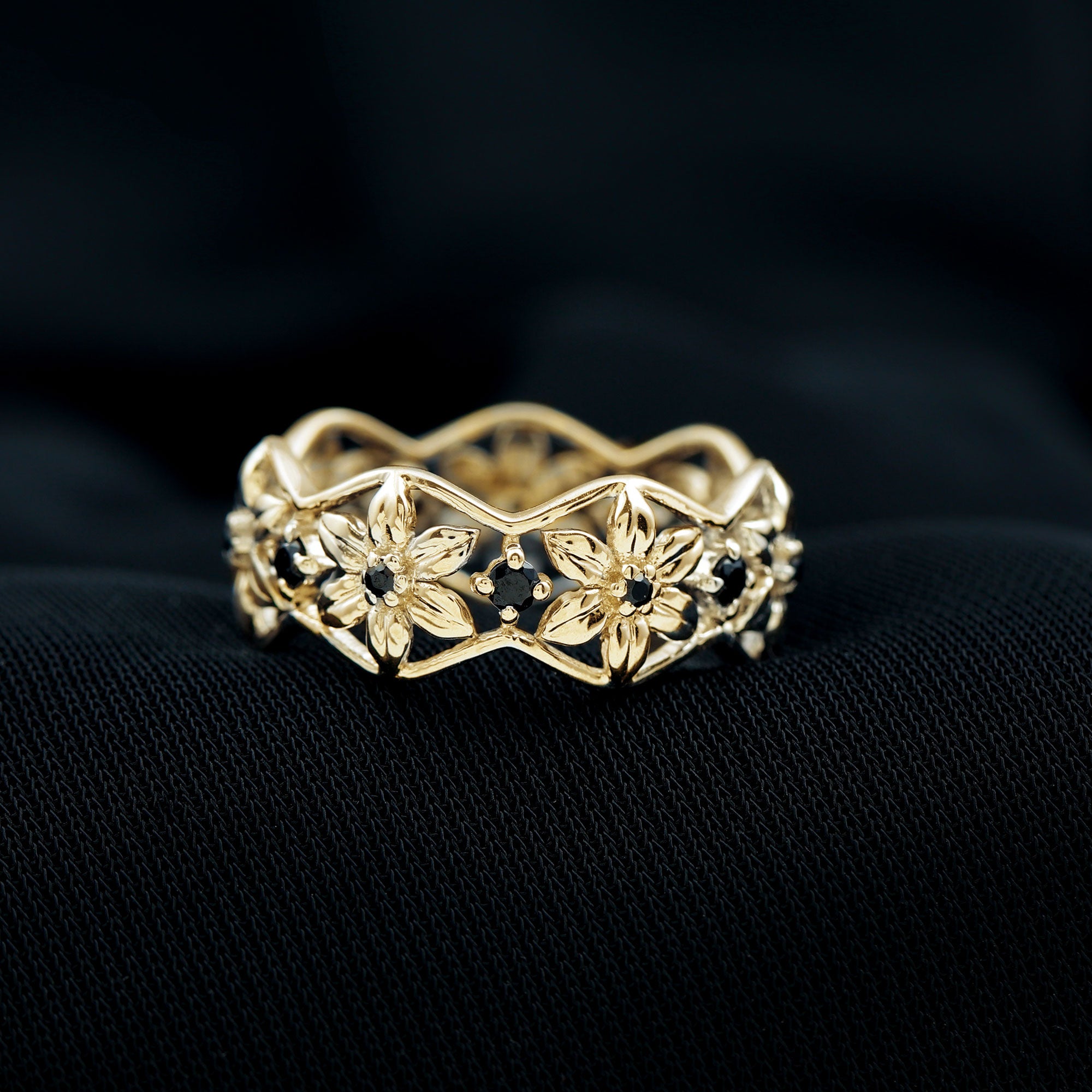 1/4 CT Real Black Spinel Flower Wedding Band Ring
