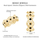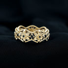 Accessorize with a touch of timeless style with this classic Black Spinel Designer Gold Band Ring. The gold floral motif band is embellished with black spinel, making it the perfect choice to complete any black ensemble. Made from gold, this ring is a must-have for any jewelry collection.