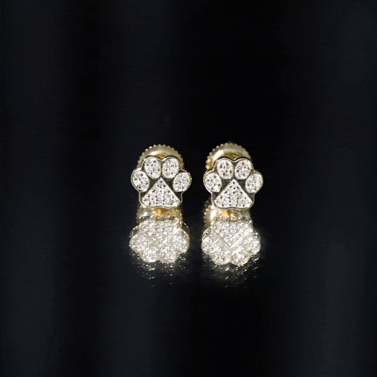 1/4 CT Real Diamond Cute Paw Stud Earrings in Gold
