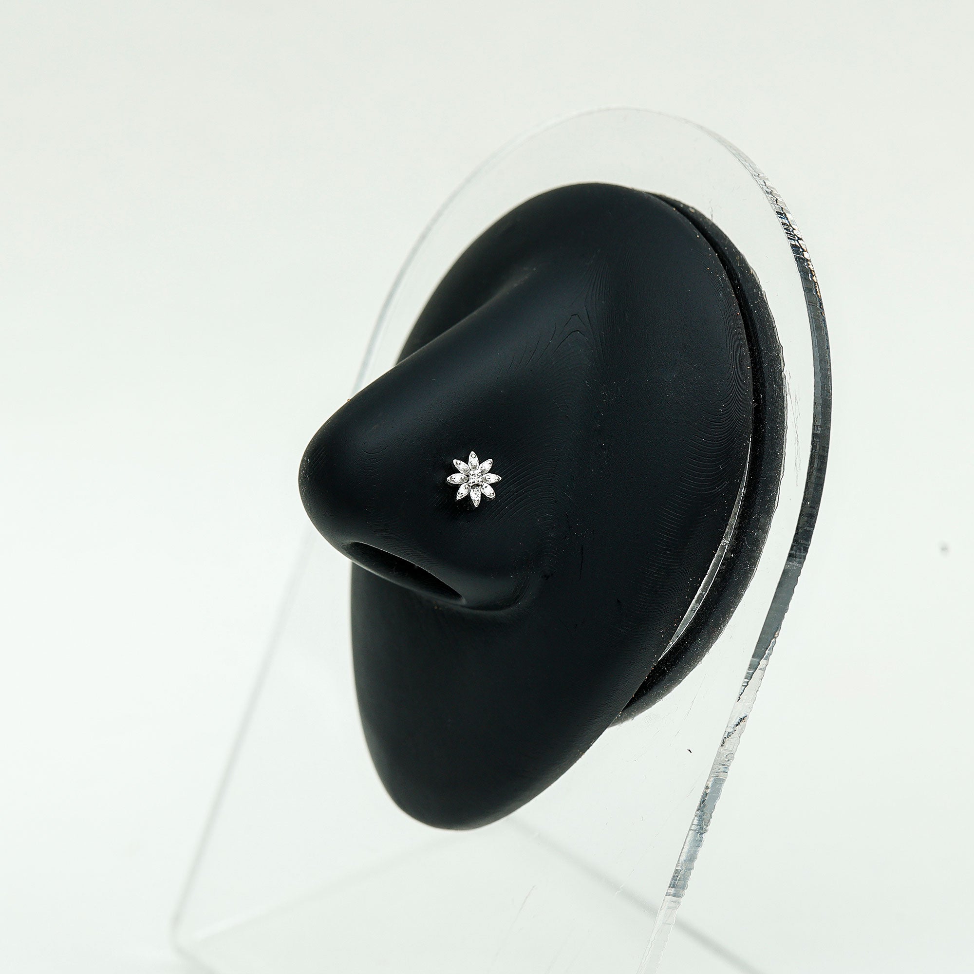 Make a statement with your unique style by wearing this exquisite Flower Nose Stud and receive endless compliments. Meticulously crafted from high-quality metal, this stunning Diamond Nose Stud showcases a beautiful floral design adorned with Round Cut Diamonds set in prong setting. Its intricate details and impeccable craftsmanship make it the perfect accessory to wear every day as a stunning piece of Body Jewelry. Flaunt your individuality and elevate your look with this exquisite Nature Inspired Jewelry that is sure to turn heads. Apart from wearing it on the nose this dainty stud can be styled on ear piercings also such as Helix Piercing, Cartilage Piercing, and Lobe Piercing. This classic stud beholds the shine of HI-SI quality Diamonds which gives an enchanting appearance to the entire look.
