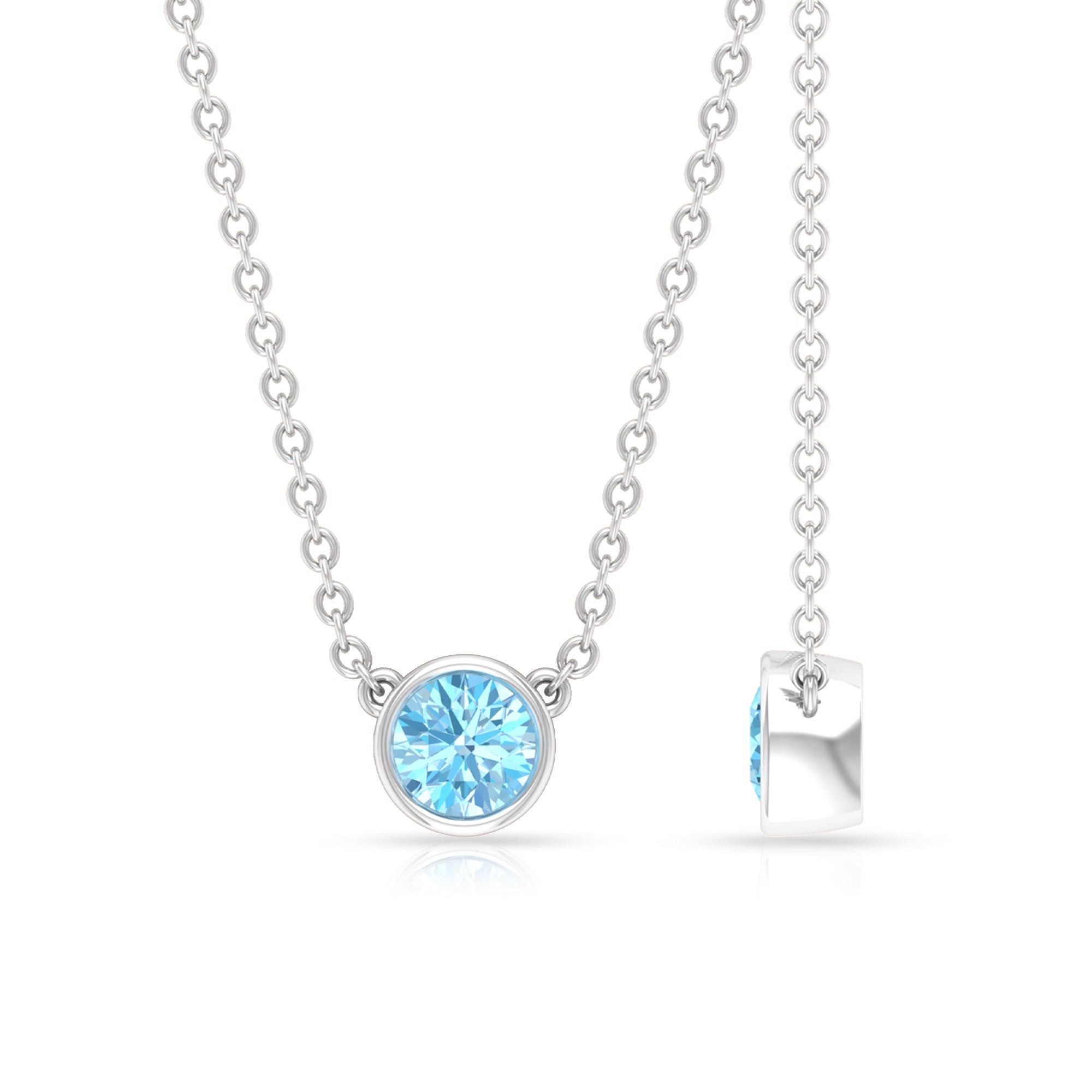 1/4 CT Round Aquamarine Solitaire Necklace in Gold