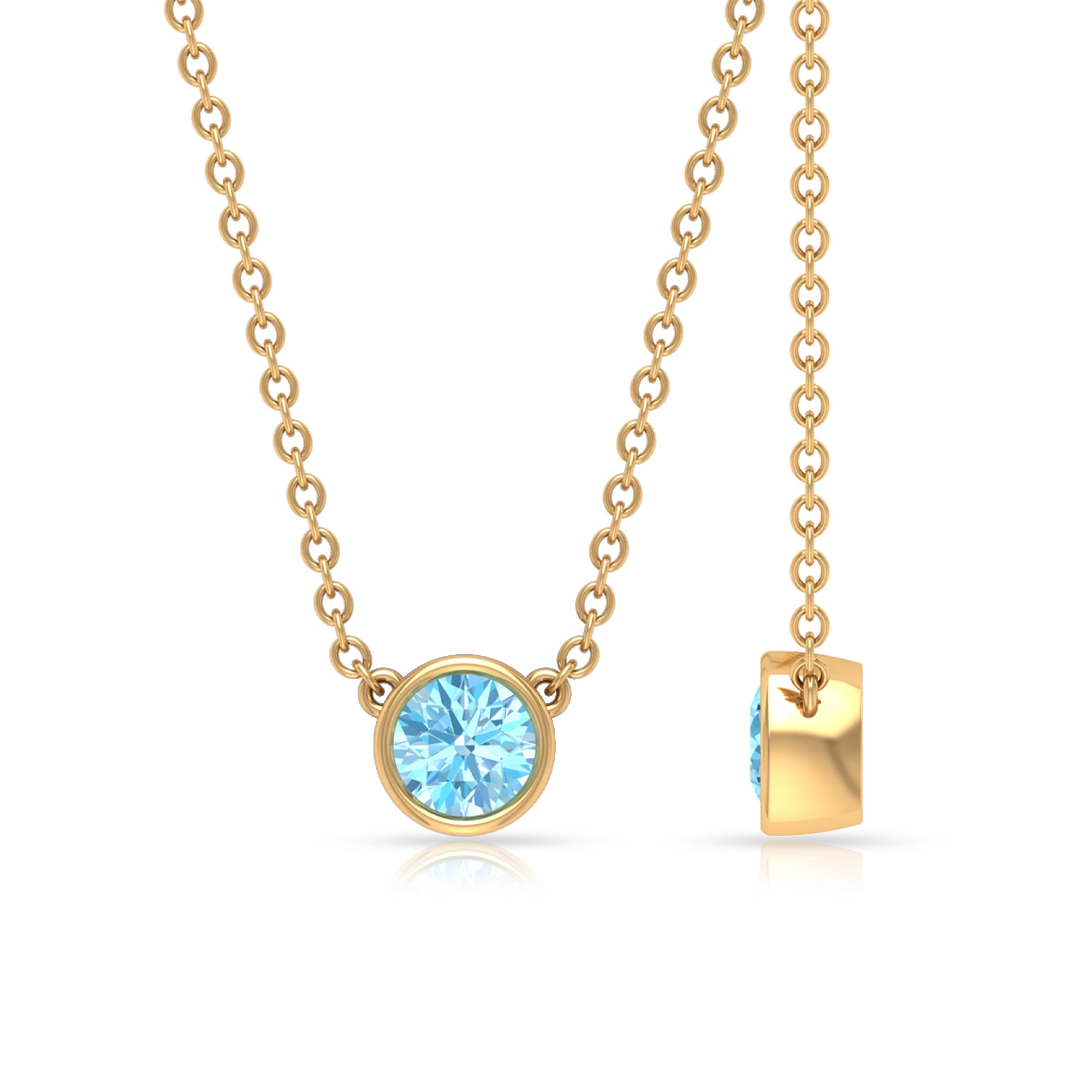 Enhance the significance of your special occasion with this exquisite Solitaire Necklace featuring a Round-Shaped Aquamarine in a Bezel Setting. The Aquamarine necklace boasts a minimalist design and is expertly crafted in solid gold.