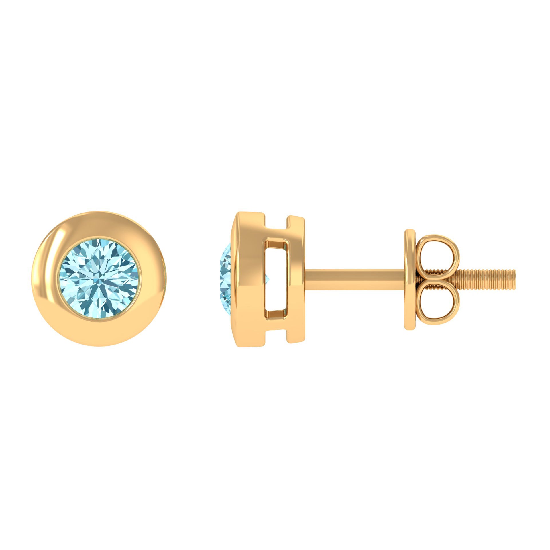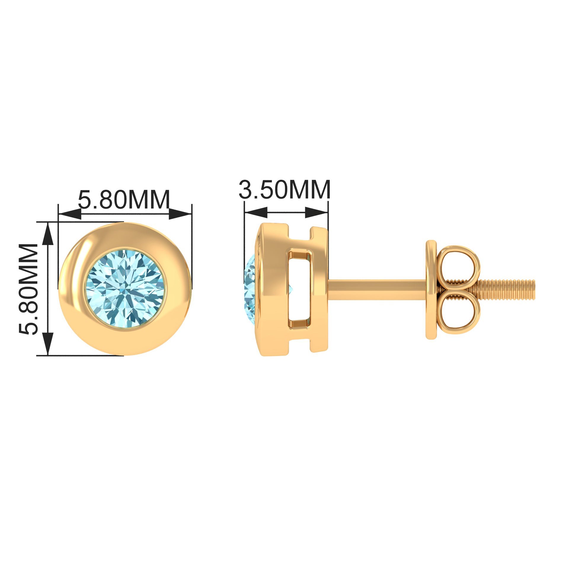 1/4 CT Round Aquamarine Solitaire Stud Earrings in Bezel Setting