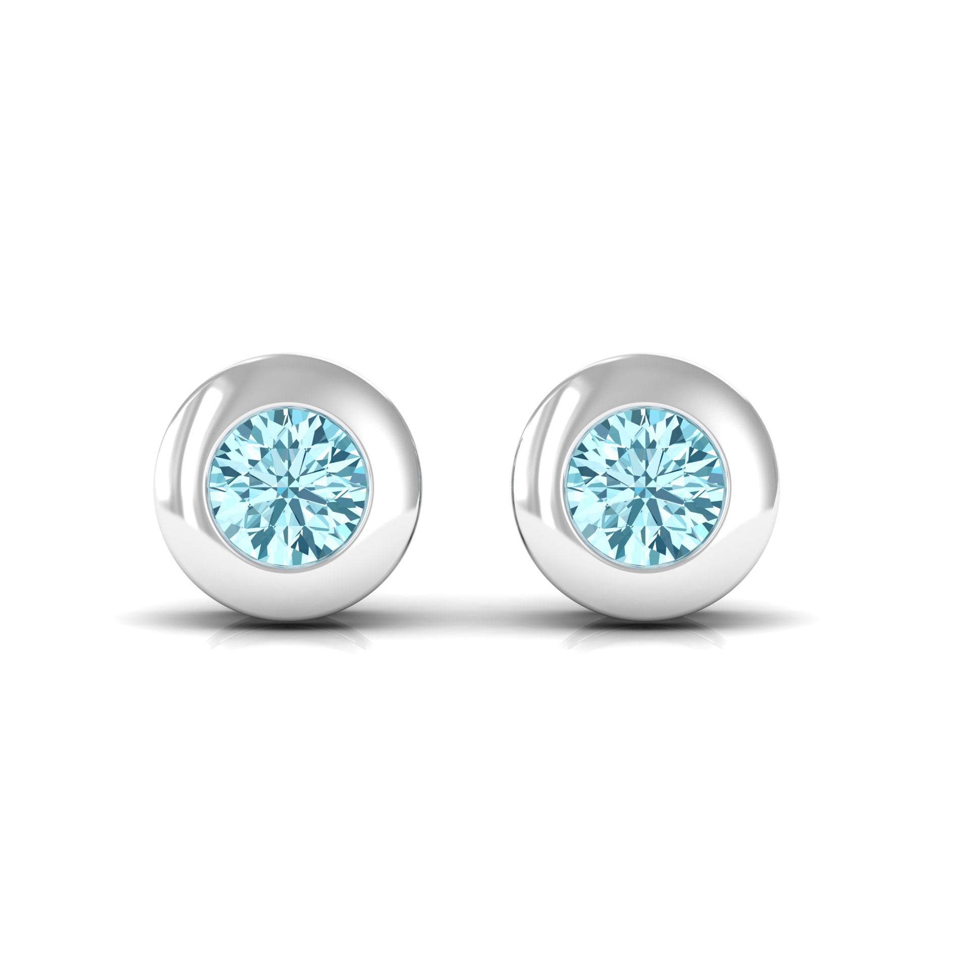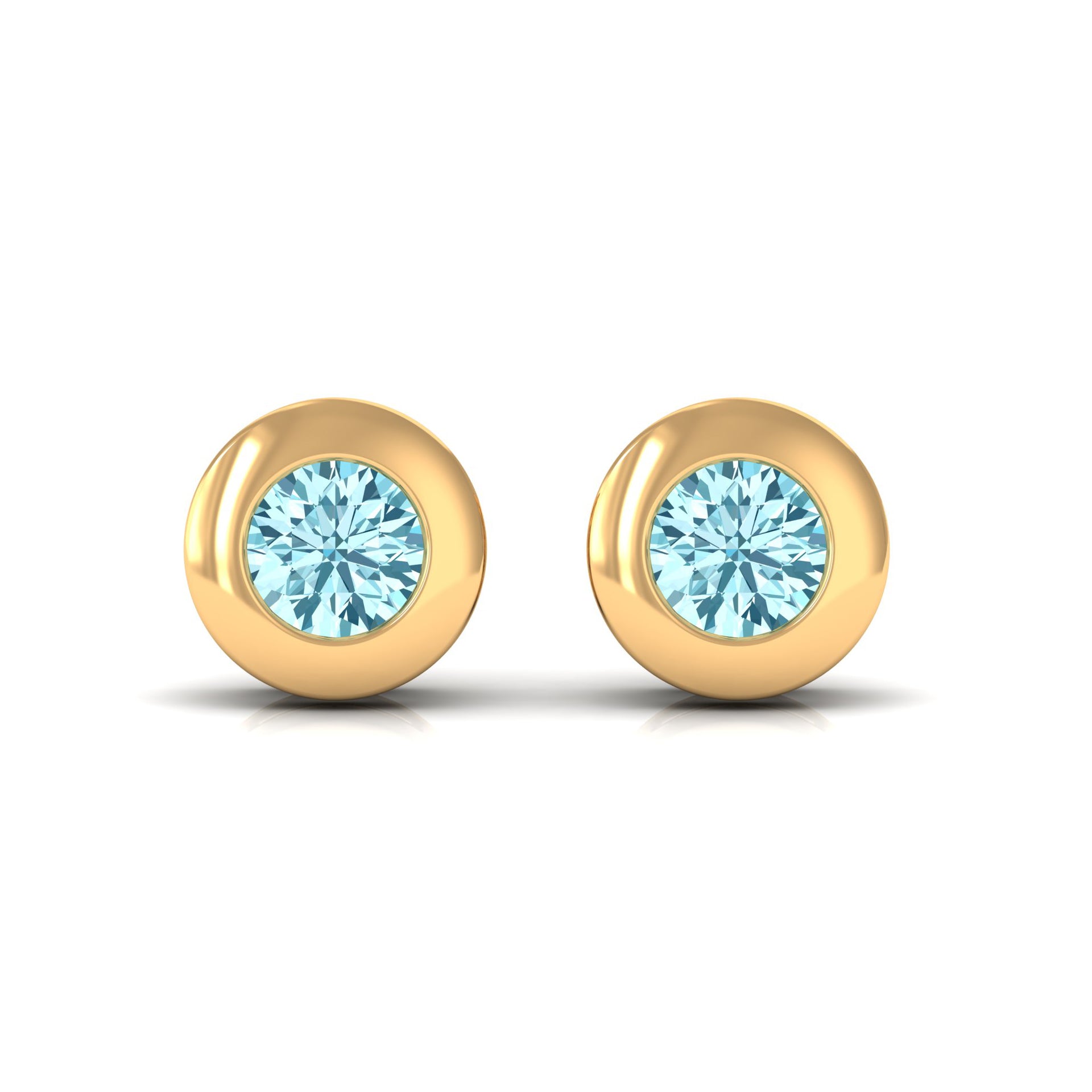 These delicate Aquamarine Earrings are perfect for celebrating any occasion. Featuring a Round Shape Aquamarine secured in Bezel Setting set as a Solitaire. The Screw Back Closure will keep these Simple Earrings secured in place. Shine all day in these Aquamarine Stud Earrings for Women as you pair them with your casual, formal, or evening attire.