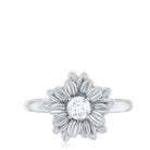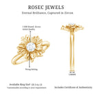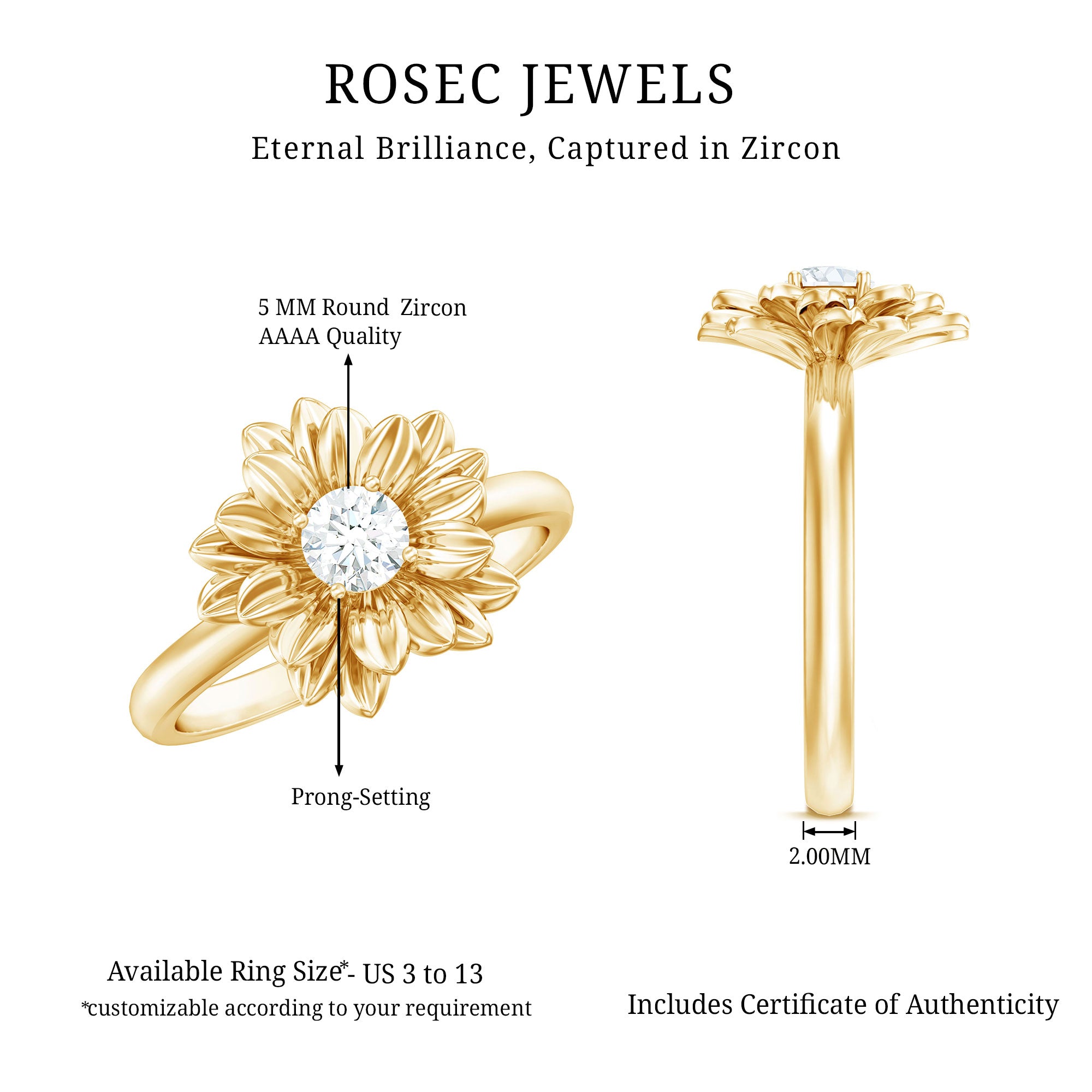 Adorn your finger with this beautiful Zircon Flower Ring, crafted with a Round Cut Cubic Zirconia in a Prong Setting and made from Gold. This Engagement ring is a stunning piece of jewelry that will bring a touch of natures beauty to your look.