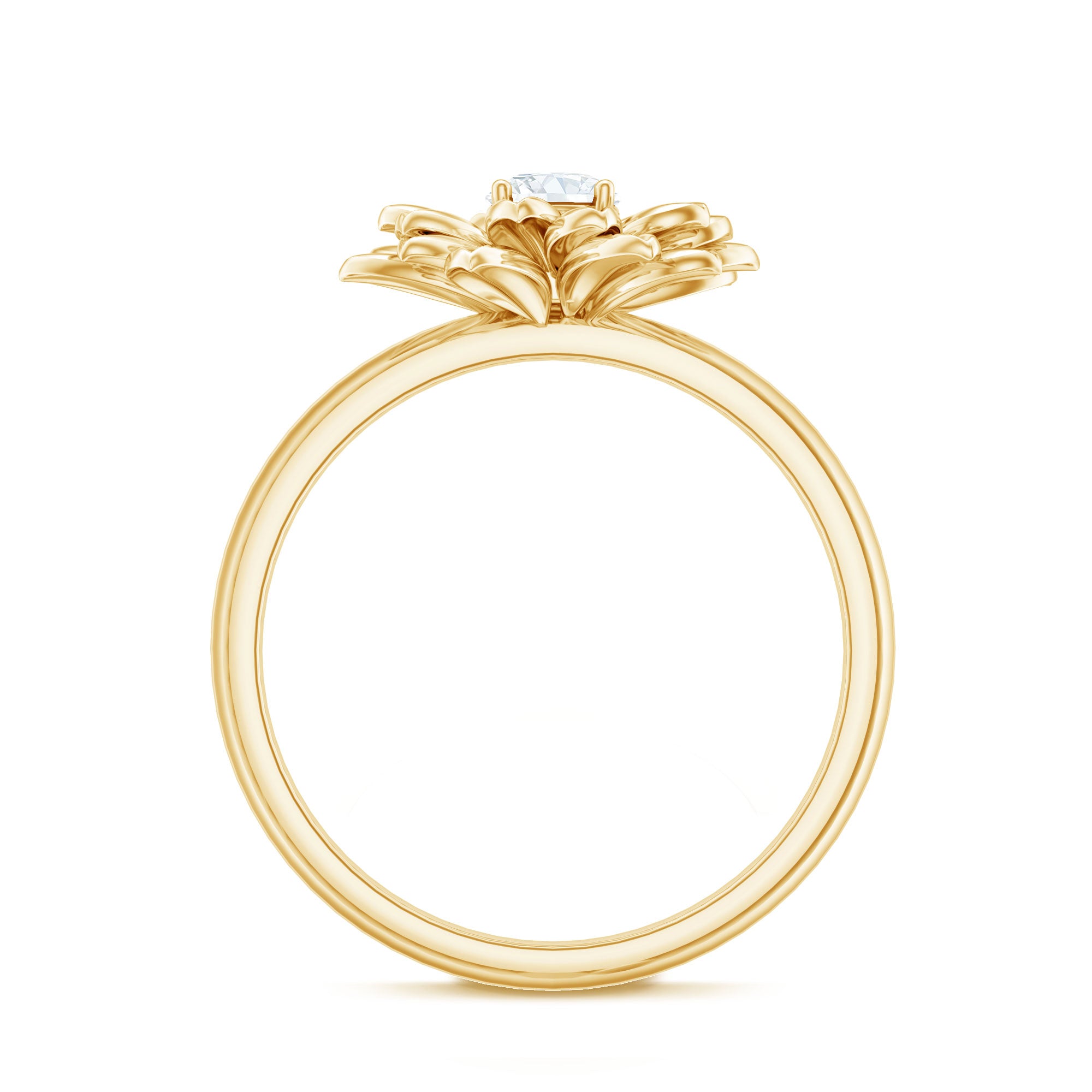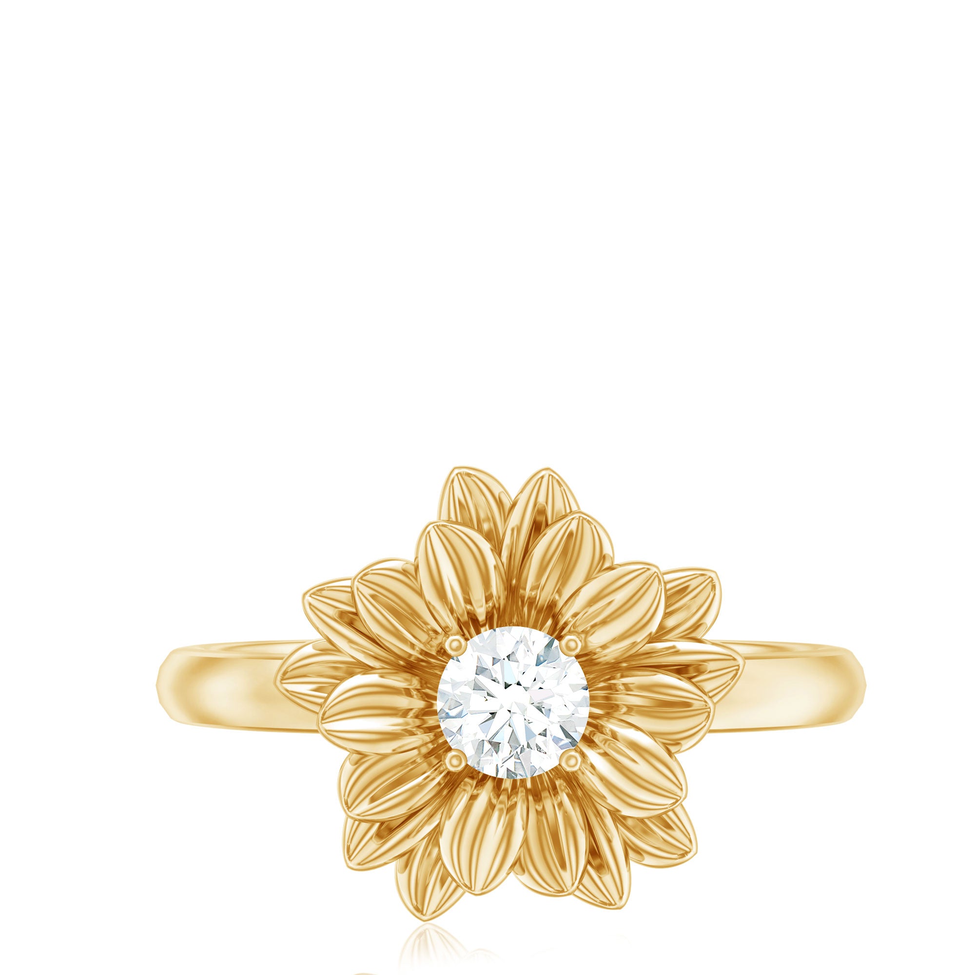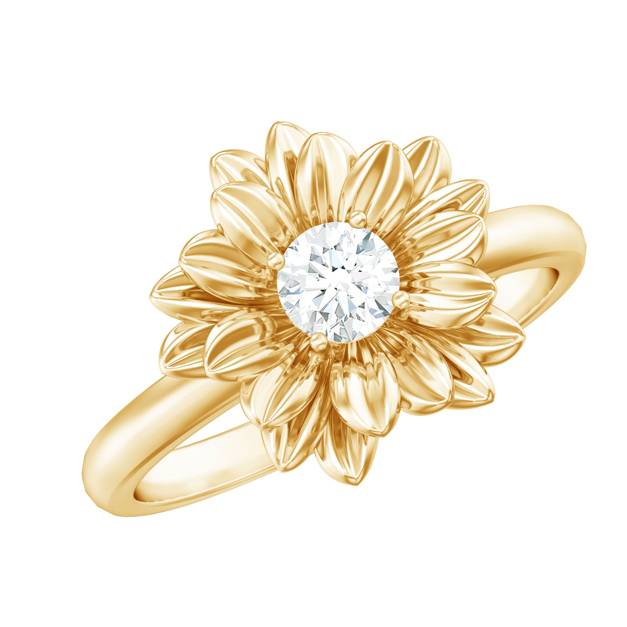 1/4 CT Round Cut Cubic Zirconia and Gold Flower Engagement Ring