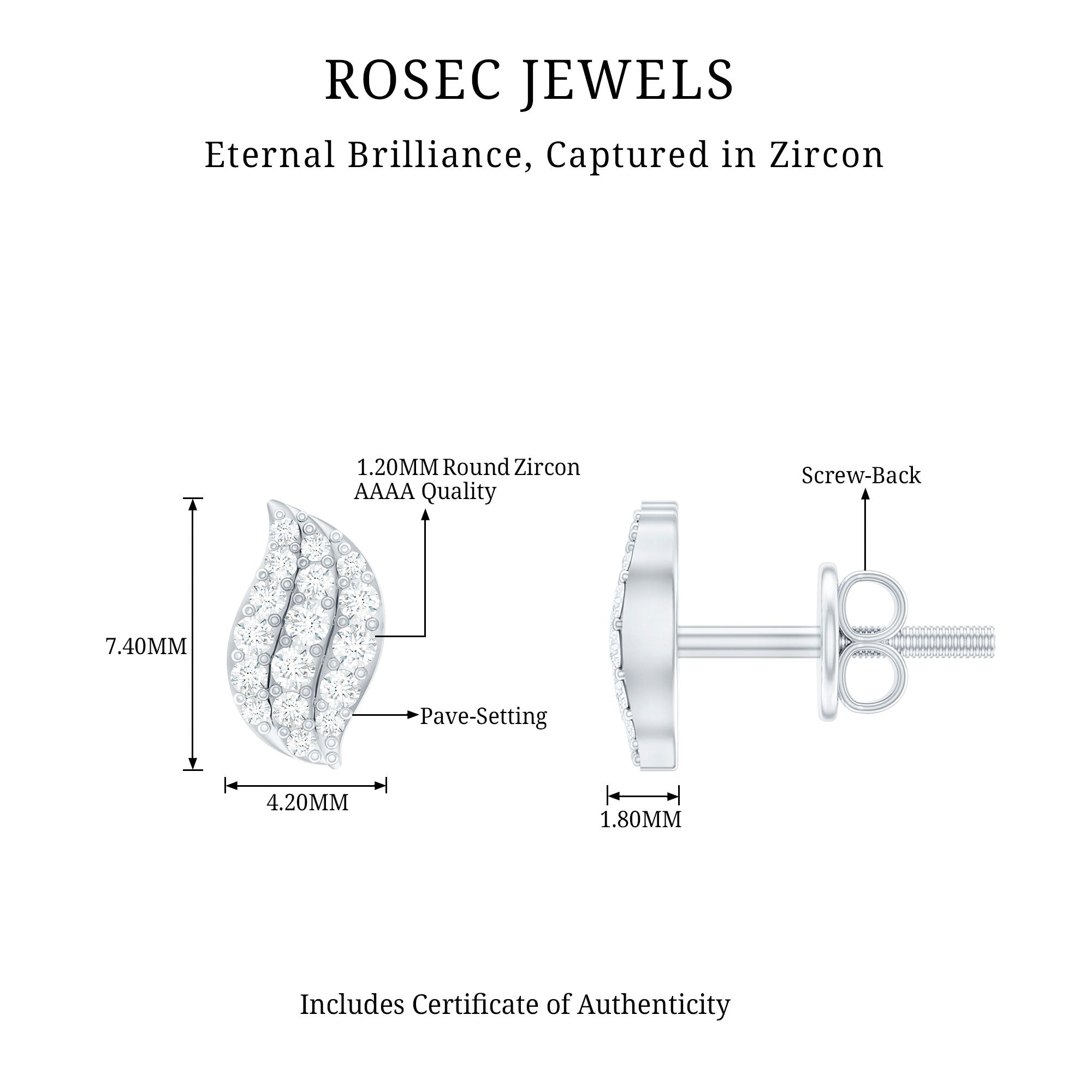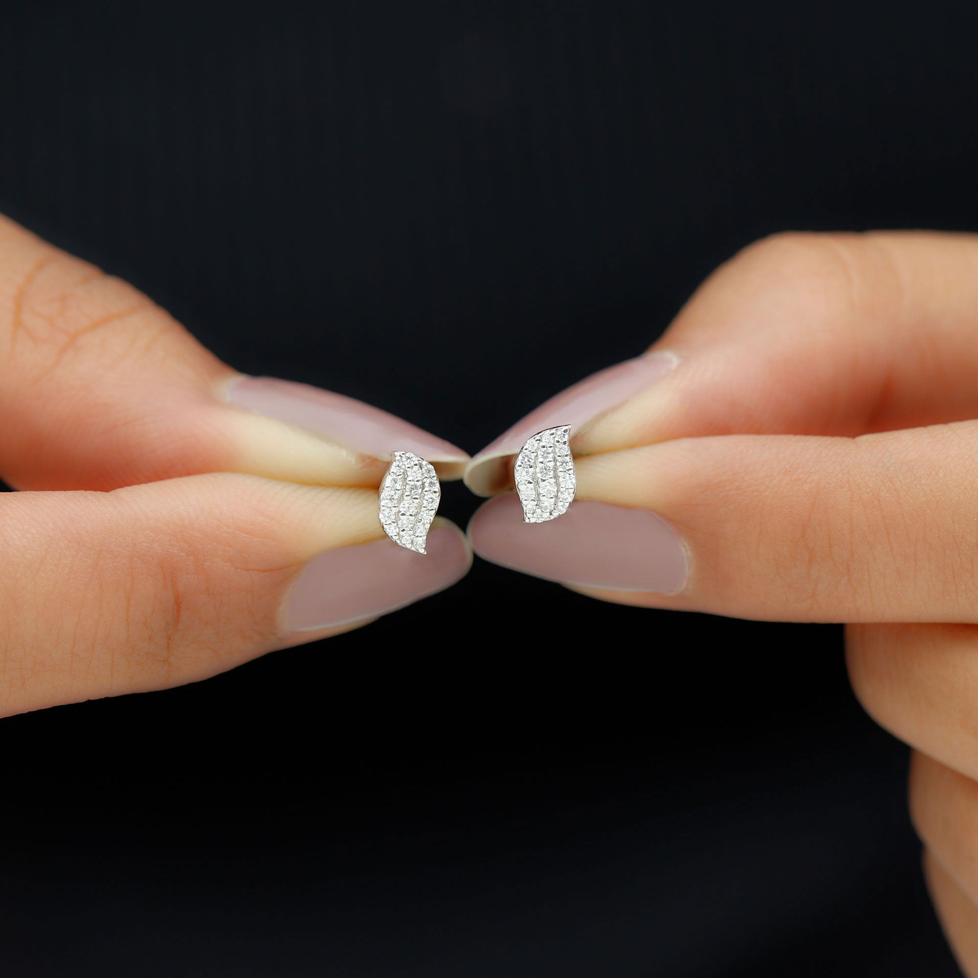 1/4 CT Zircon Gold Leaf Stud Earrings in Pave Setting