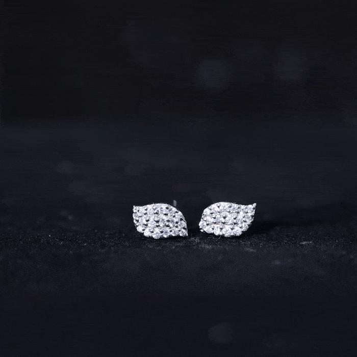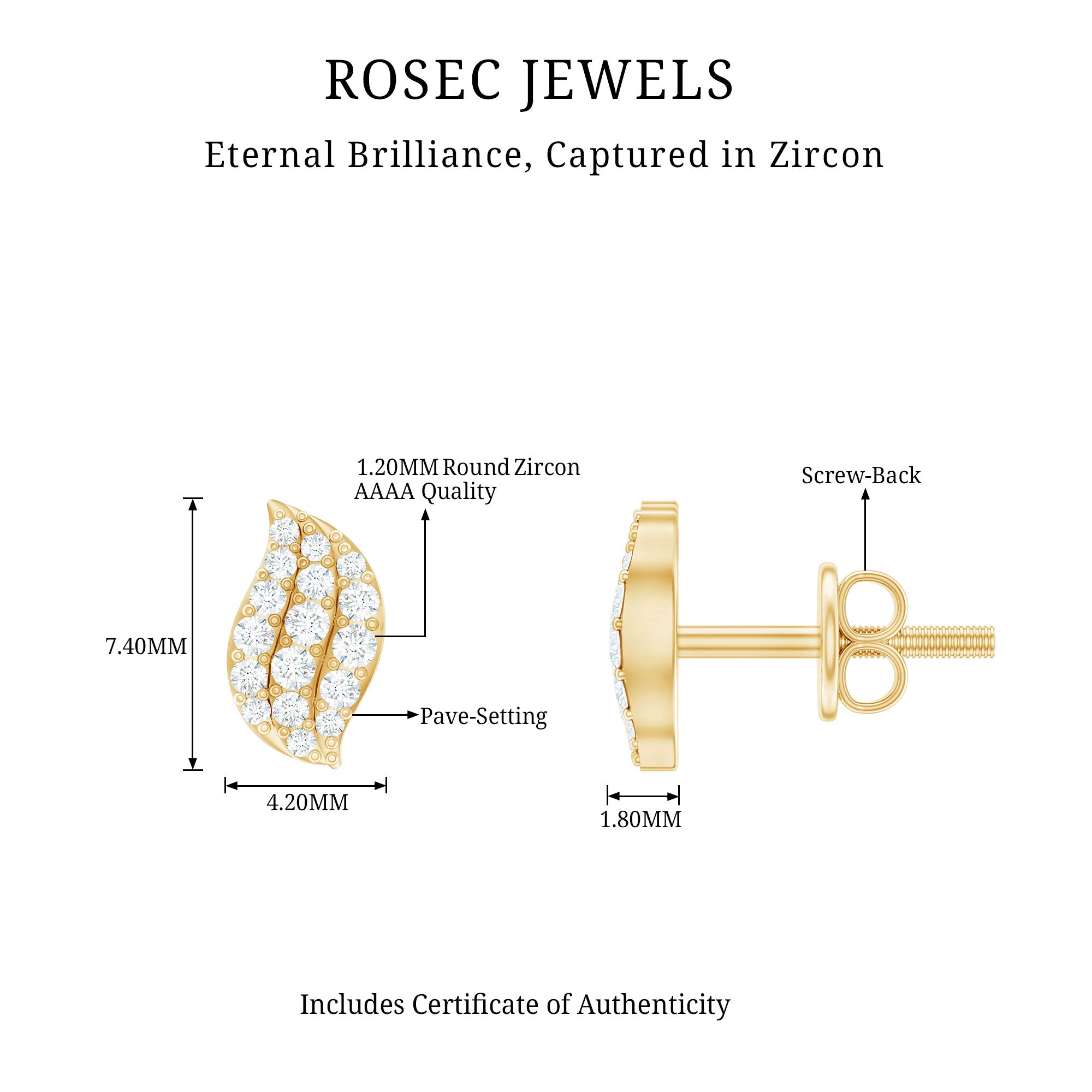 1/4 CT Zircon Gold Leaf Stud Earrings in Pave Setting