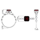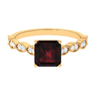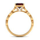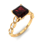 1.5 CT Asscher Cut Garnet Solitaire Engagement Ring with Diamond Side Stones