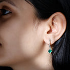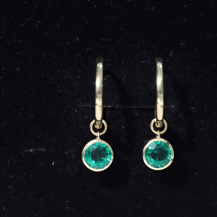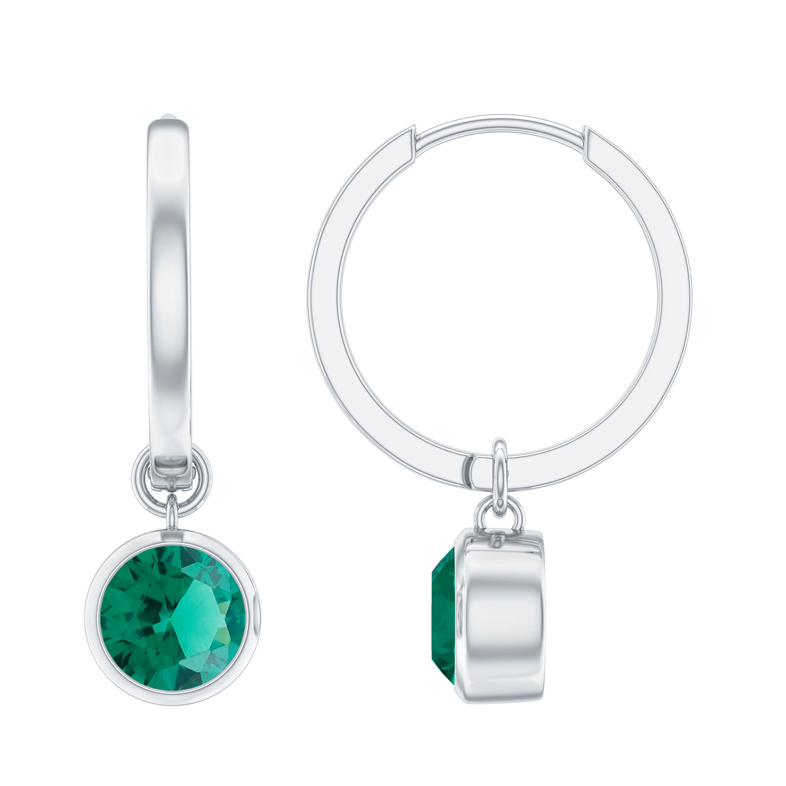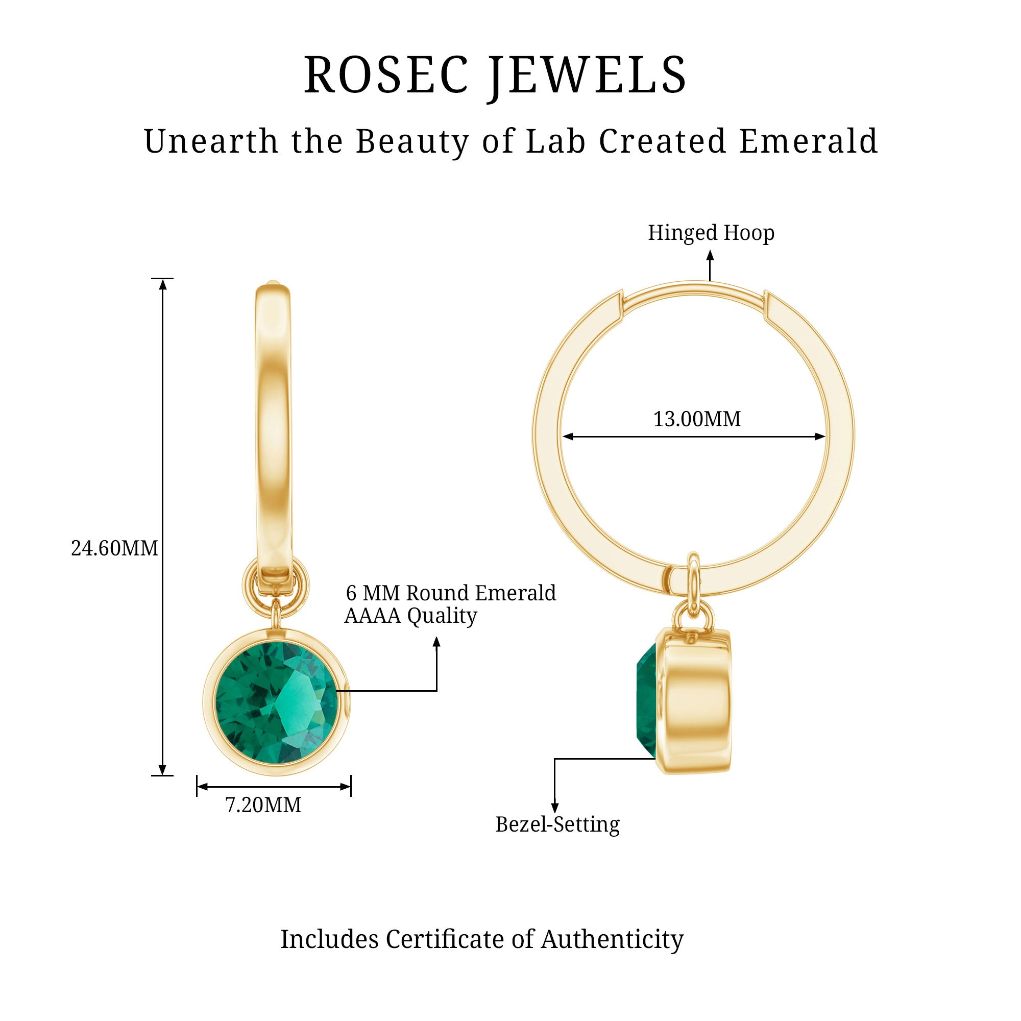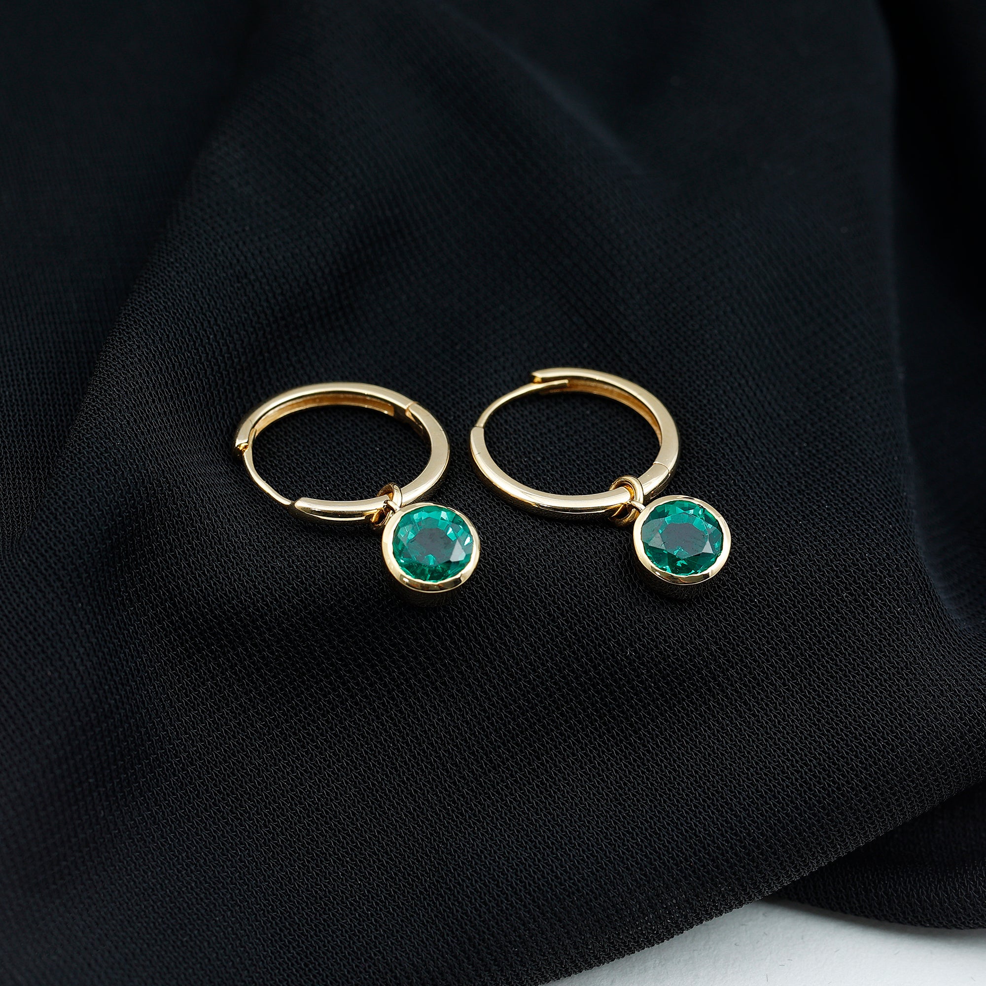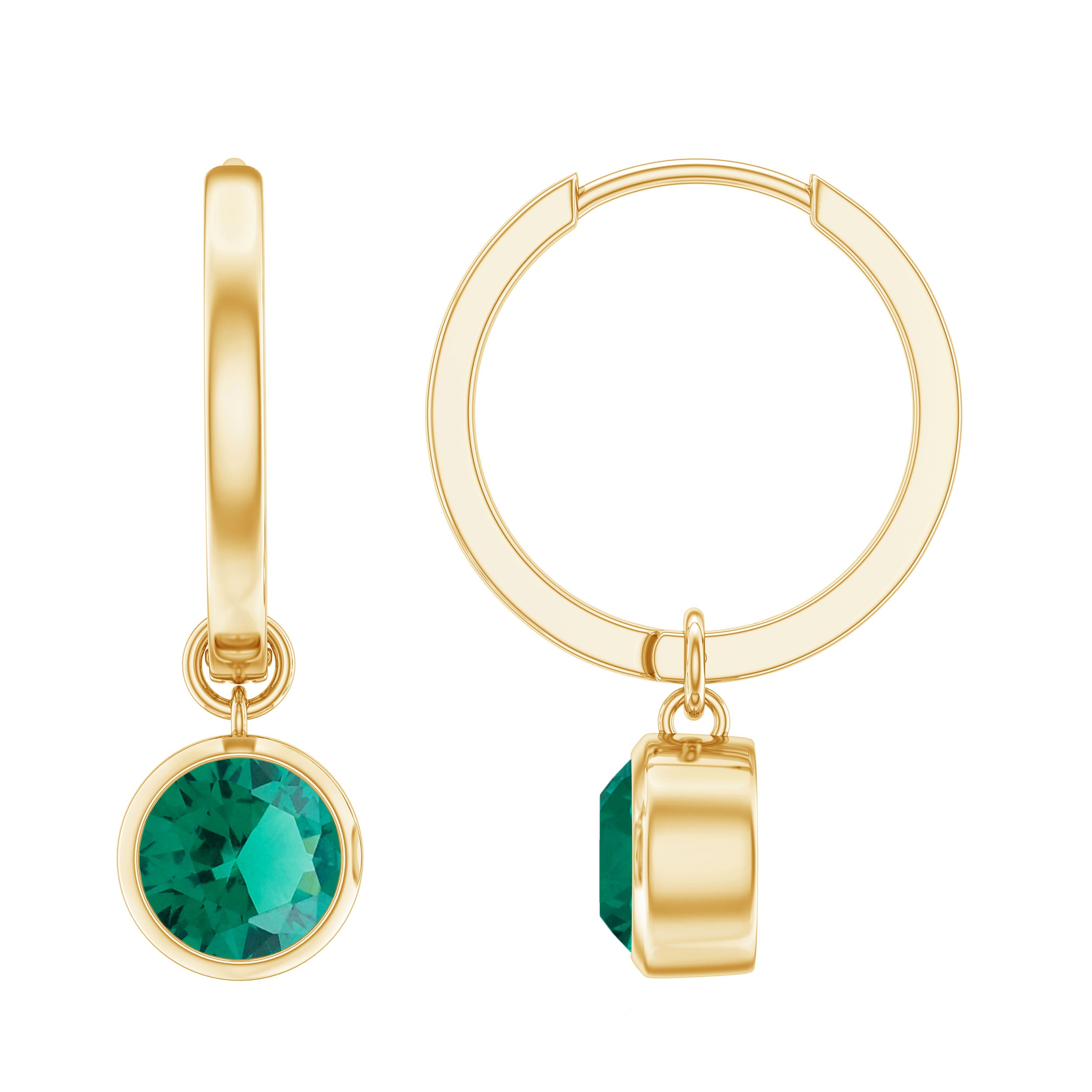 Your good day just got better with our Solitaire Hoop Earrings. Grab these amazing Created Emerald Earrings for your blooming lady love. These Contemporary Hoop Earrings are embellished with Brilliant Round Cut Created Emerald set in a Bezel Setting as solitaire, crafted in Gold.
