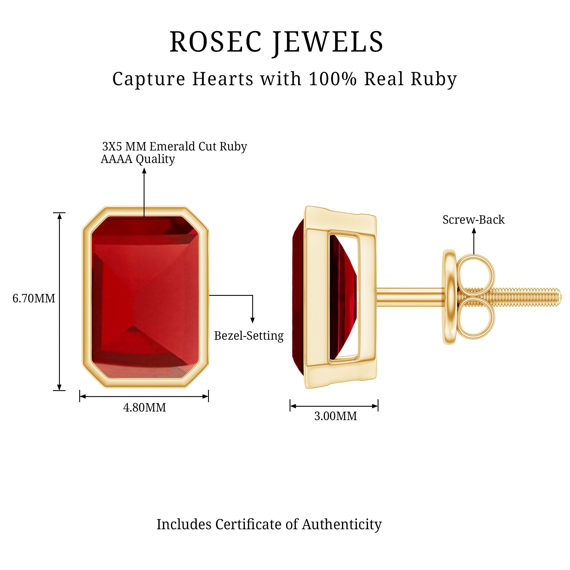 1.5 CT Bezel Set Octagon Cut Created Ruby Solitaire Stud Earrings