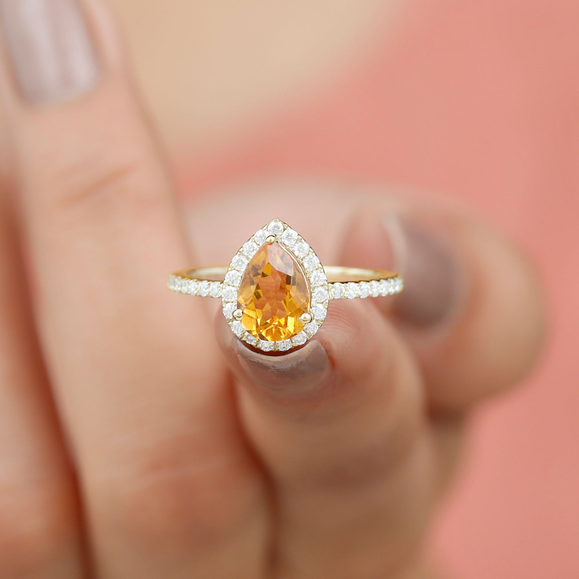 1.5 CT Citrine Teardrop Ring with Diamond Halo