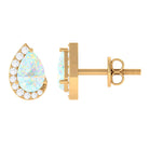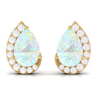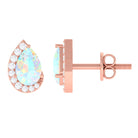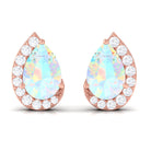 1.5 CT Ethiopian Opal Teardrop Stud Earrings with Diamond