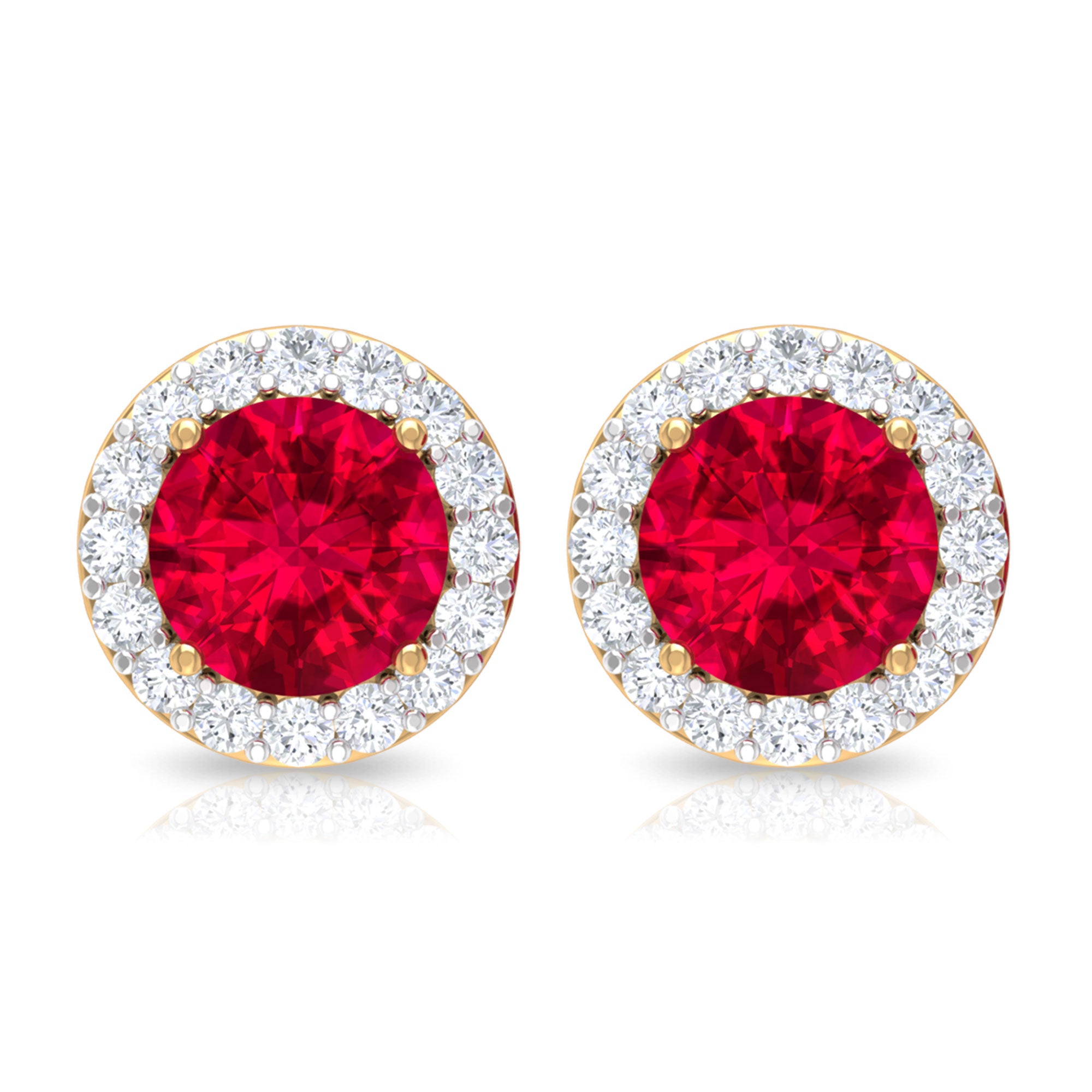 1.5 CT Lab Grown Ruby and Diamond Halo Classic Stud Earring