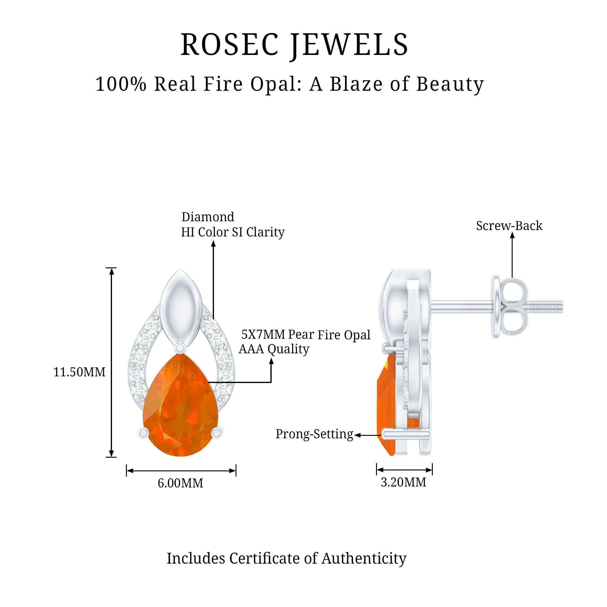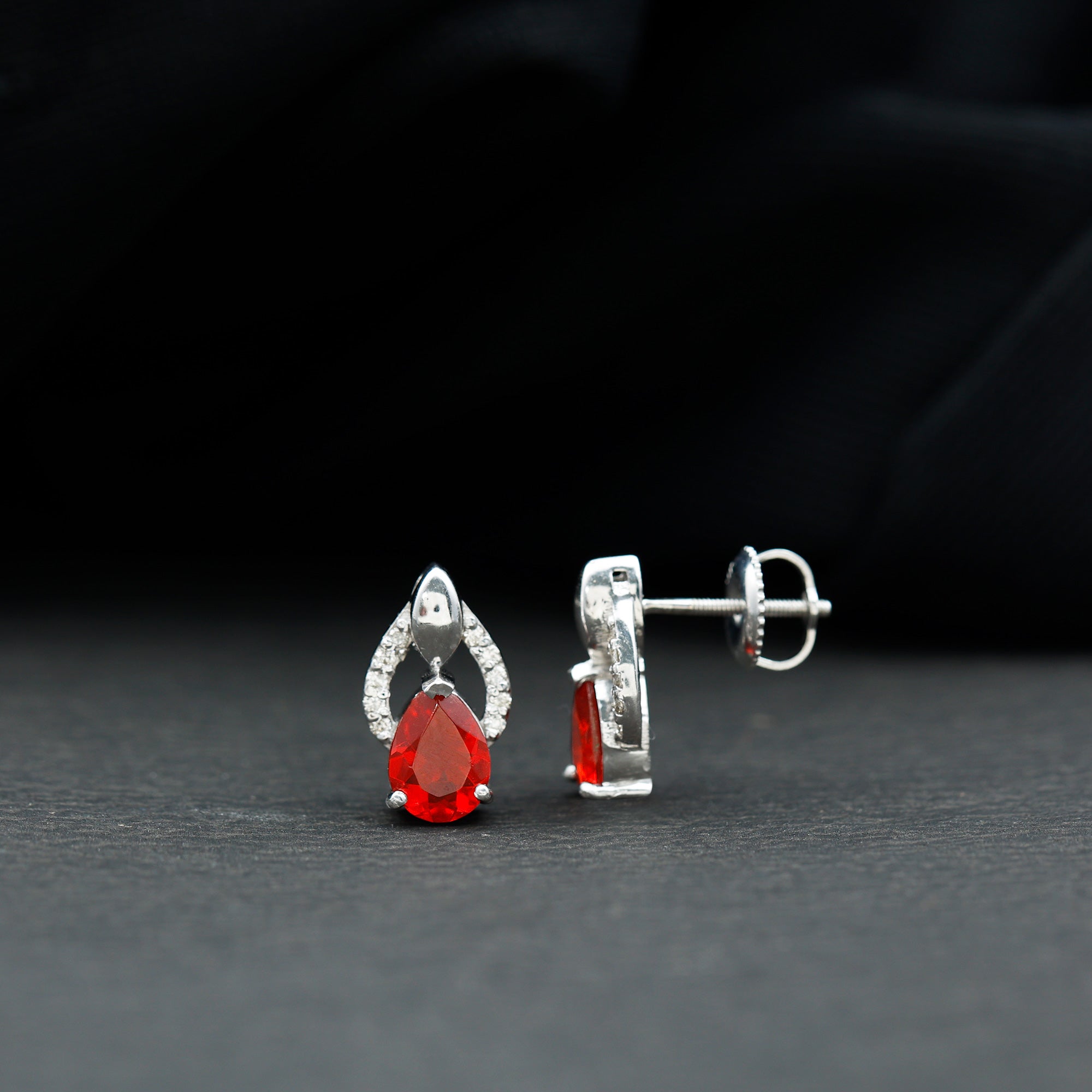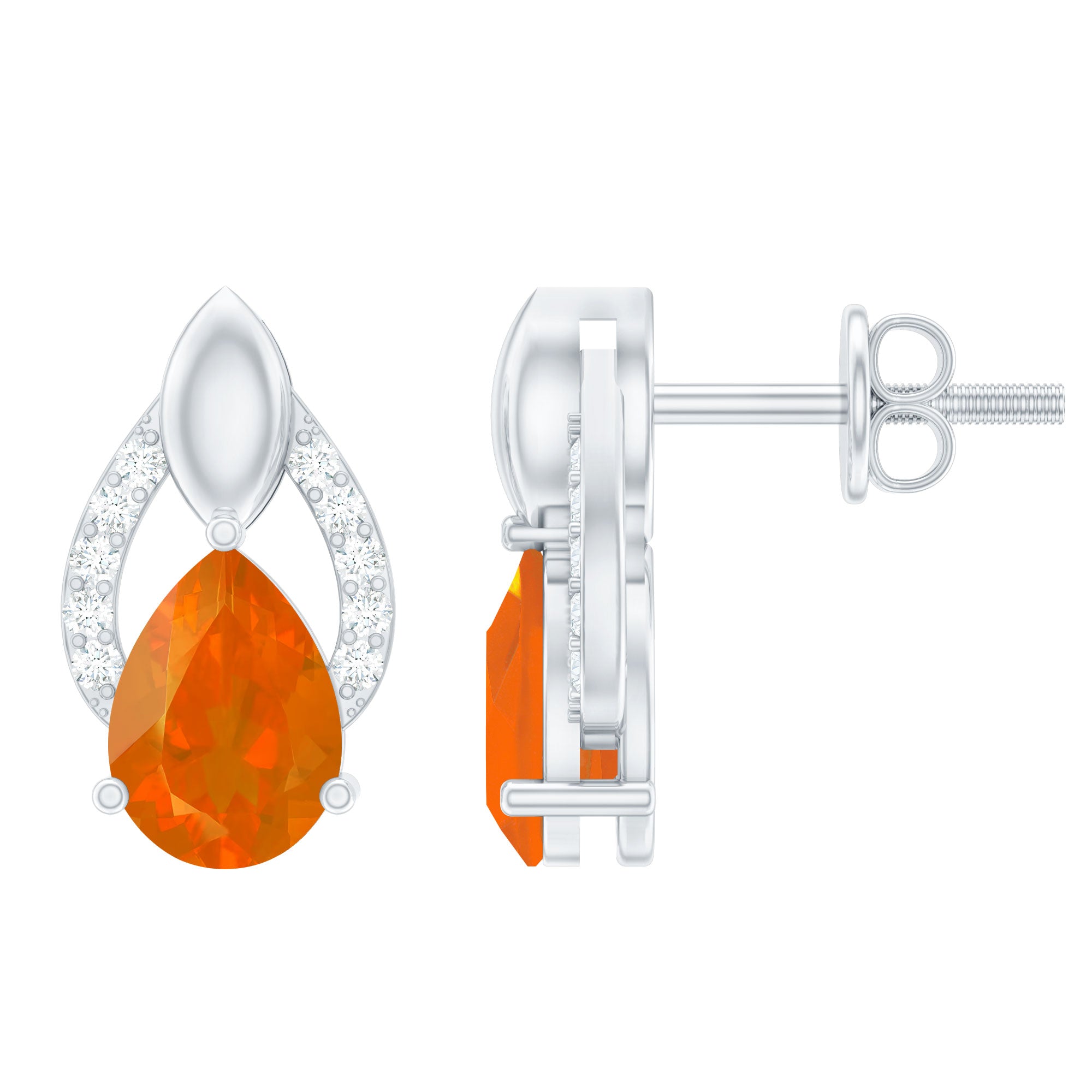 1.5 CT Pear Cut Fire Opal Bridal Stud Earrings with Diamond Accent