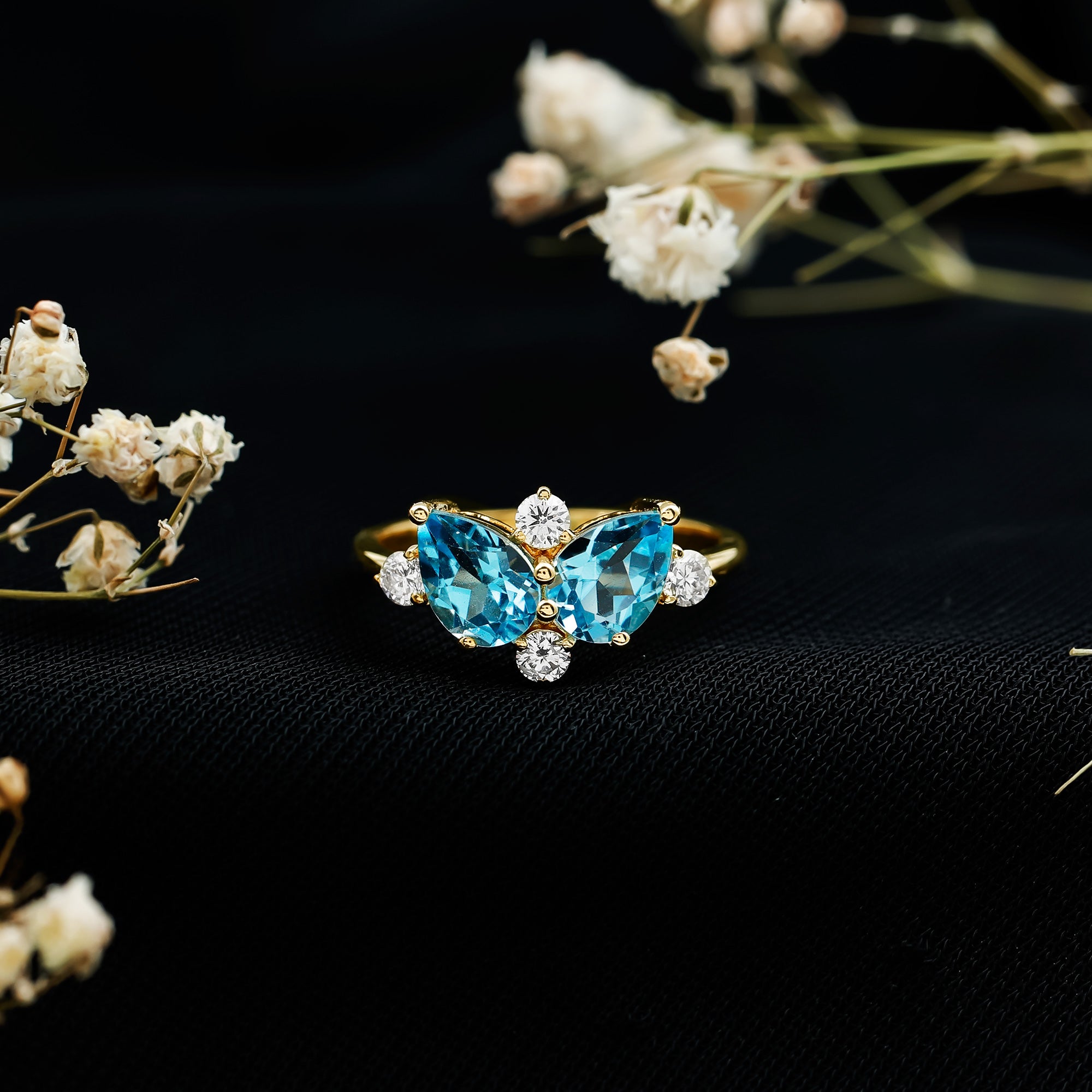 1.5 CT Pear Cut Swiss Blue Topaz Cluster Promise Ring with Diamond