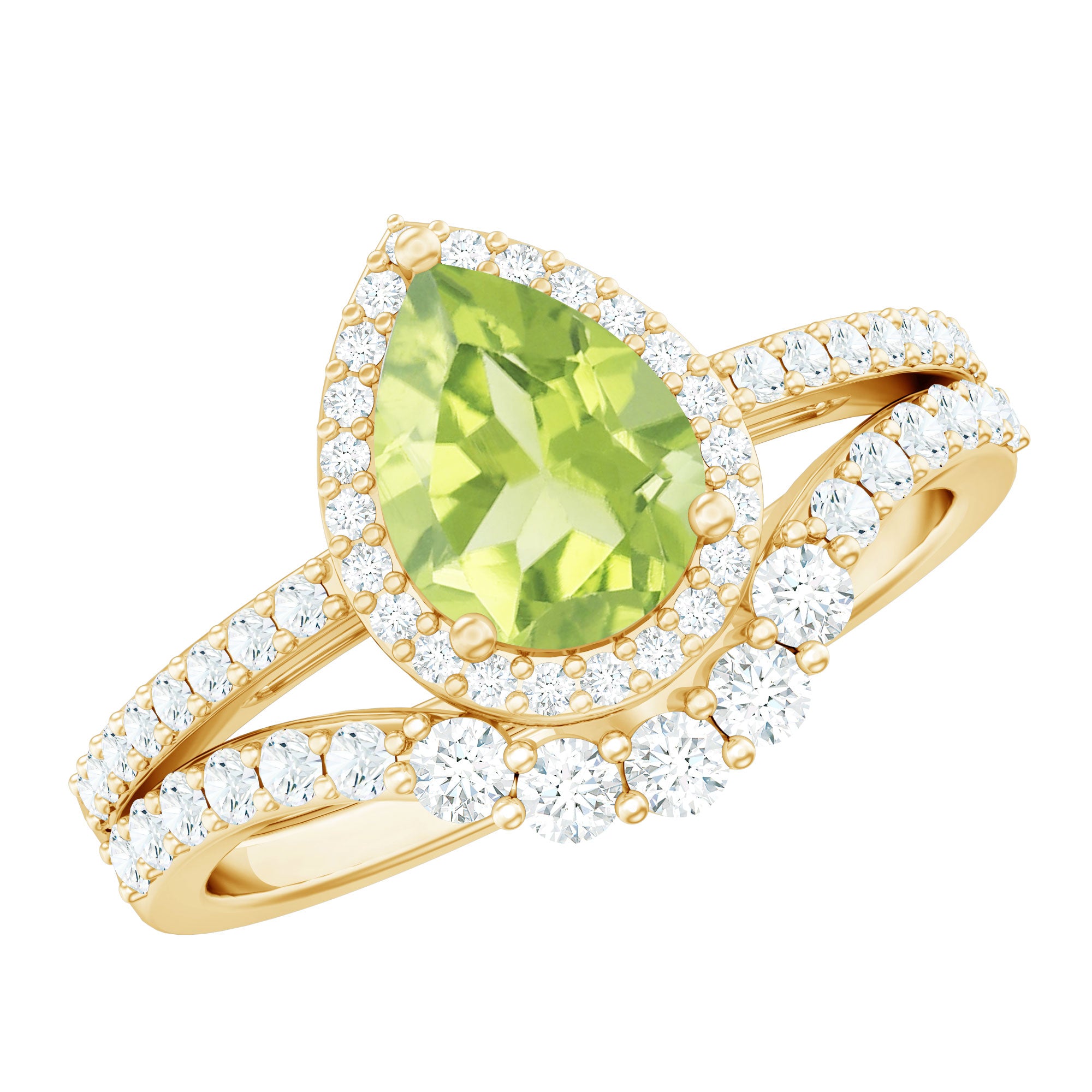 1.5 CT Peridot Designer Teardrop Ring Set with Moissanite Halo