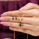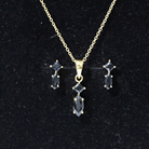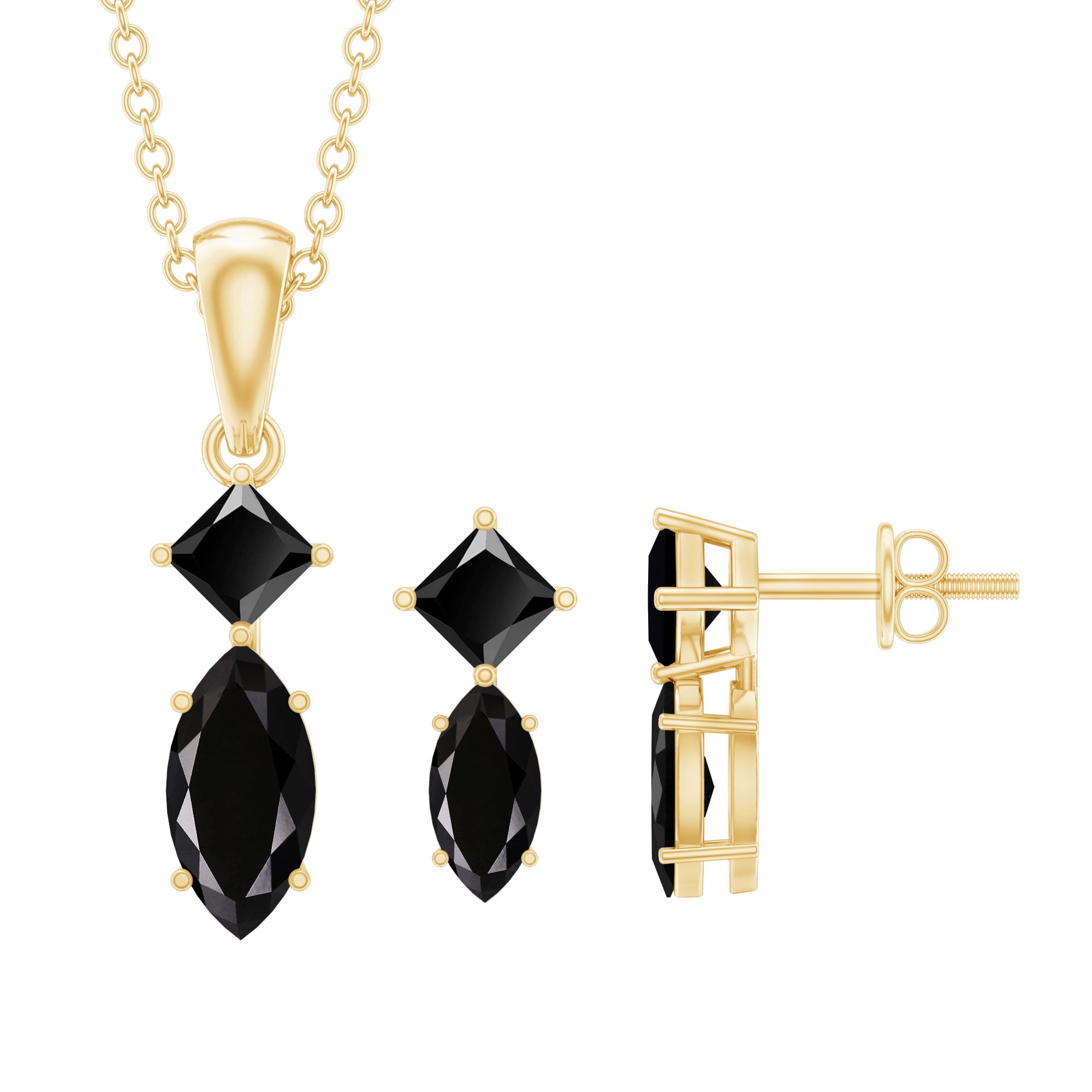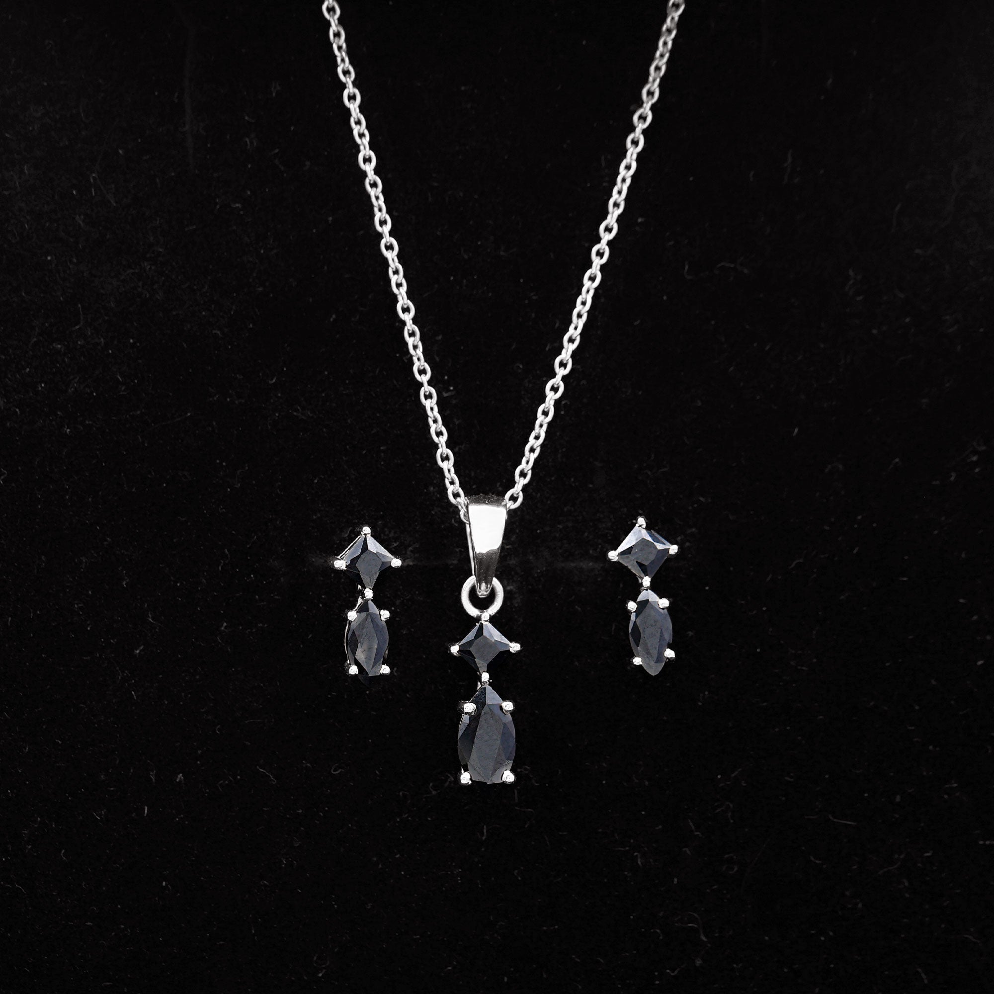This Beautiful and Unique Dangle Jewelry Set with Princess and Marquise Shape Black Spinel in prong setting, this jewelry set will add on the glam of your attire for the evening.