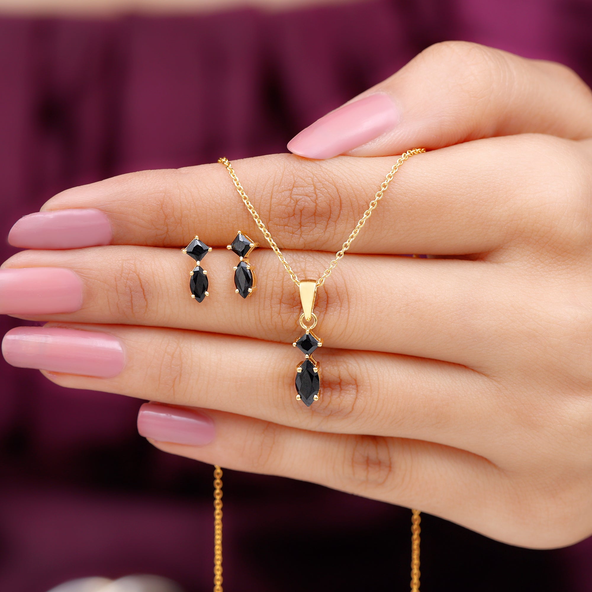 1.5 CT Princess and Marquise Shape Black Spinel Dangle Jewelry Set for Women