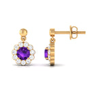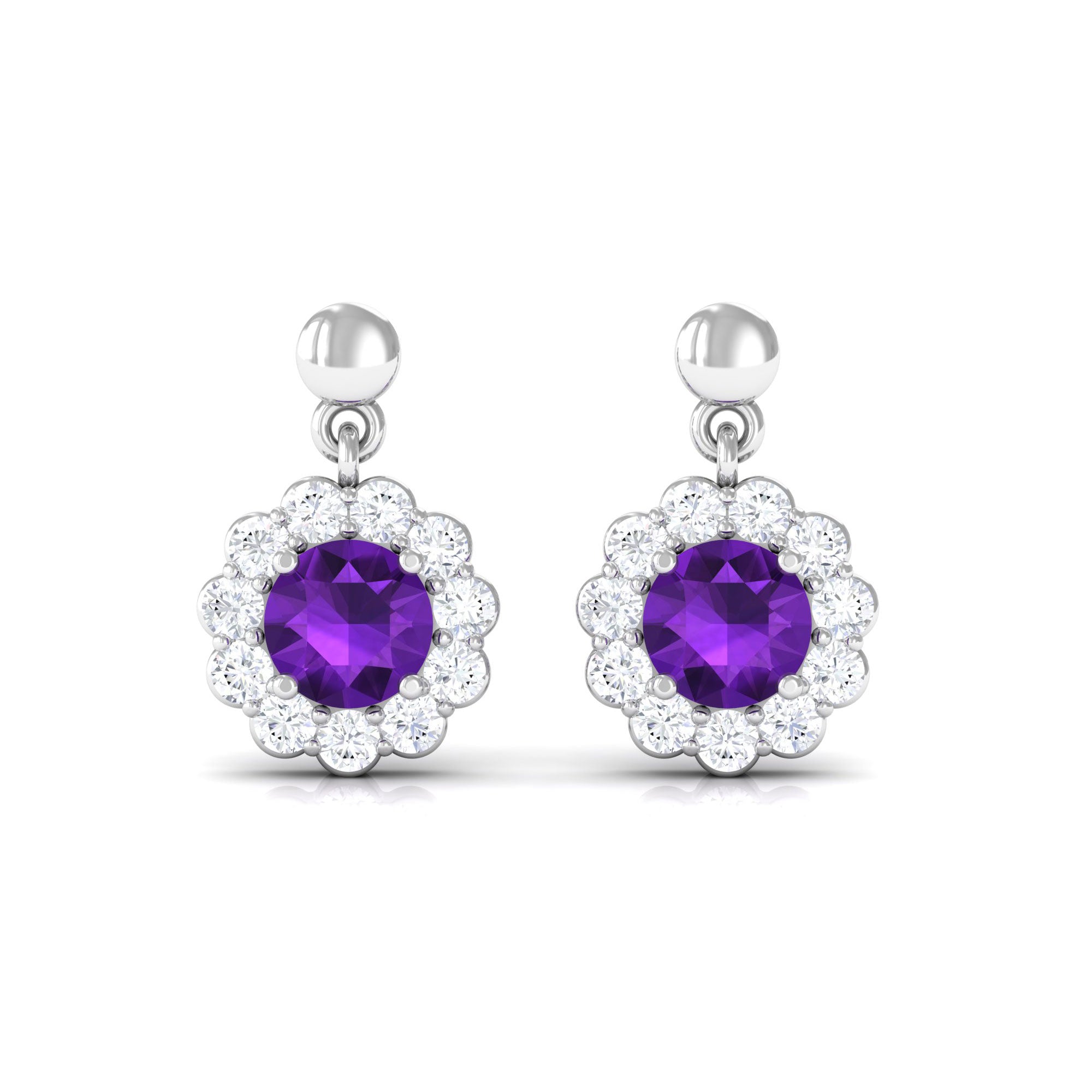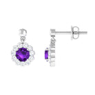 1.5 CT Real Amethyst and Diamond Flower Halo Drop Earrings