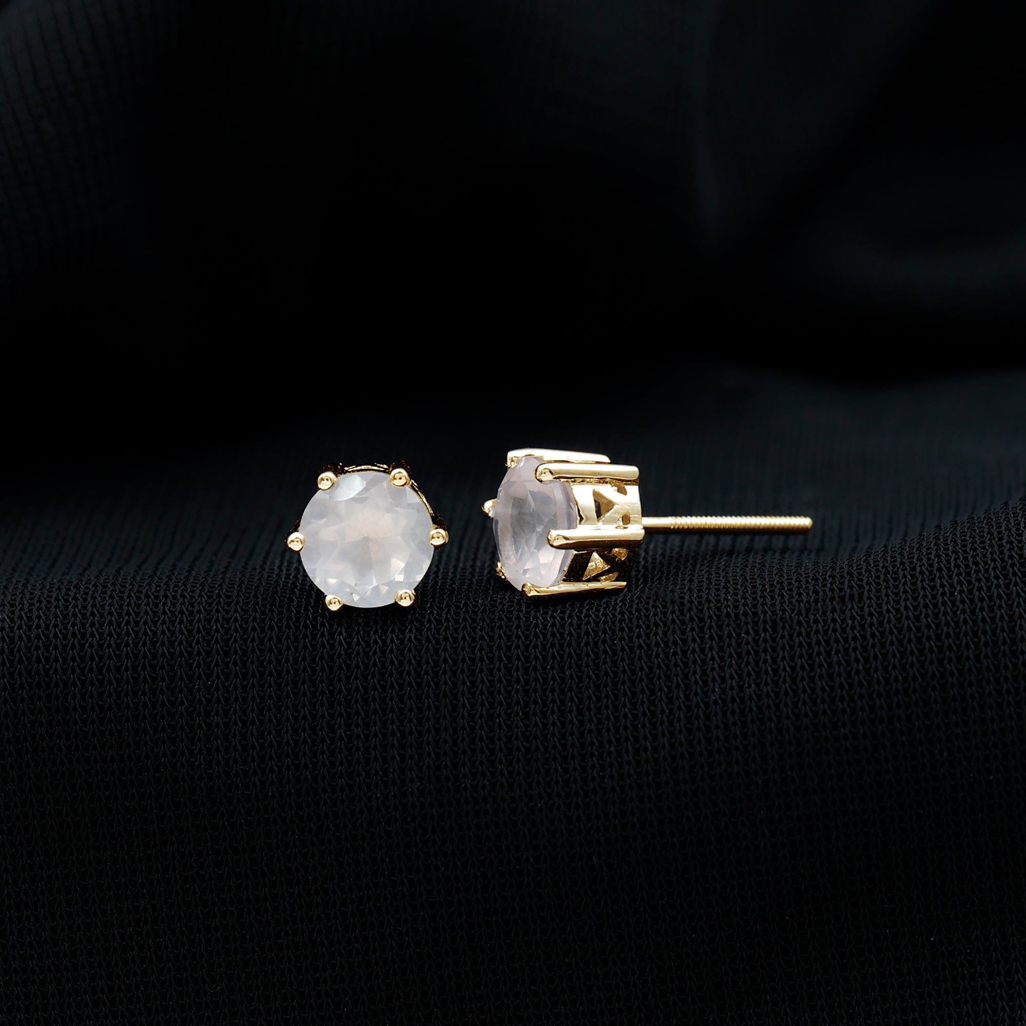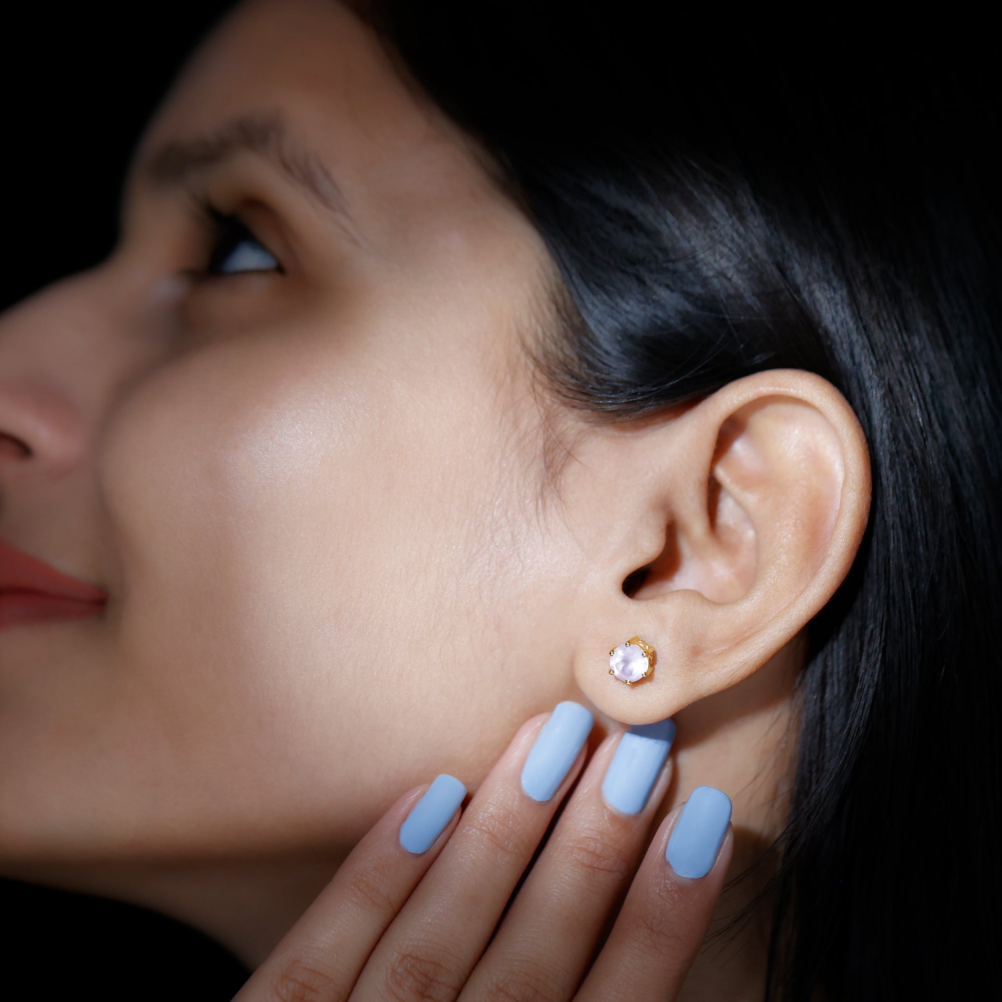 Elevate your style with these stunning Simple Stud Earrings, showcasing Round Cut Rose Quartz stones set in a Claw setting and beautifully crafted from Solid Gold. Despite their simplicity, these solitaire earrings make a statement, adding a touch of elegance and sophistication to any outfit.