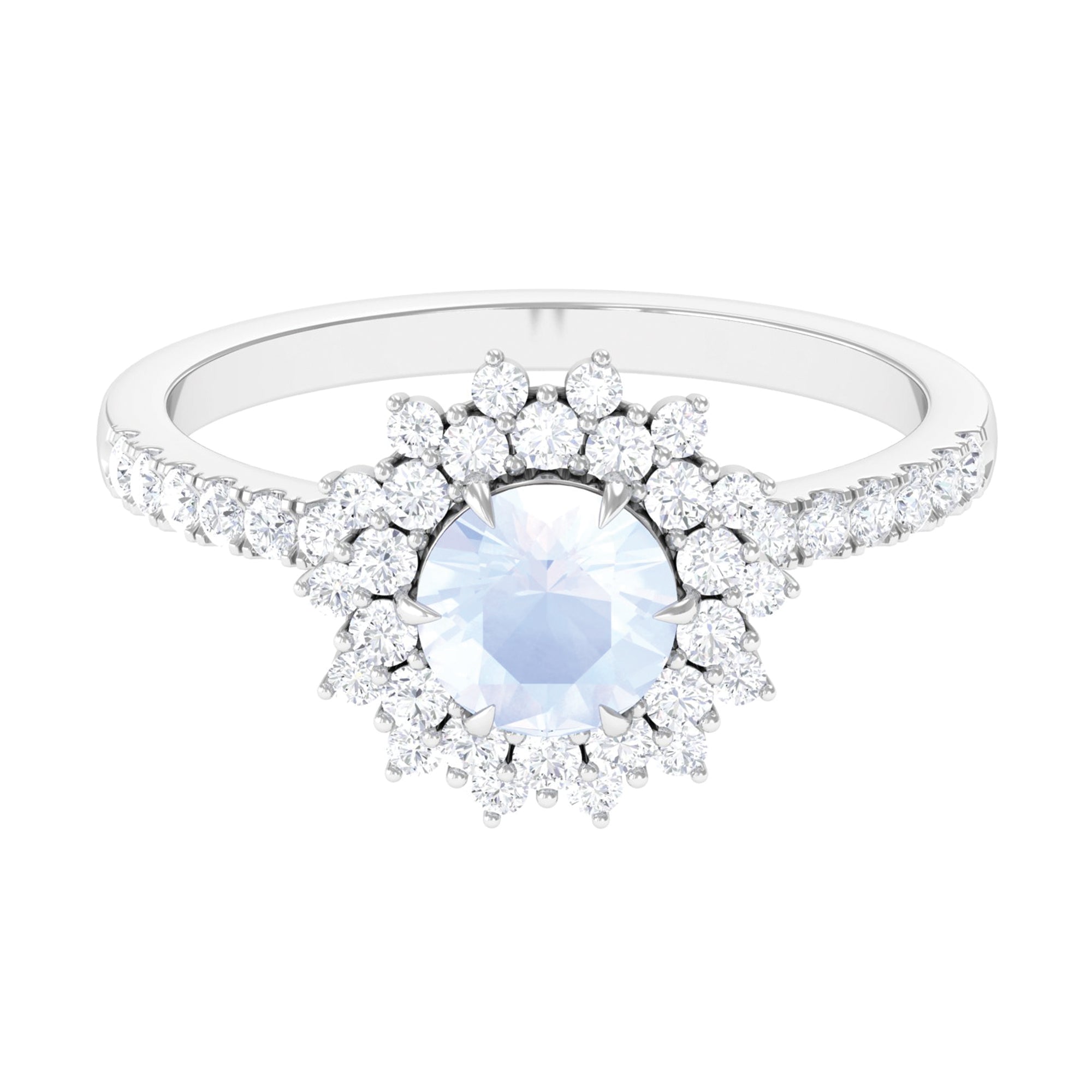 1.5 CT Round Moonstone Statement Engagement Ring with Moissanite