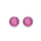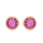 1.5 CT Round Pink Tourmaline Solitaire Stud Earrings in Bezel Setting