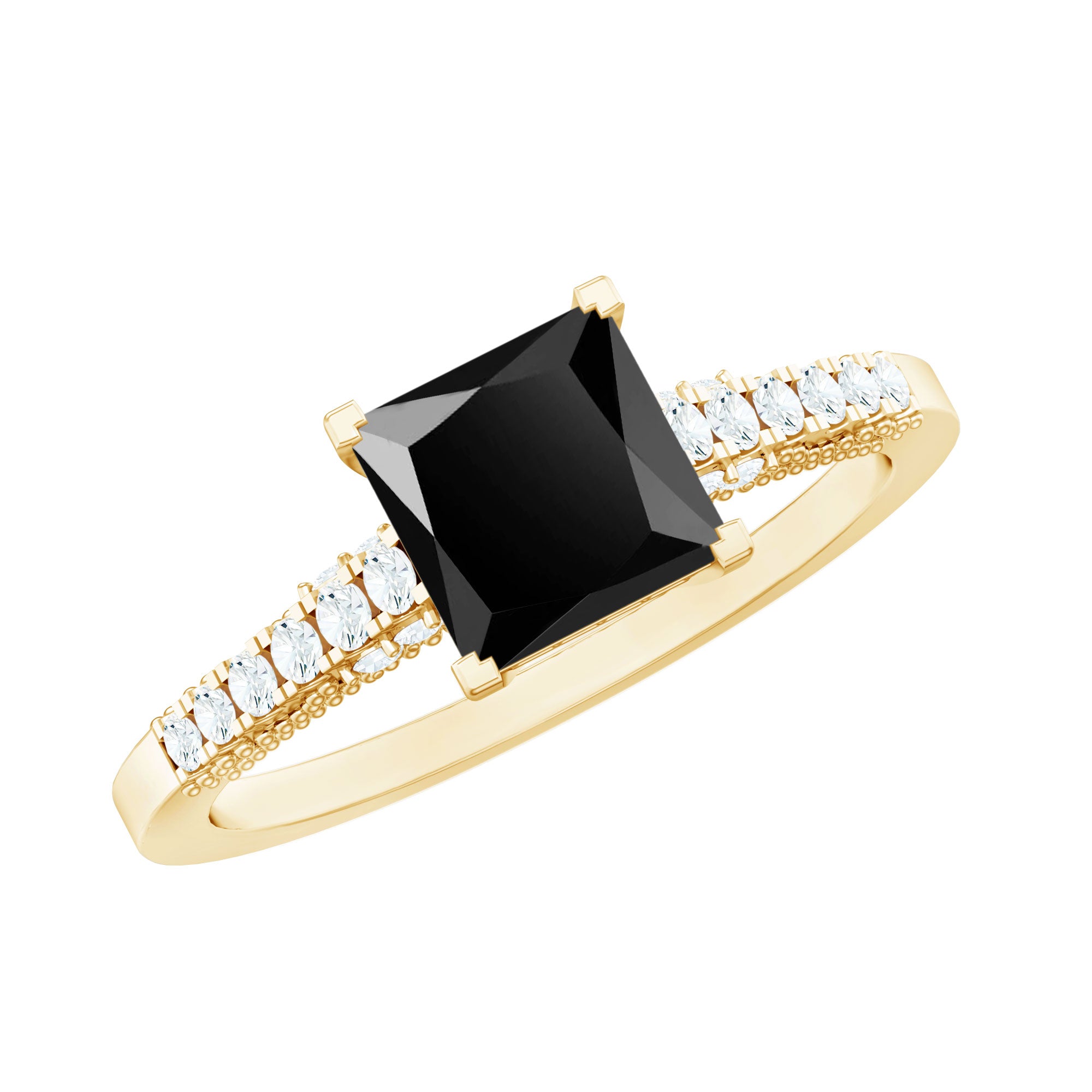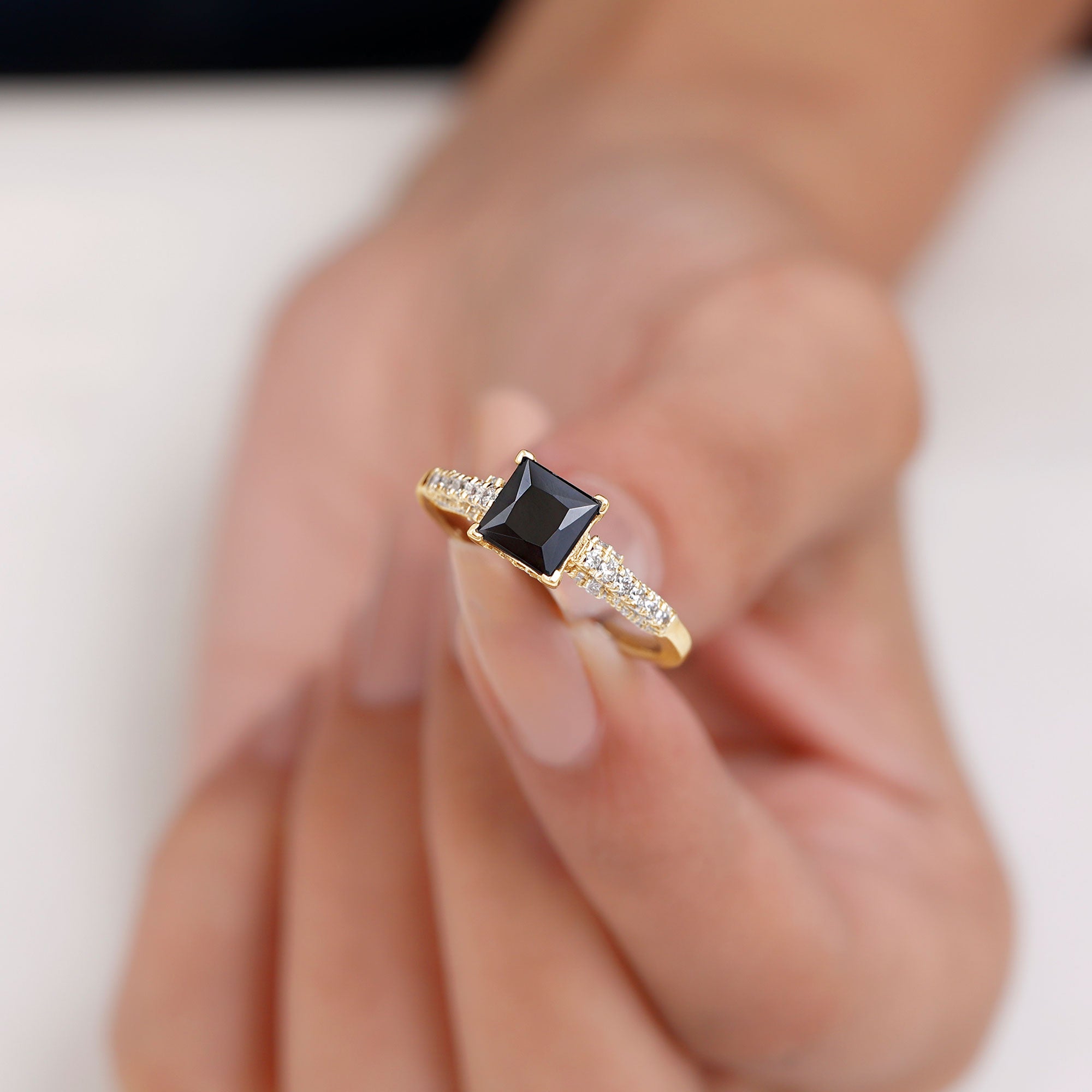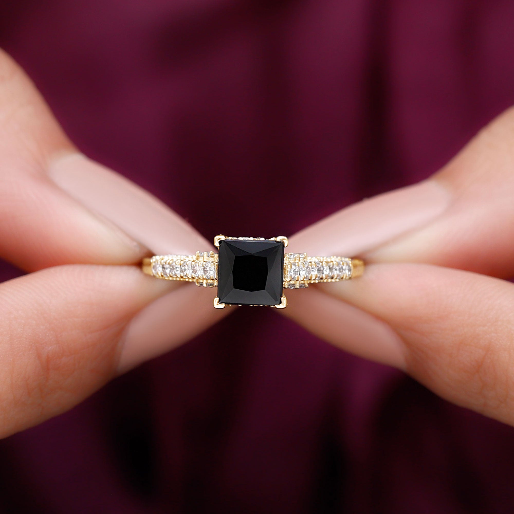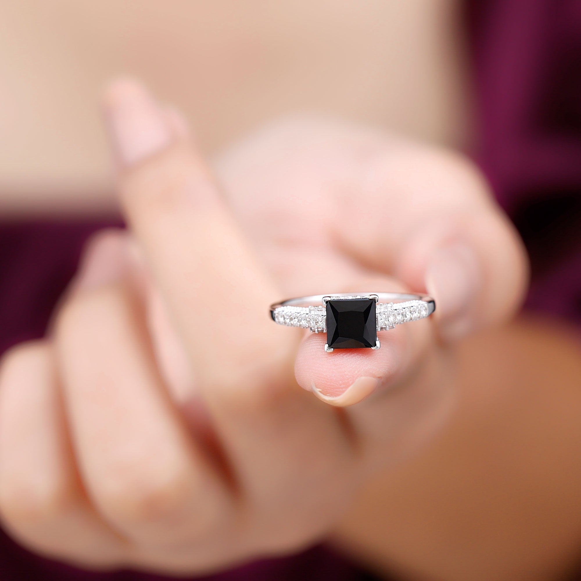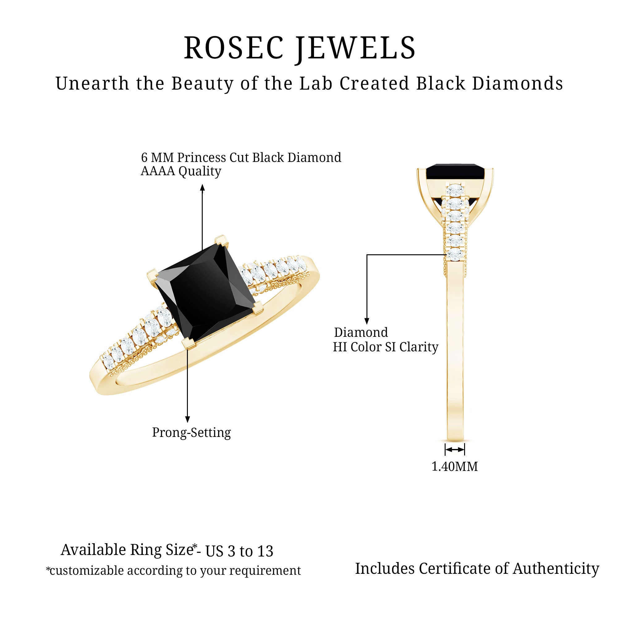 The Solitaire Engagement Ring is crafted with Princess Cut Lab Created Black Diamond and Round Shape Diamond in Prong Setting. This 6 MM Created Black Diamond Solitaire Ring will be an exotic present for a woman to add to her jewelry collection.