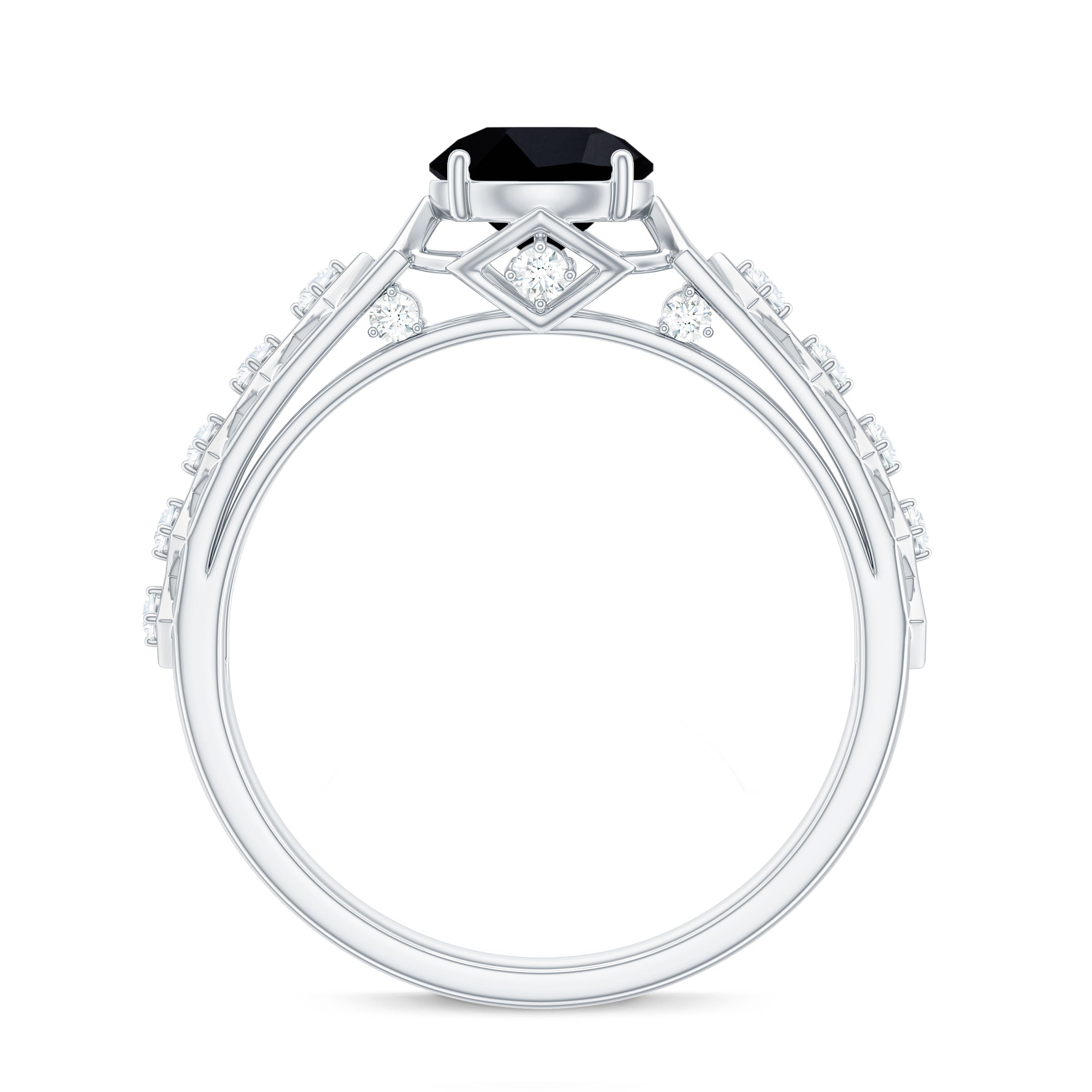 1.50 CT Art Deco Black Spinel Solitaire Ring with Diamond