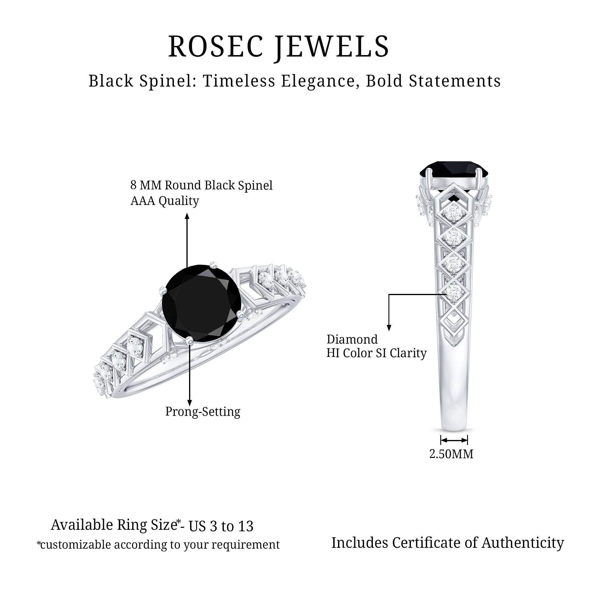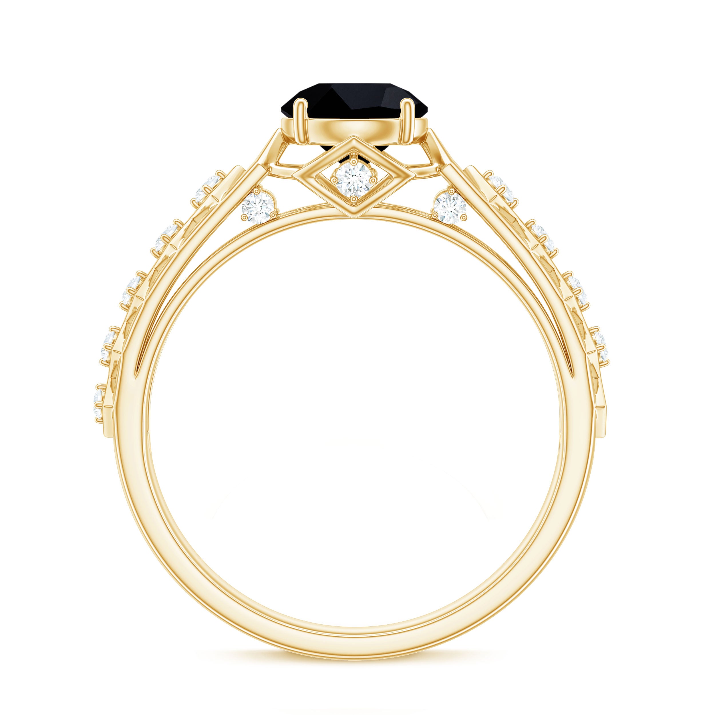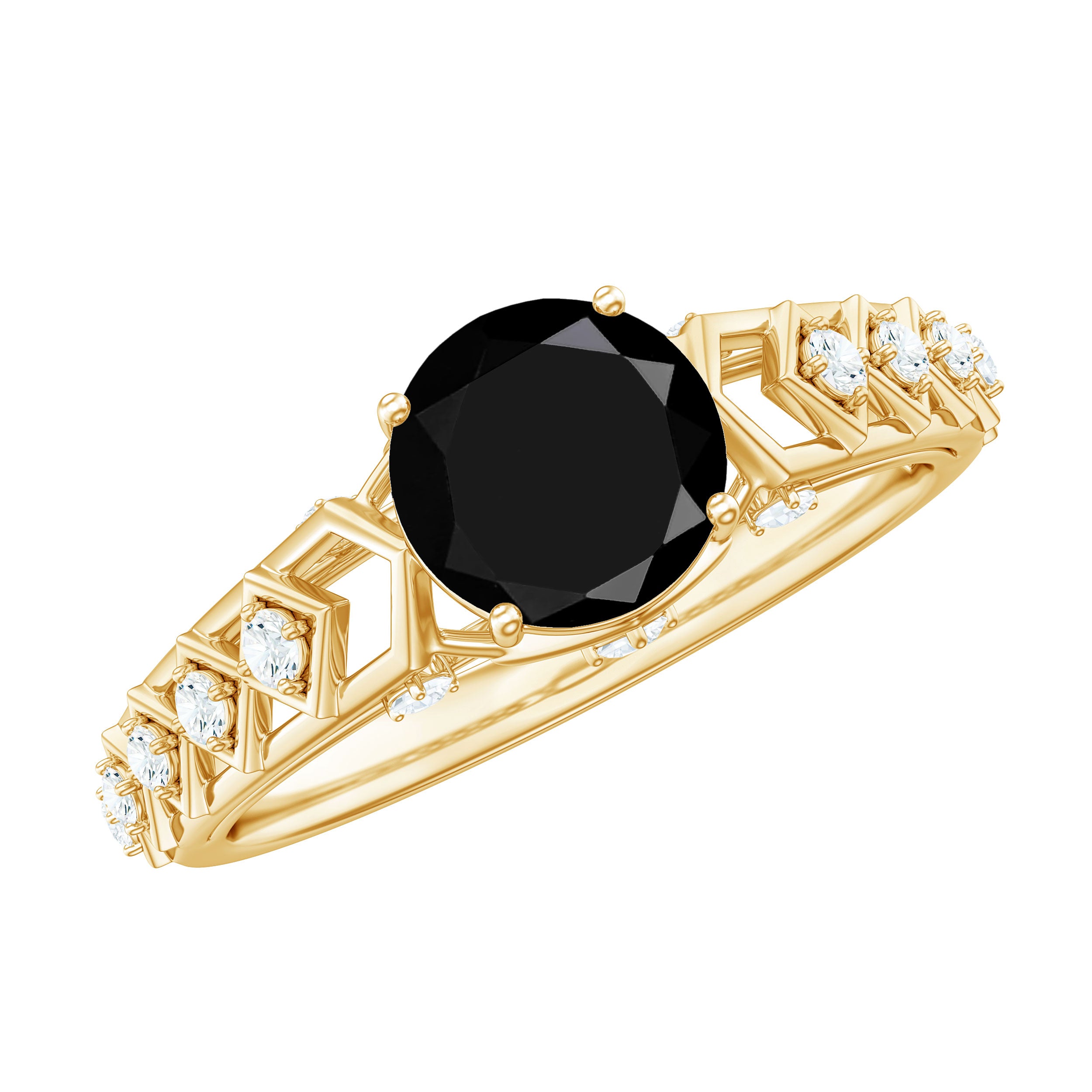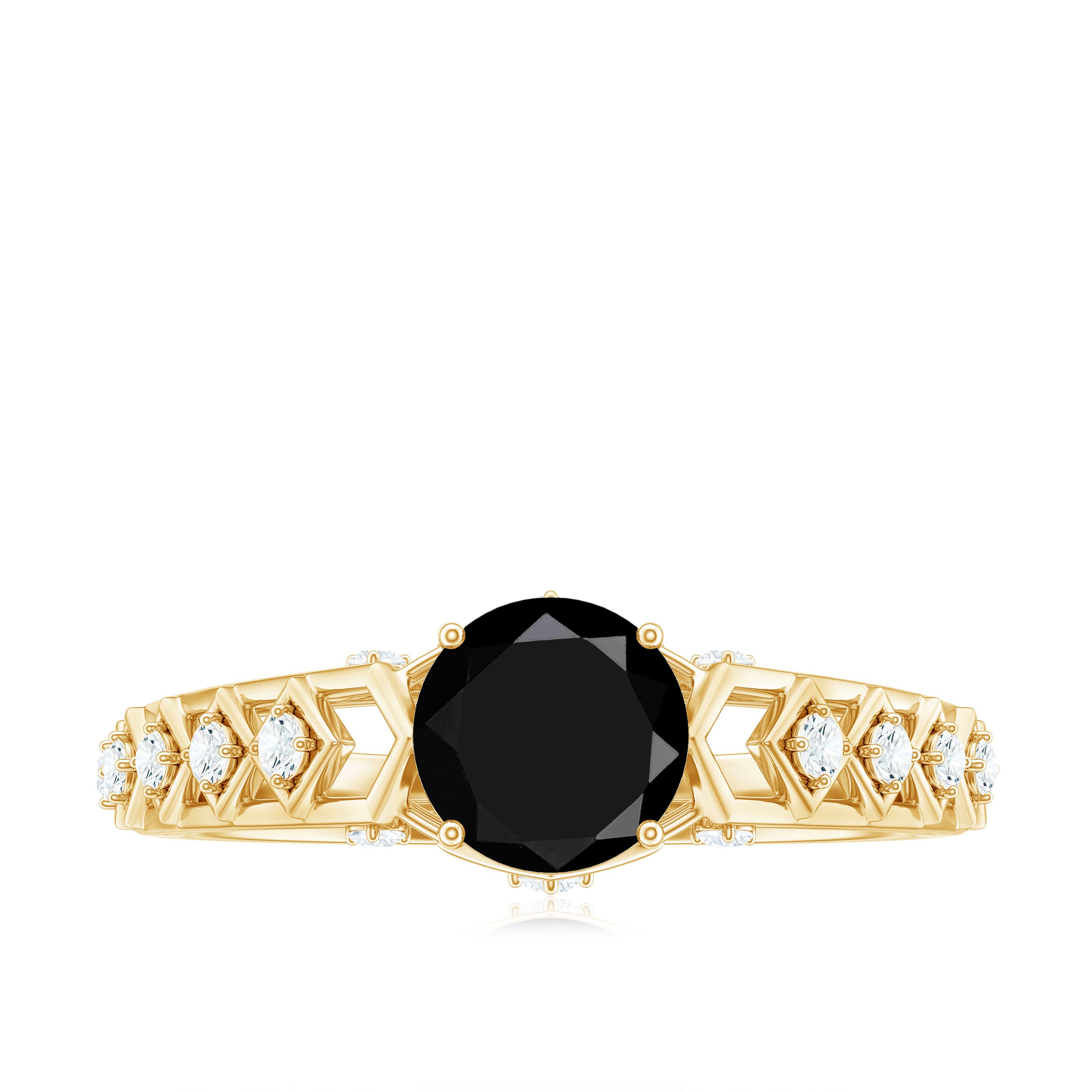 The Gold Cutwork Ring is crafted with Round Shape Black Spinel and Diamond. The 6 MM Black Spinel Solitaire Ring will be an excellent piece for your Valentine that she will love to wear.