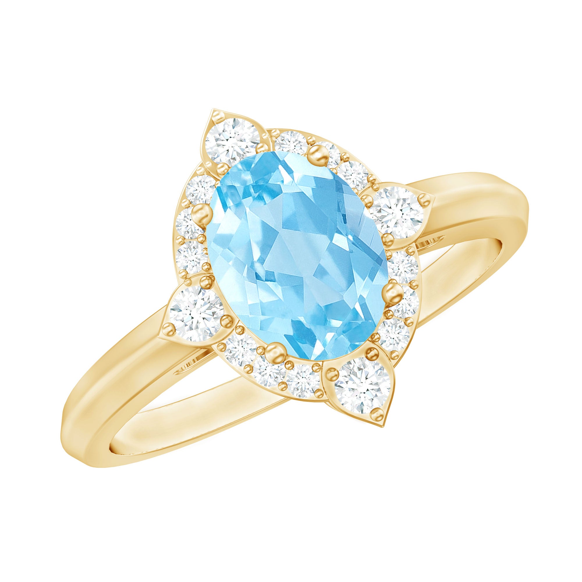 Profess your love with this Art Deco Engagement Ring is adorned with Oval Shape Aquamarine set as a solitaire in a prong setting with Round Shape Diamond Accent. This Gold Art Deco Ring is mounted in Solid Gold.